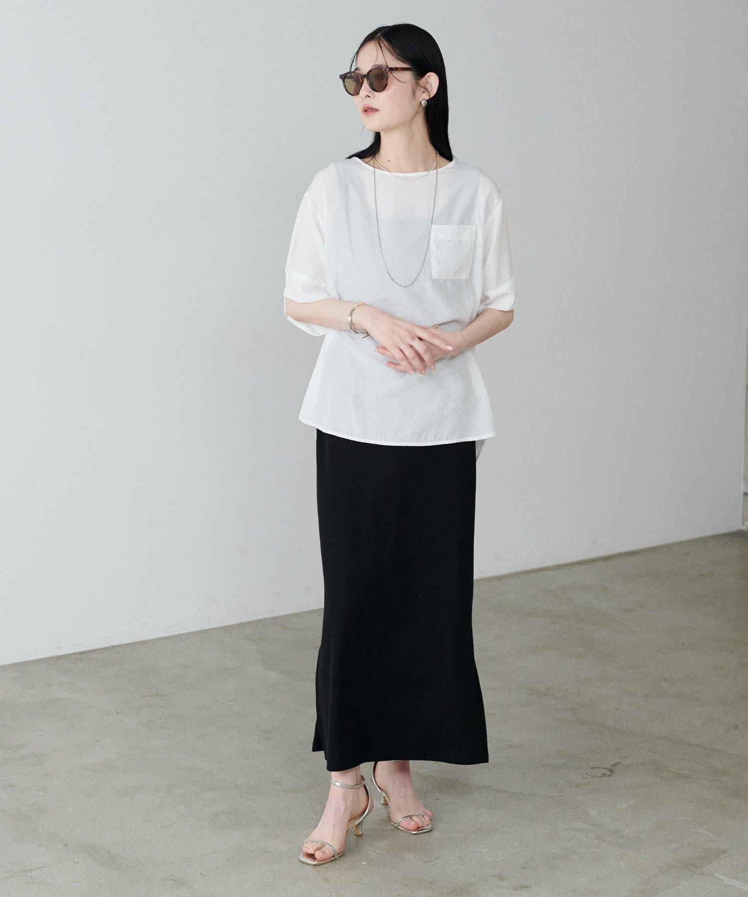 タンクトップやキャミソールの上から羽織って、シアー感を楽しむレイヤードスタイルもおすすめです。