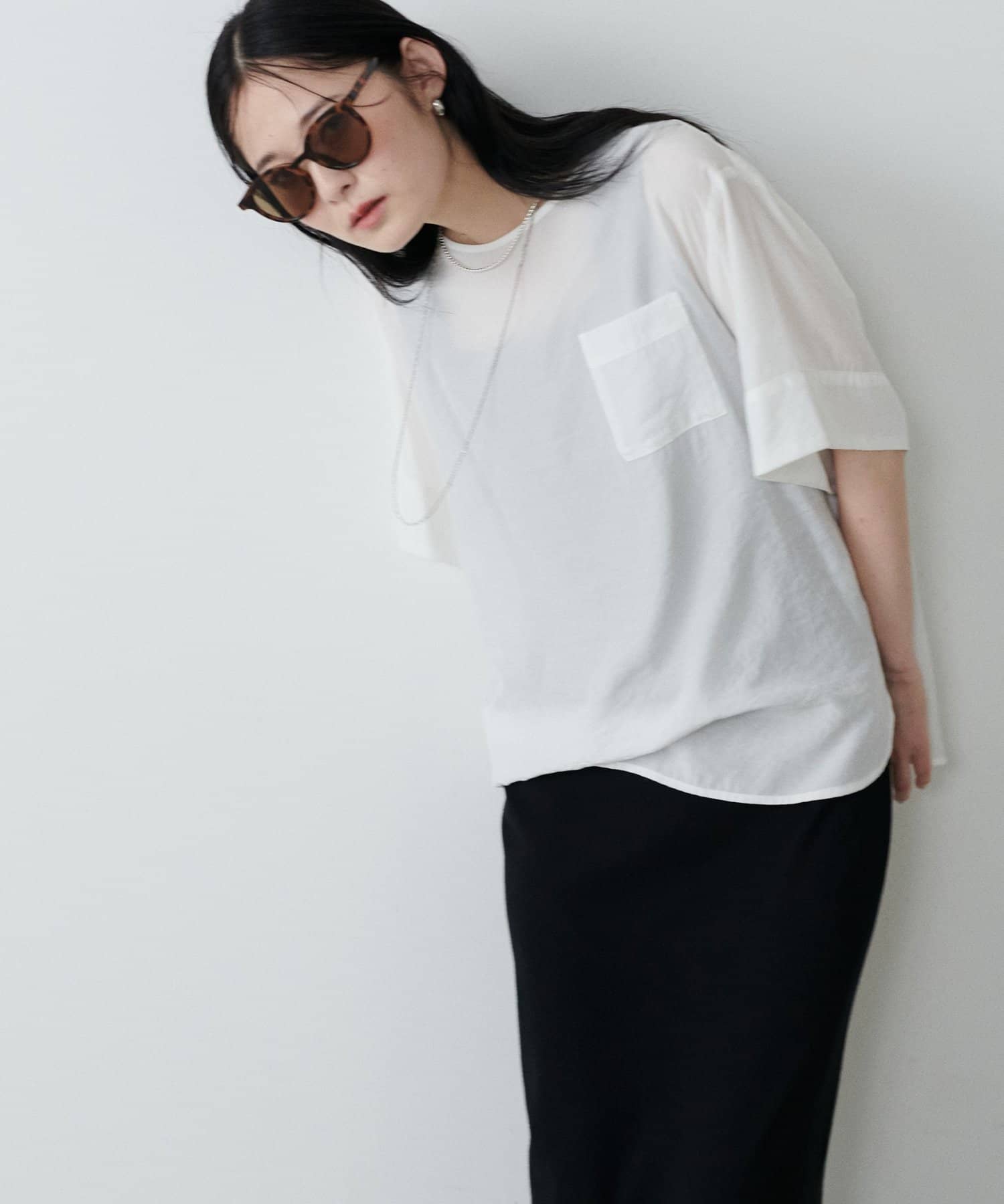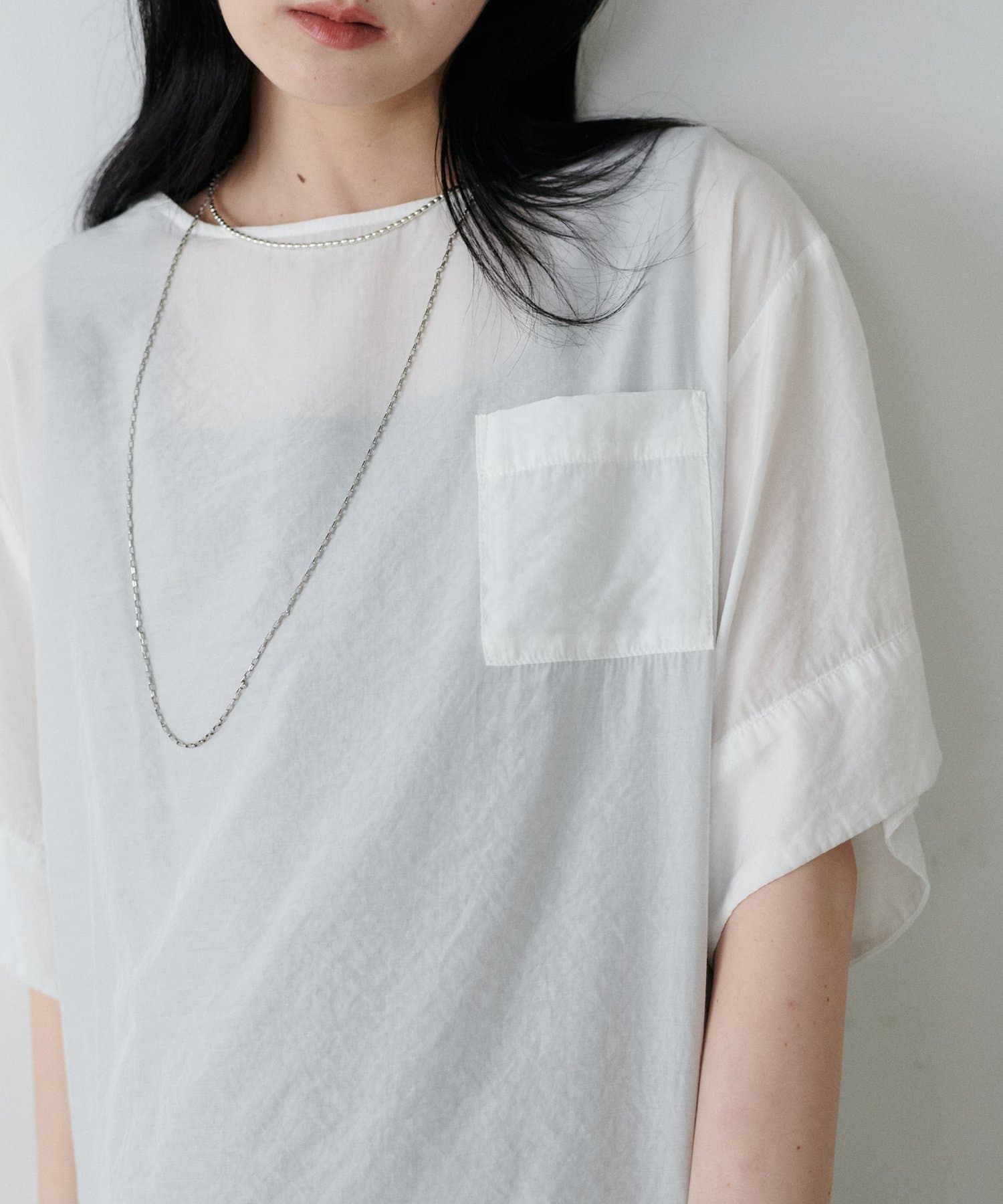 シアー素材特有の透け感と、ゆったりとしたシルエットが、