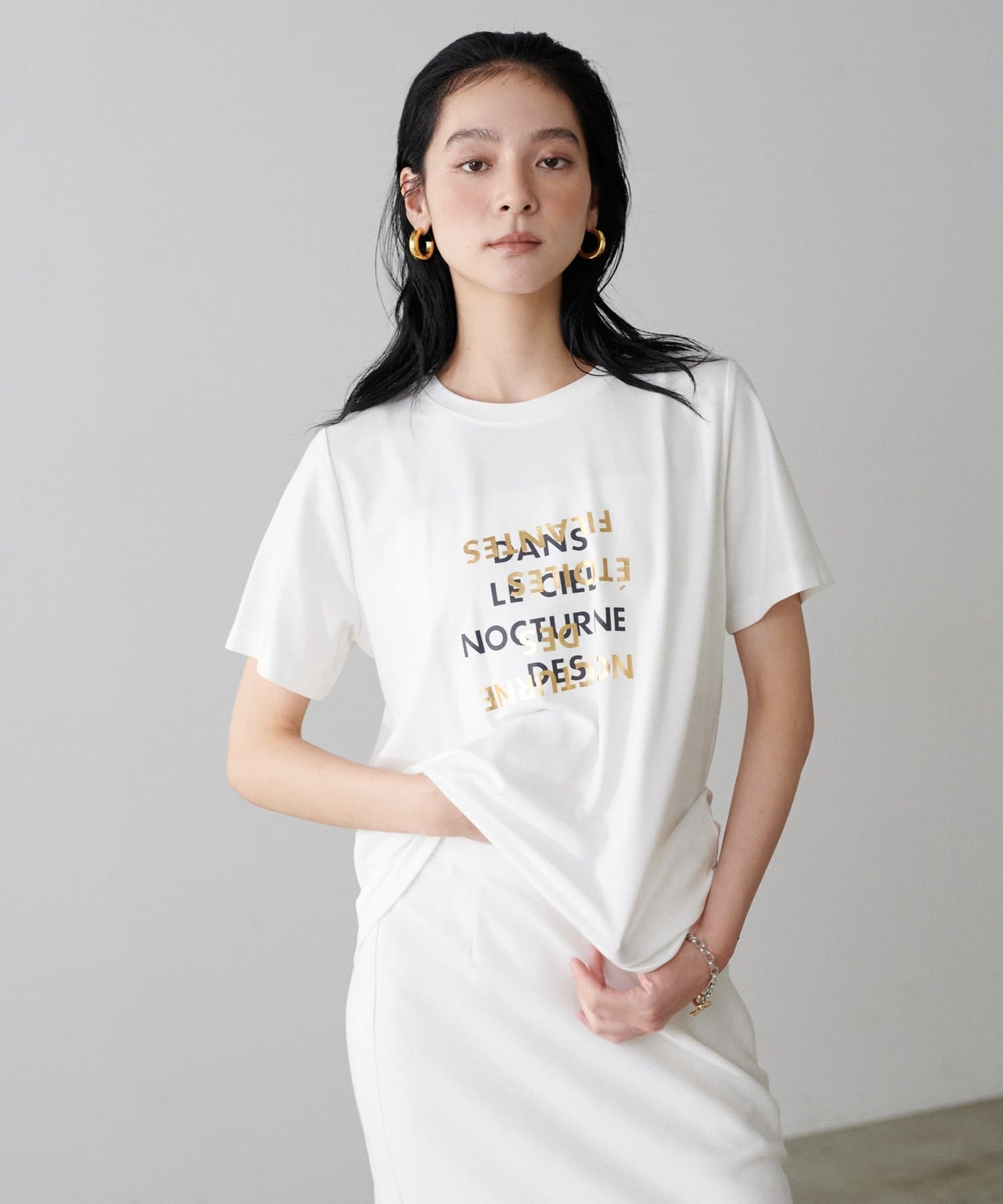 程よい肉感のポンチ素材を使用した、きれいめカジュアルなプリントTシャツ。