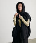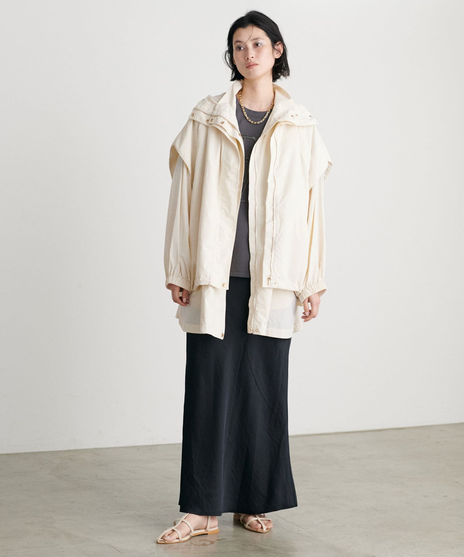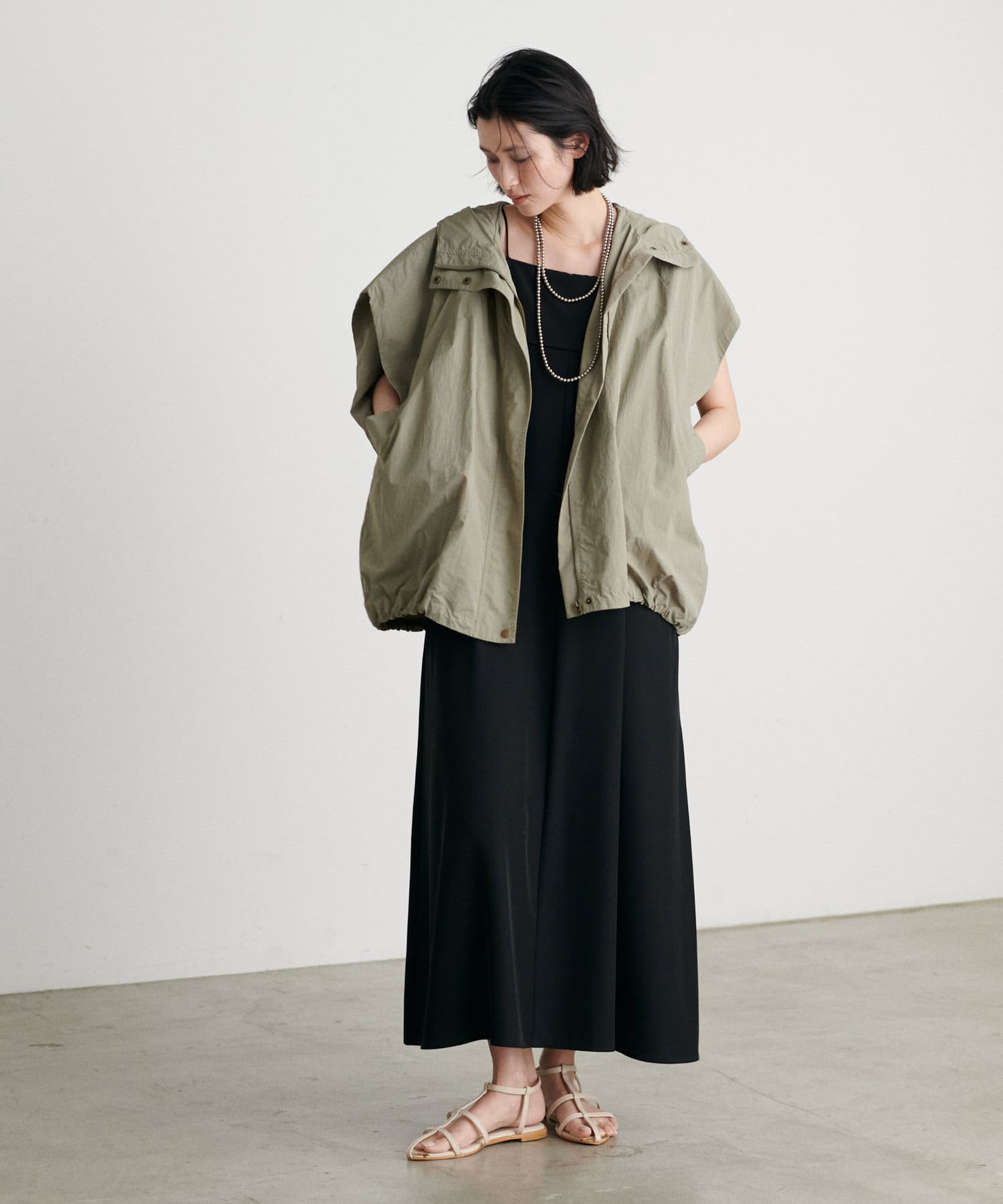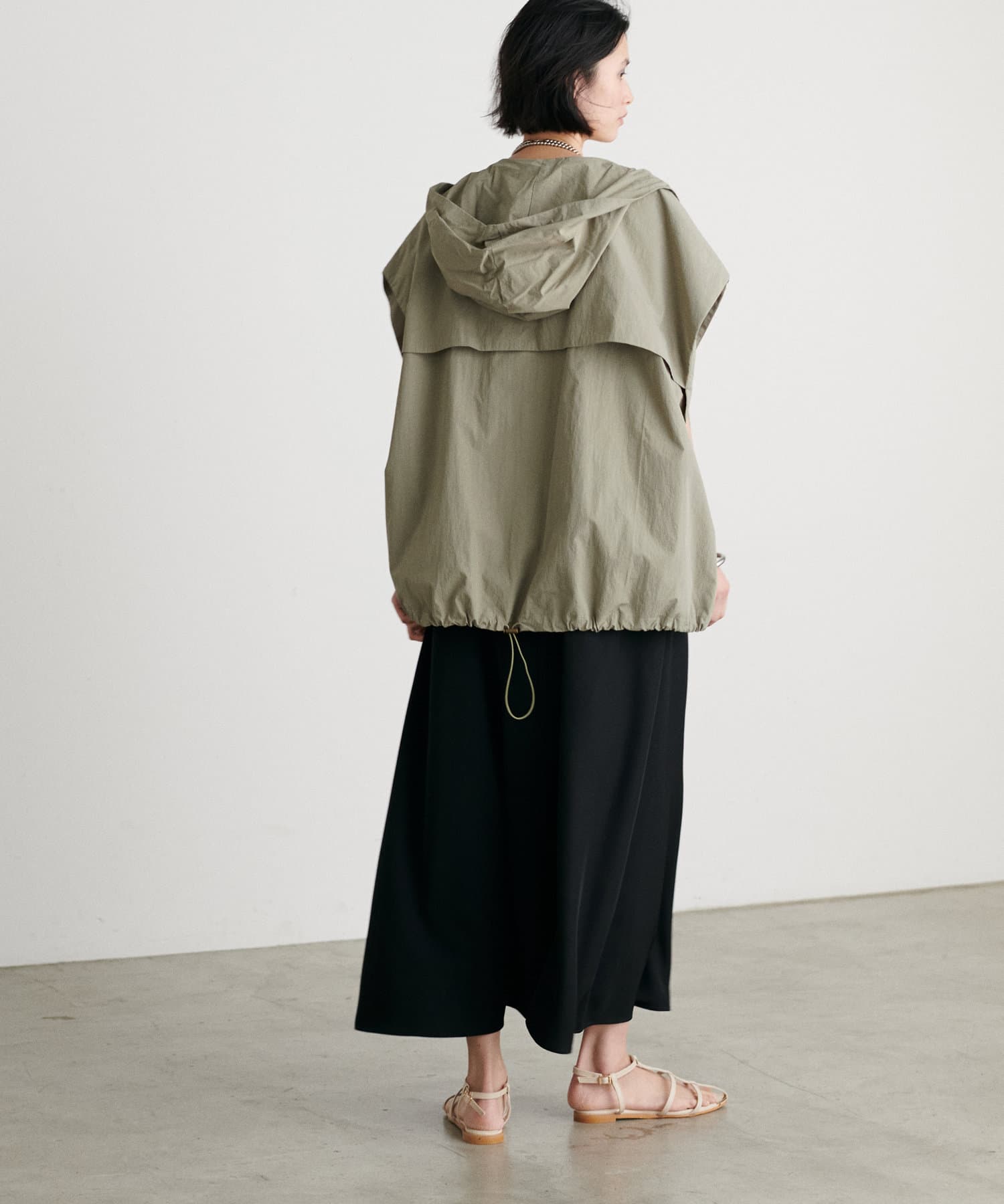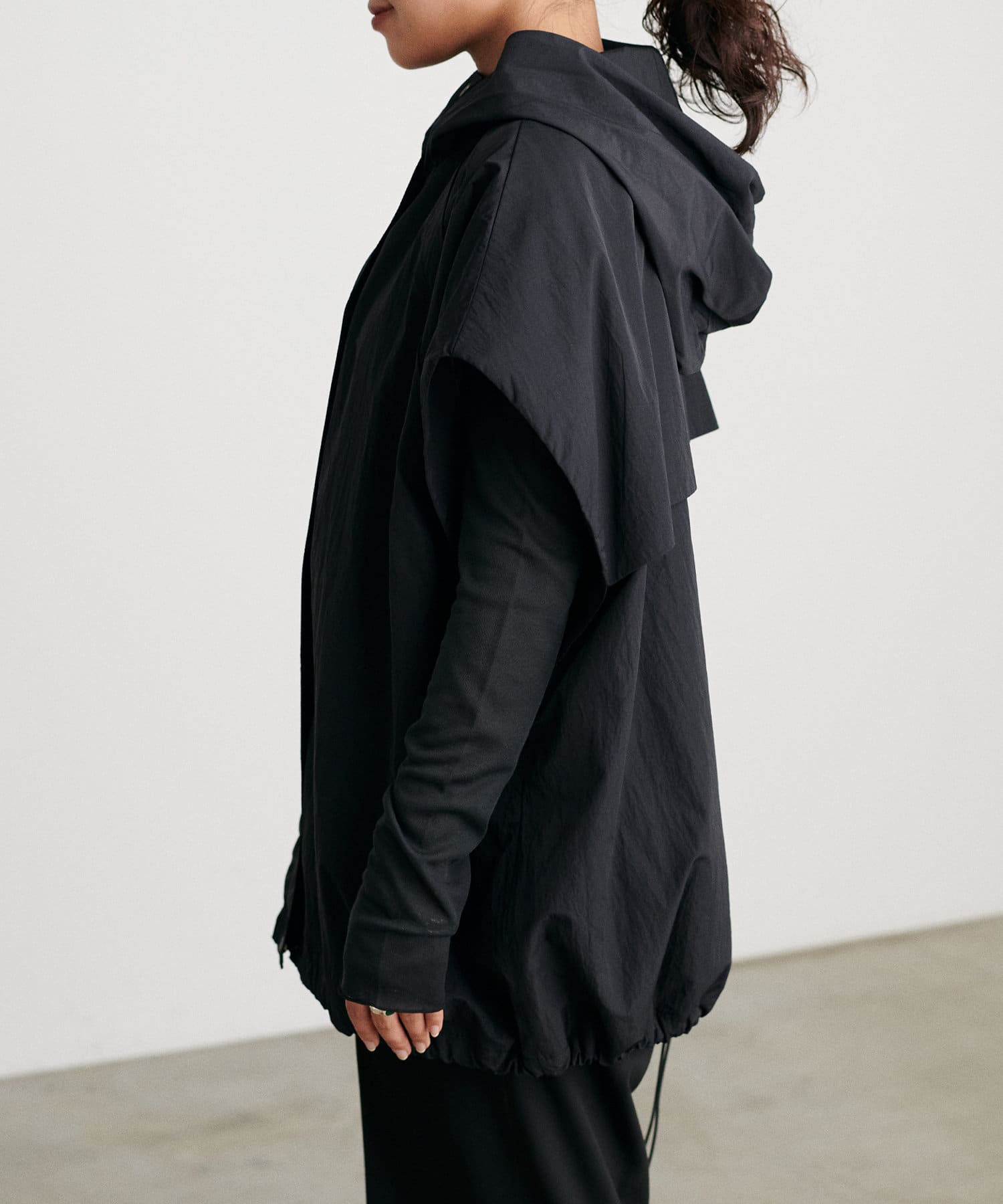 春のライトアウターとして活躍するフード付きのナイロンベストが登場。