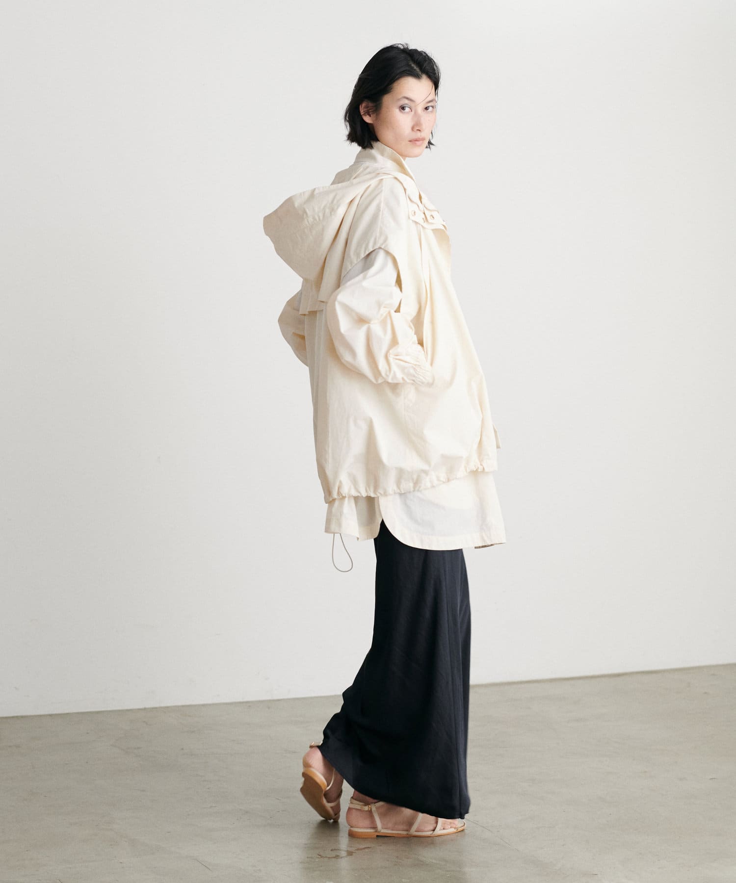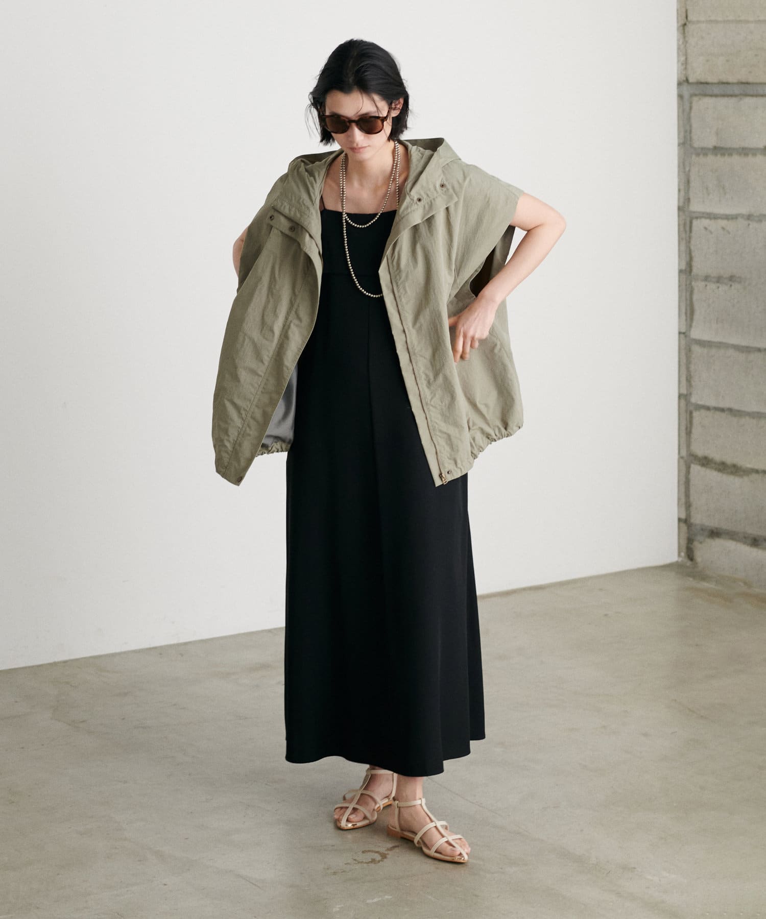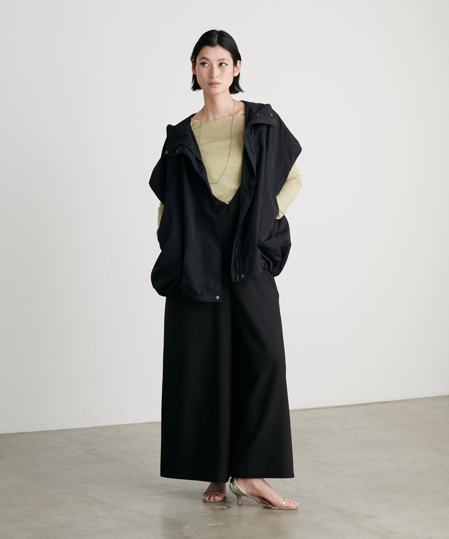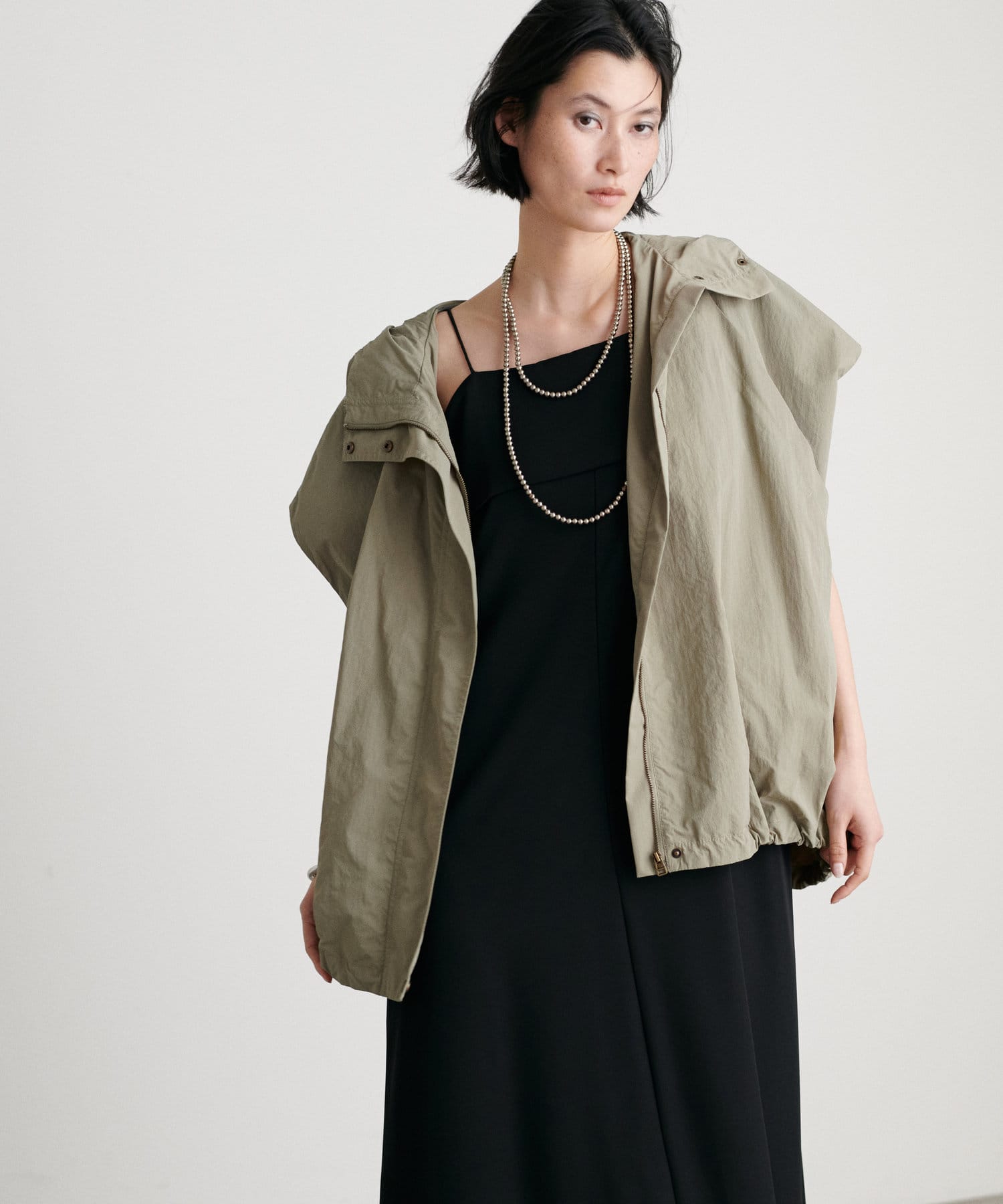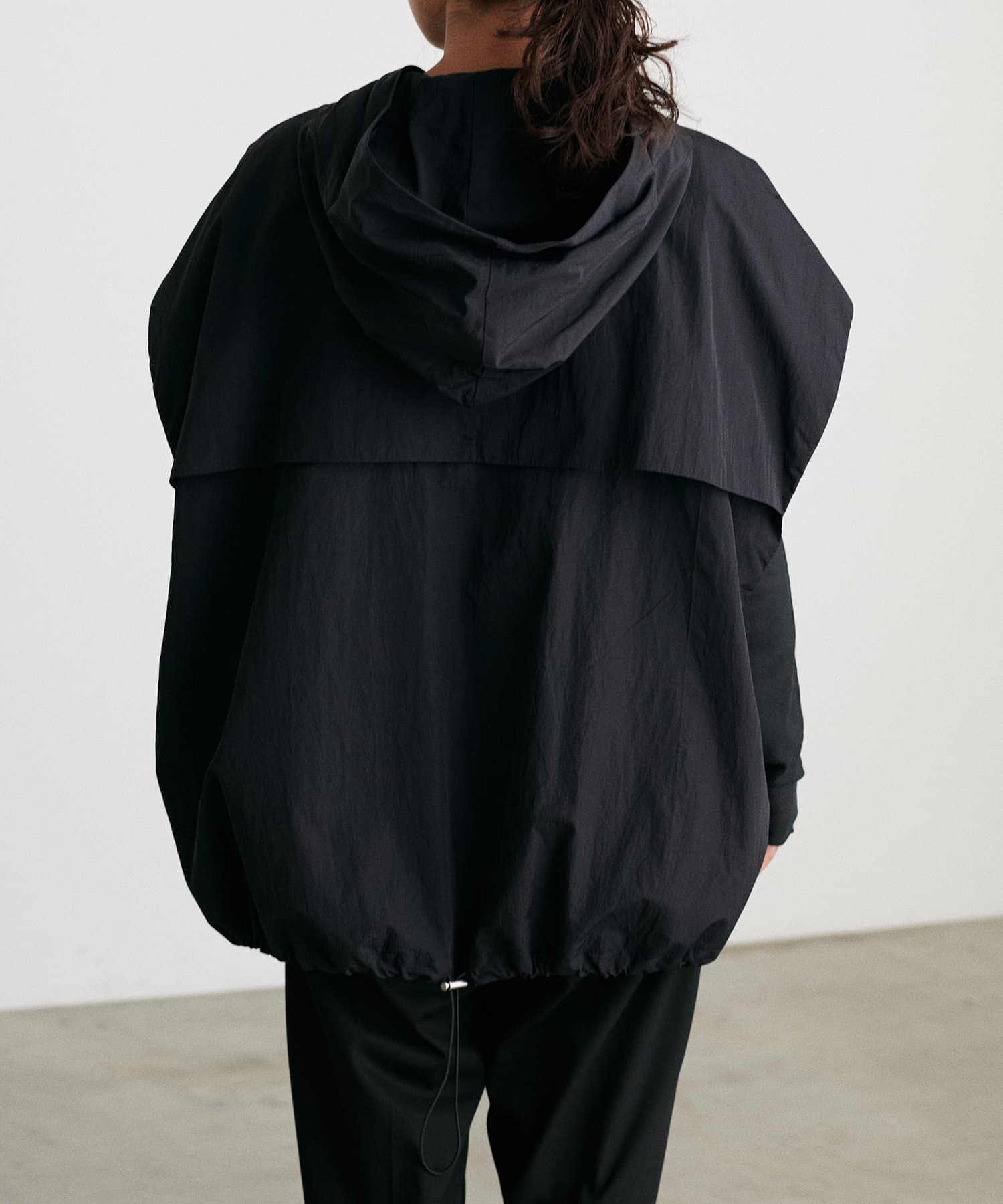 春のライトアウターとして活躍するフード付きのナイロンベストが登場。