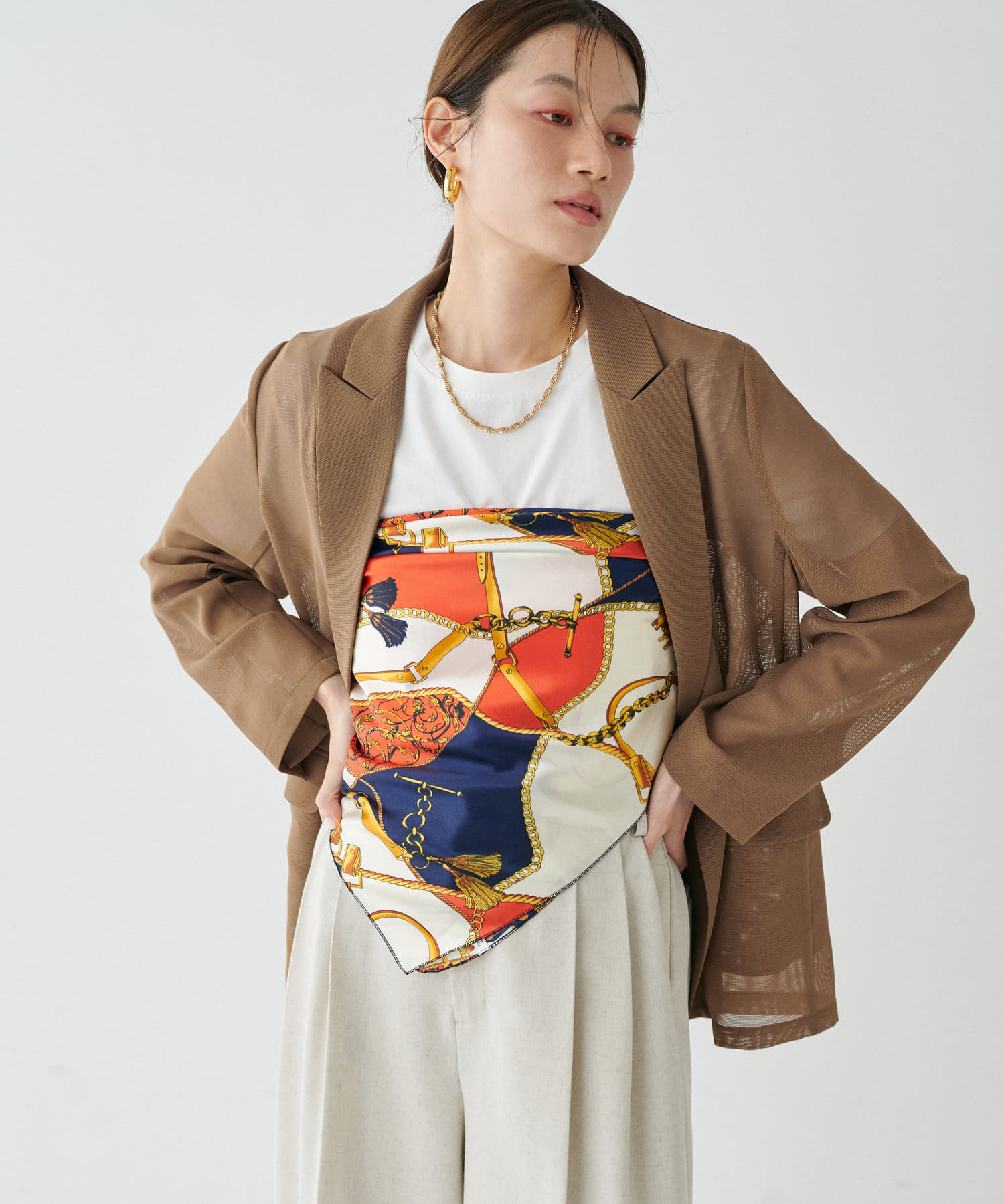 女性らしいアイテムと合わせるのもこれからの季節にぴったり。