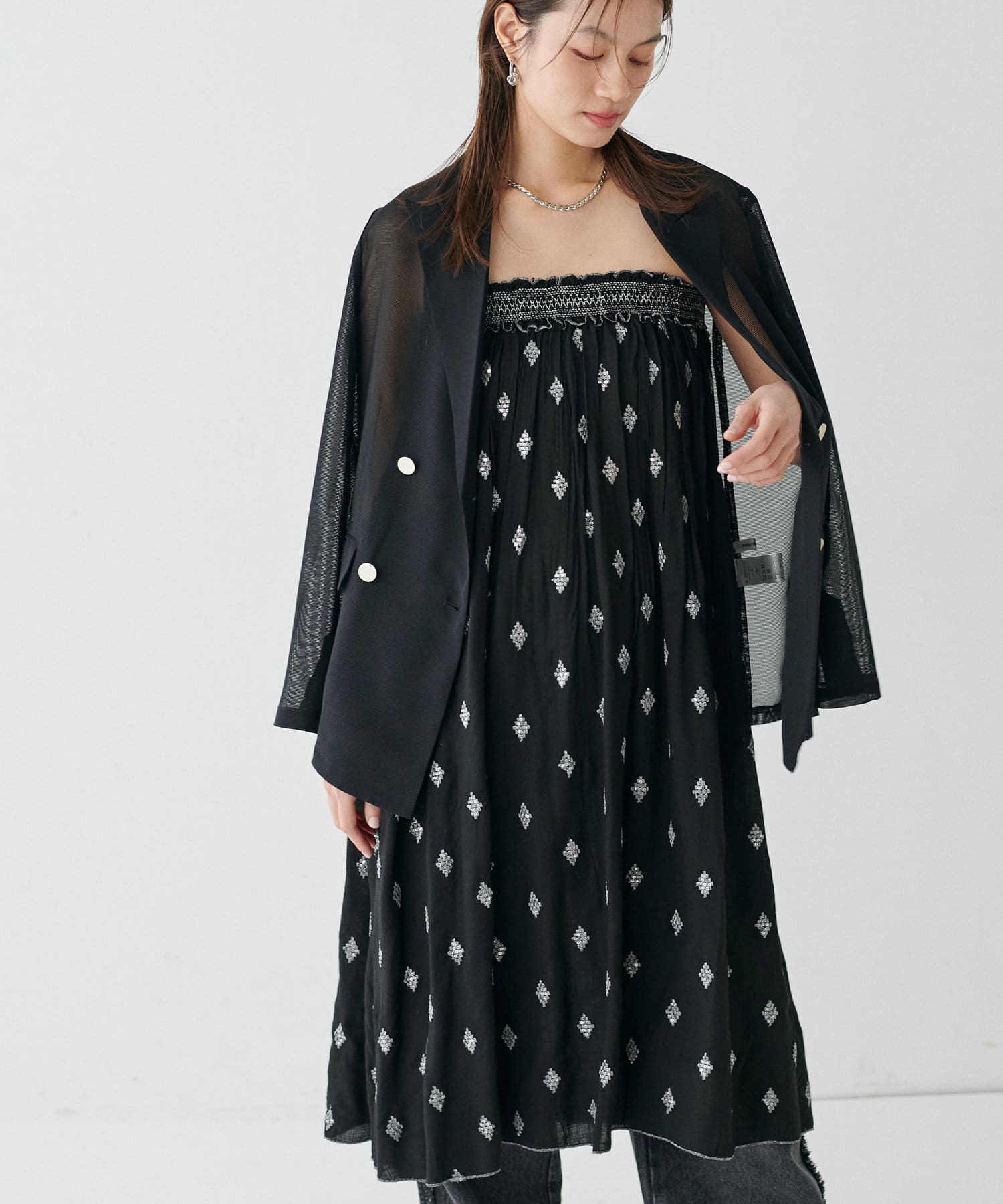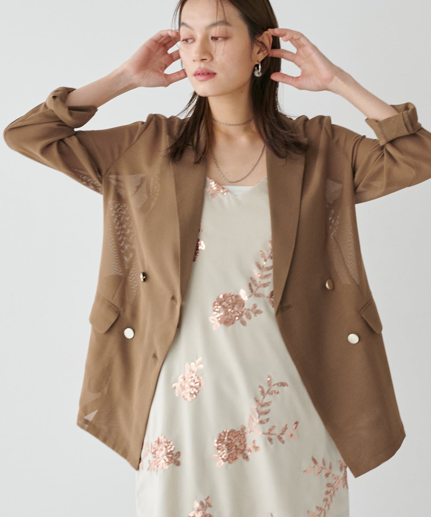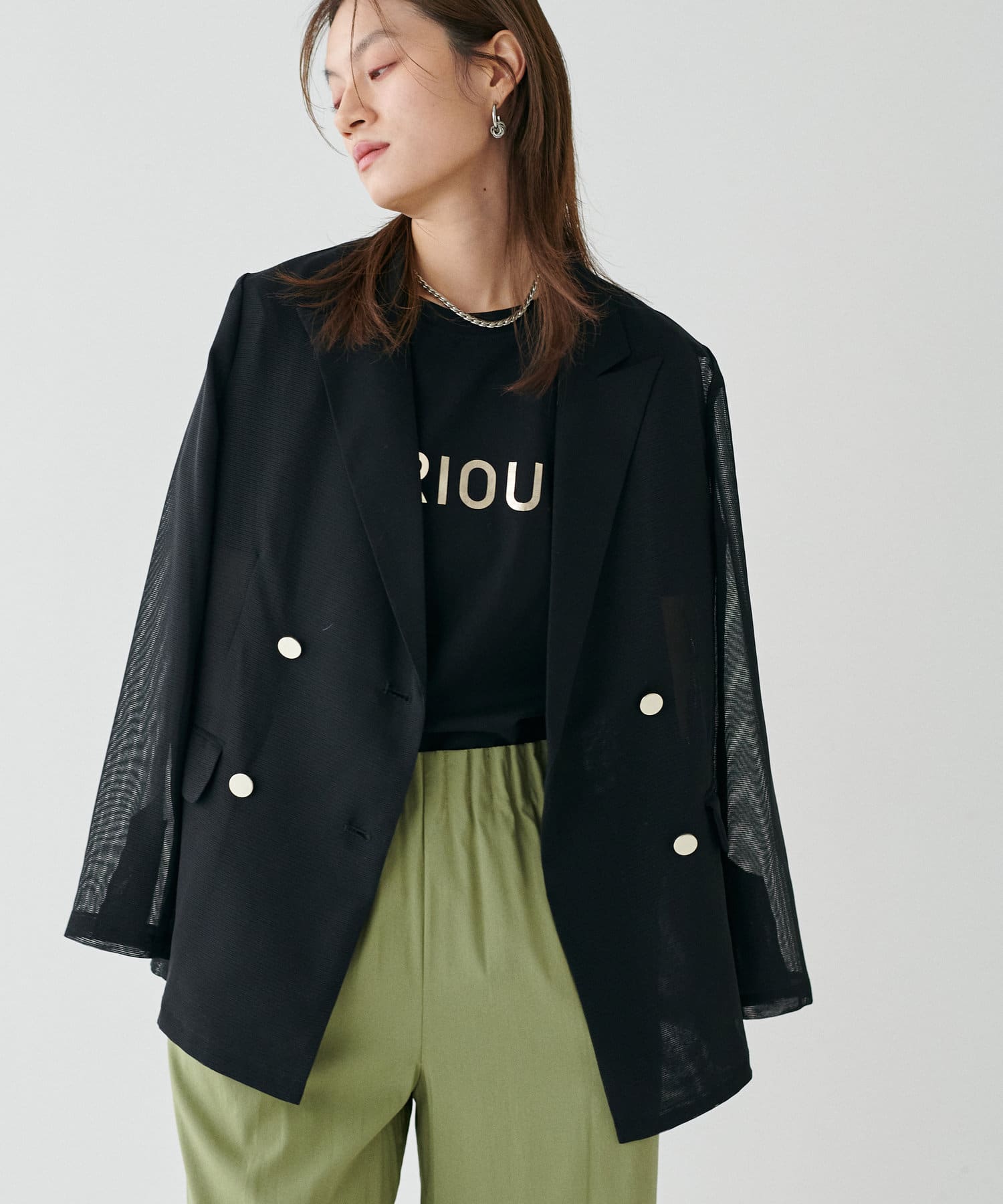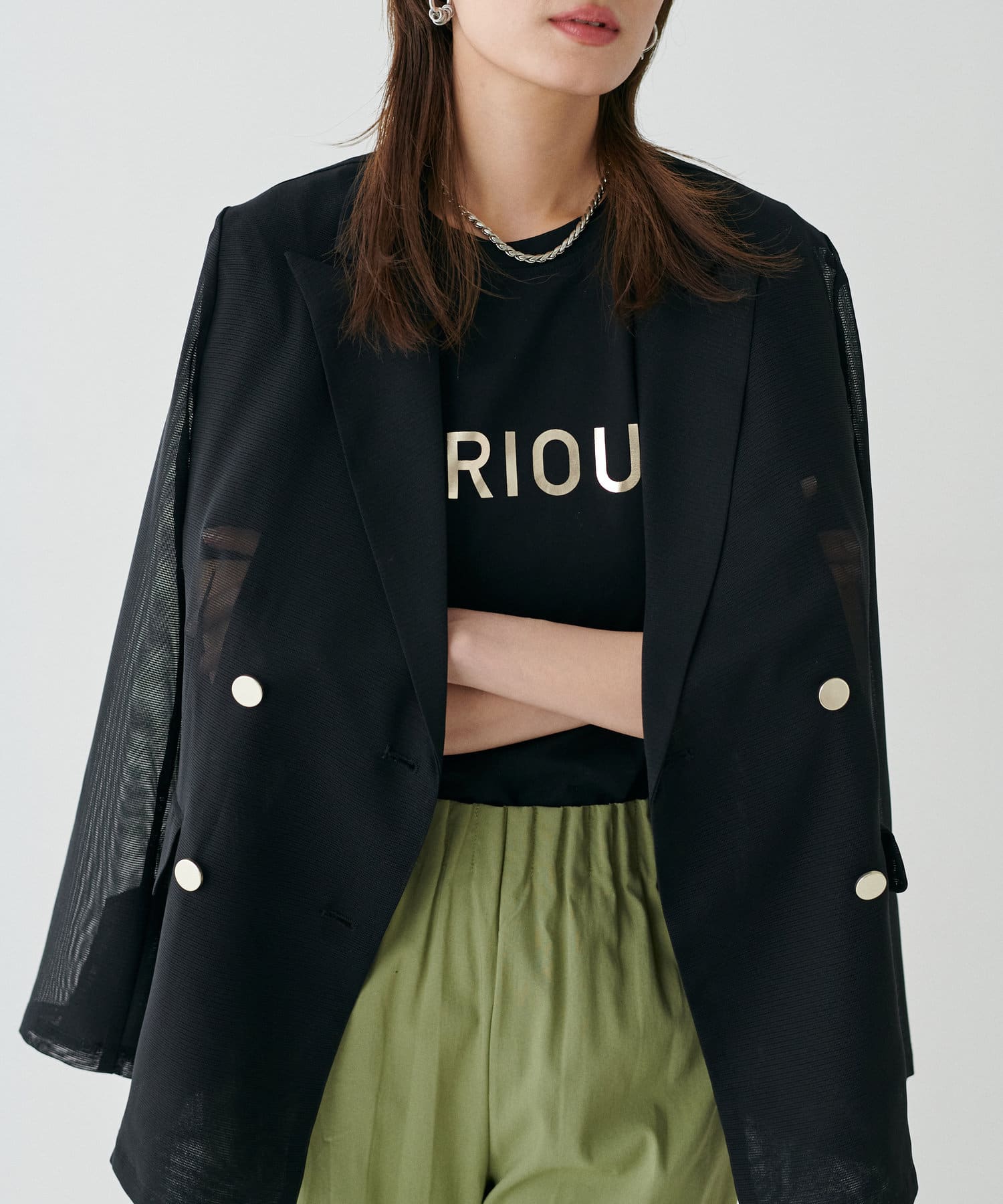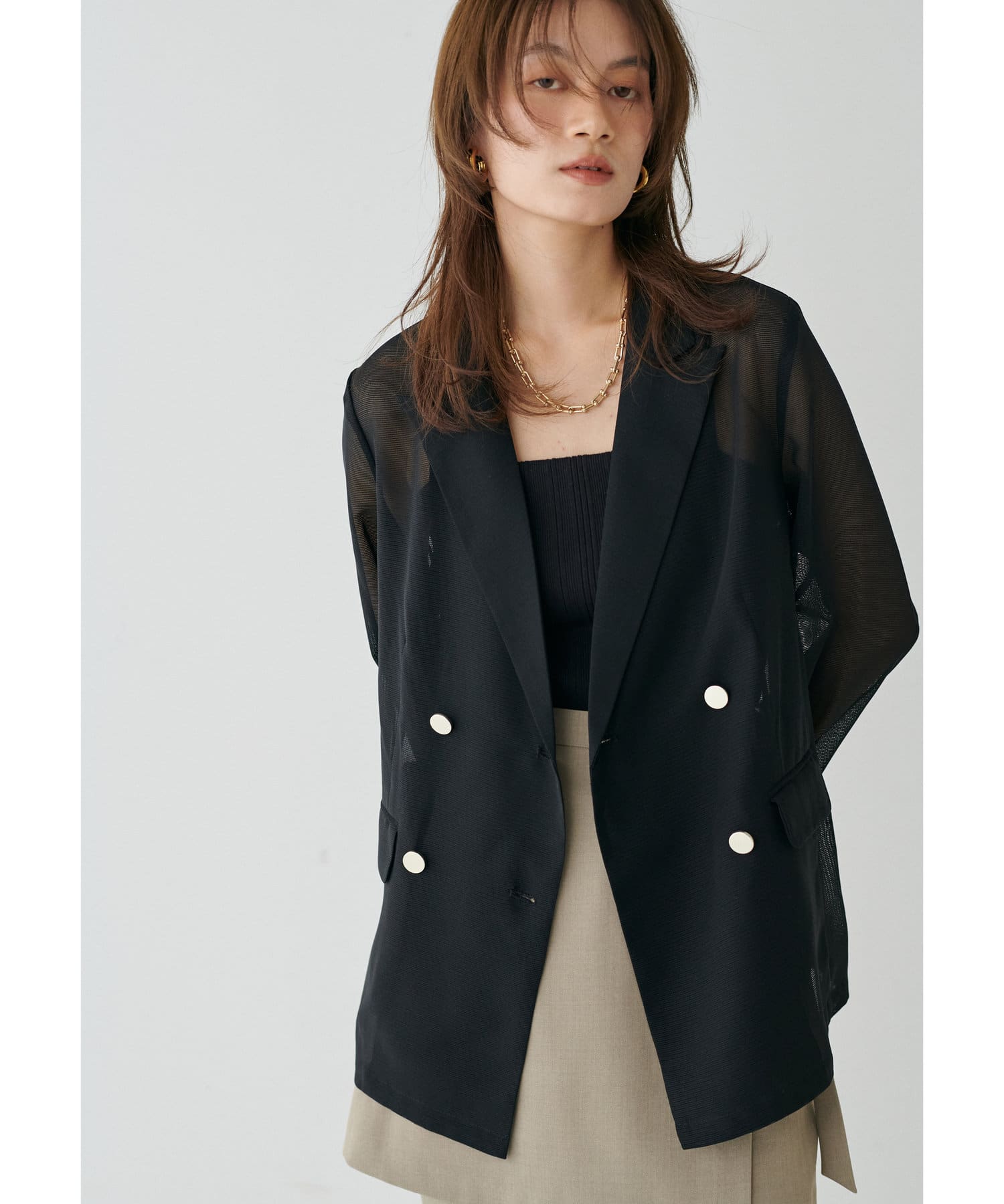 メタル金釦メッシュジャケット