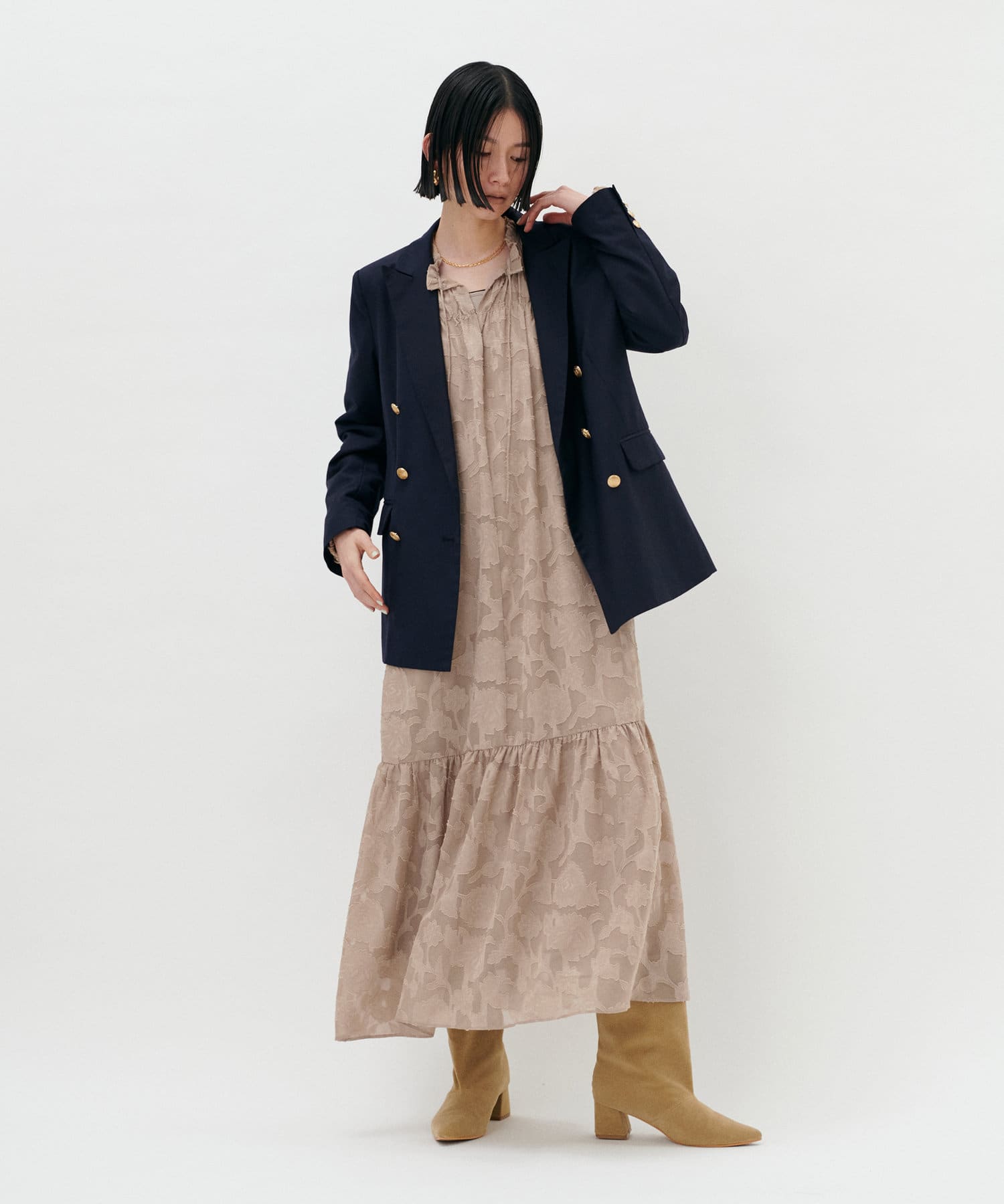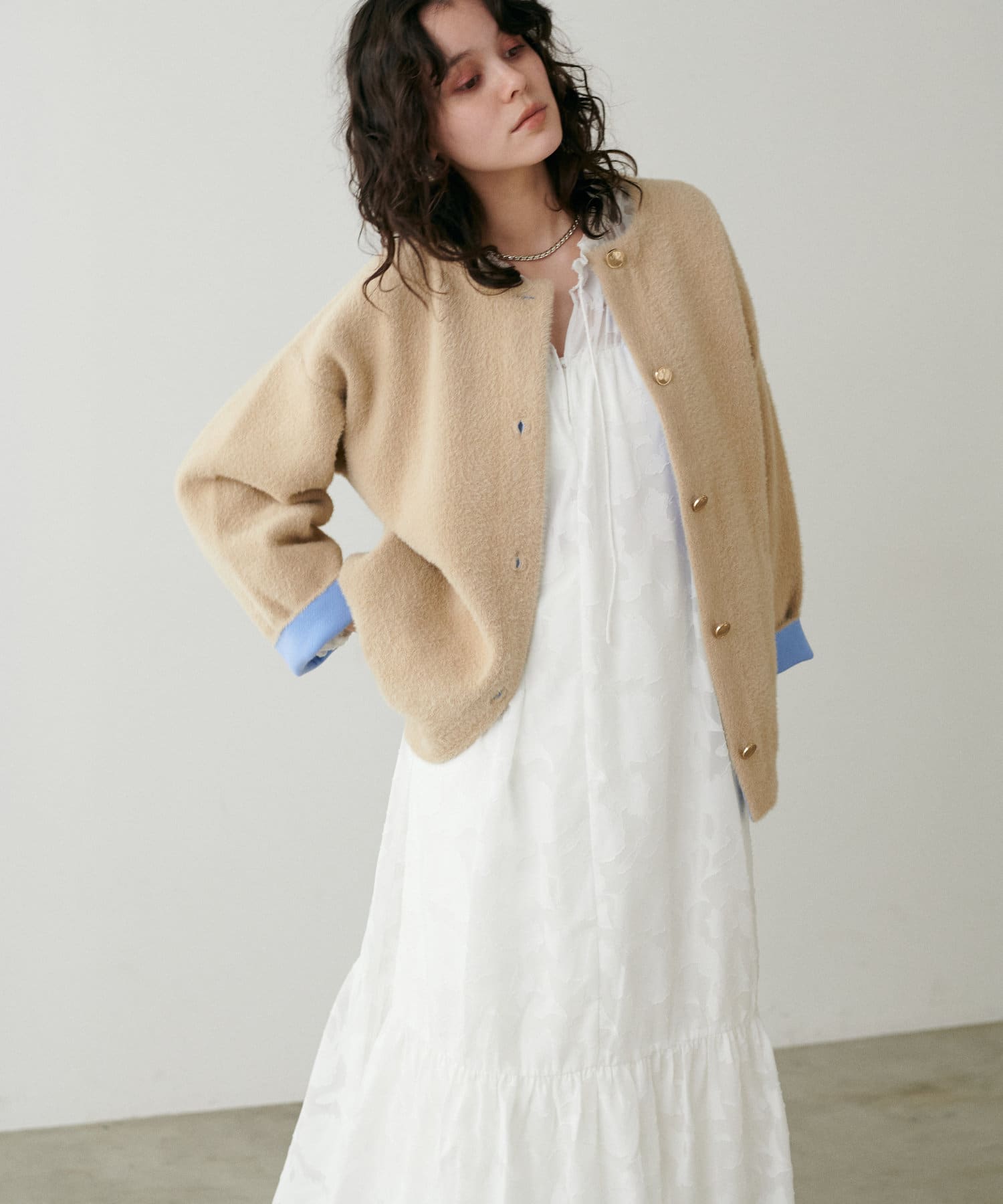 デニムなどとのレイヤードスタイルをお楽しみいただけけるアイテムです。