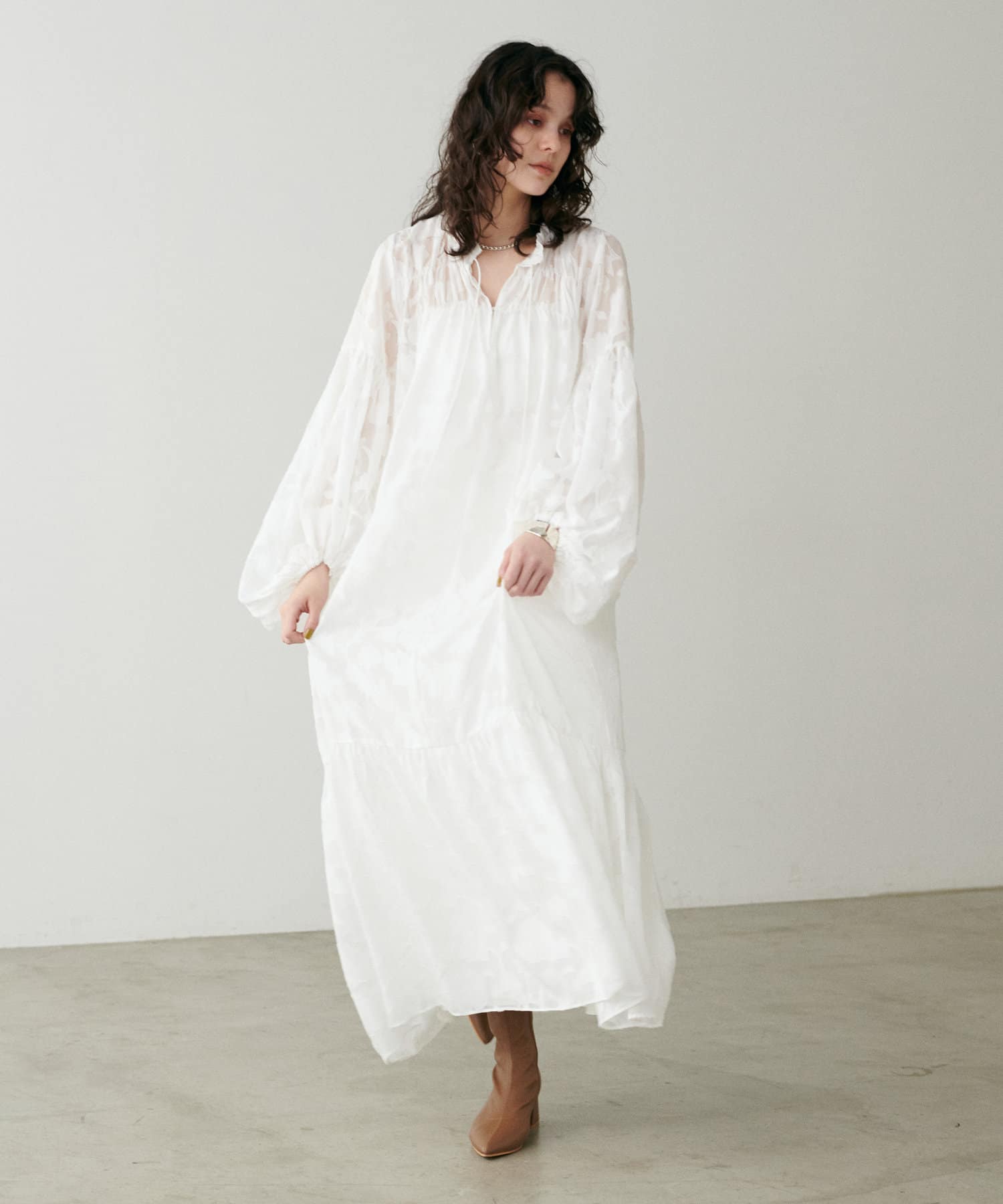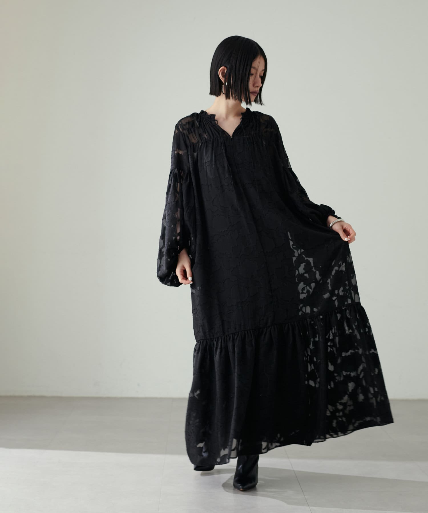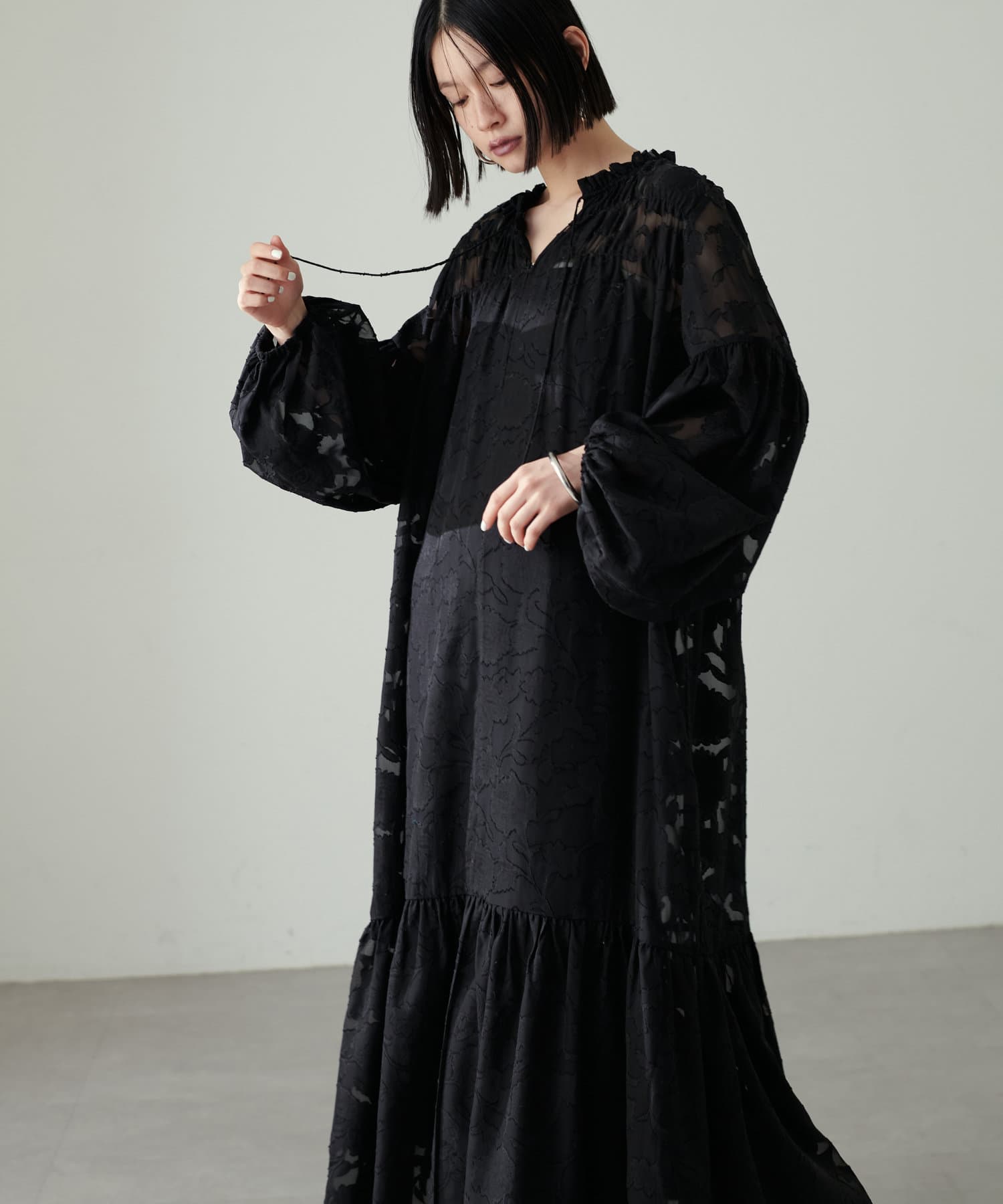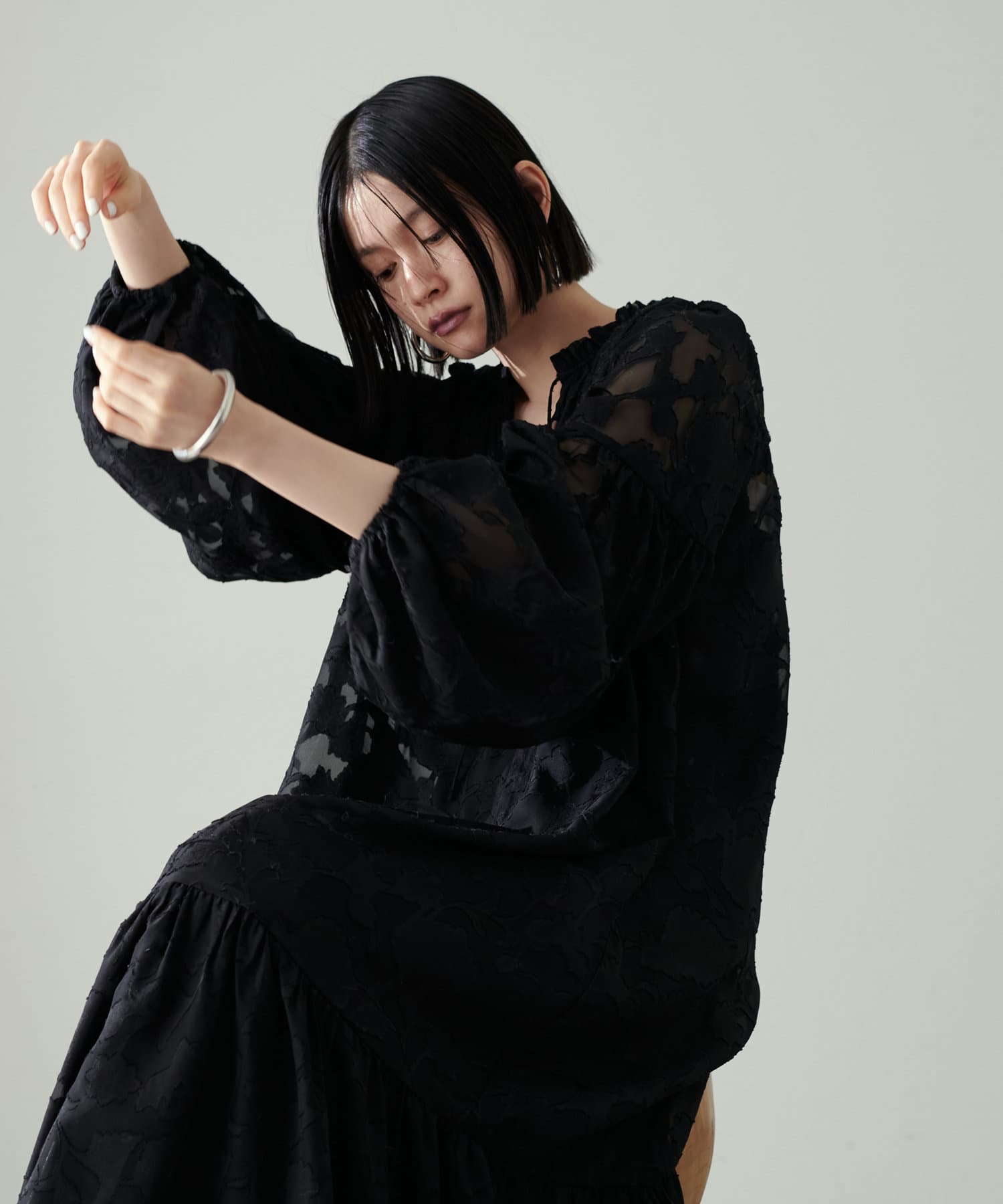 動く度に抜け感のあるシアーな素材と、