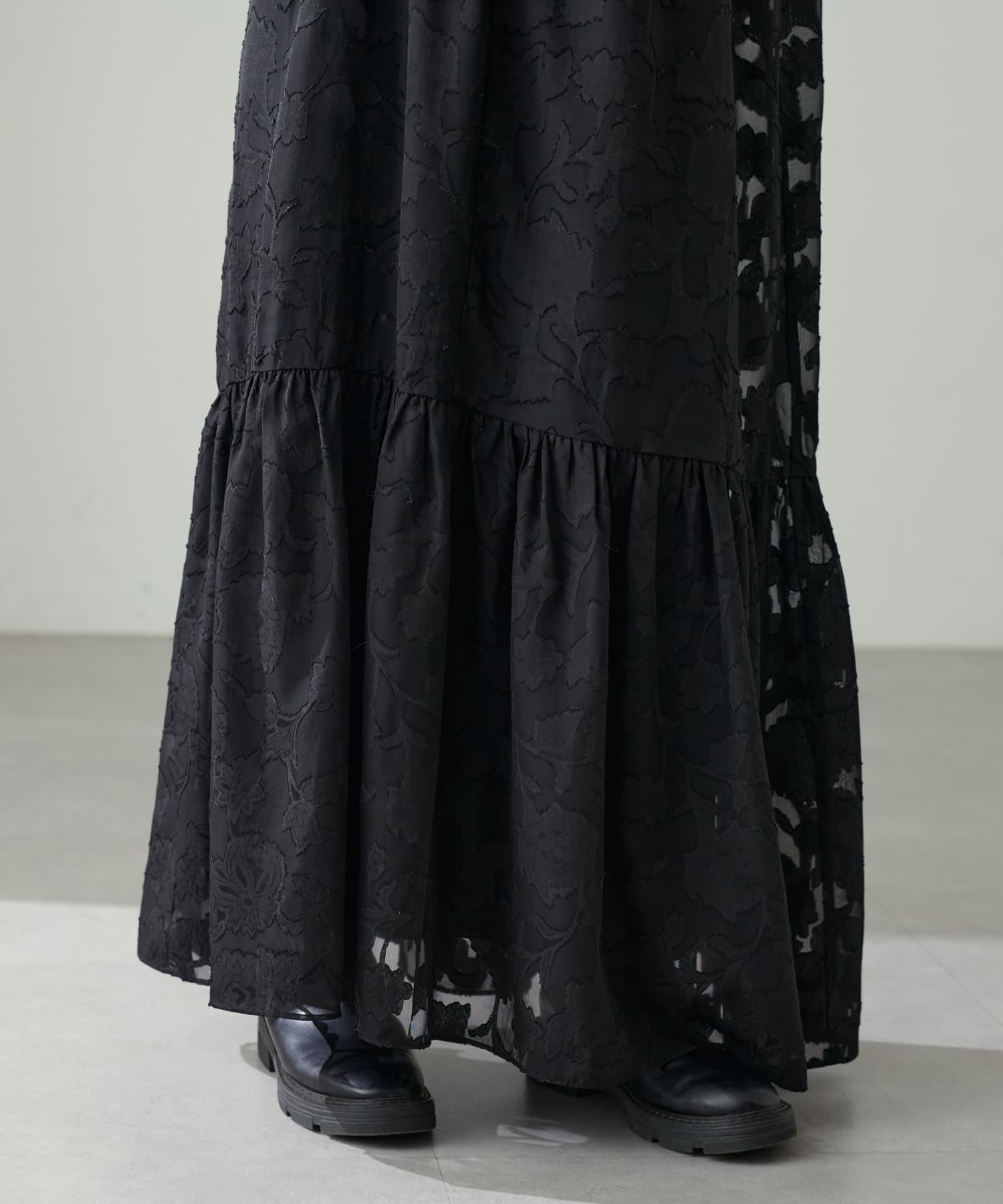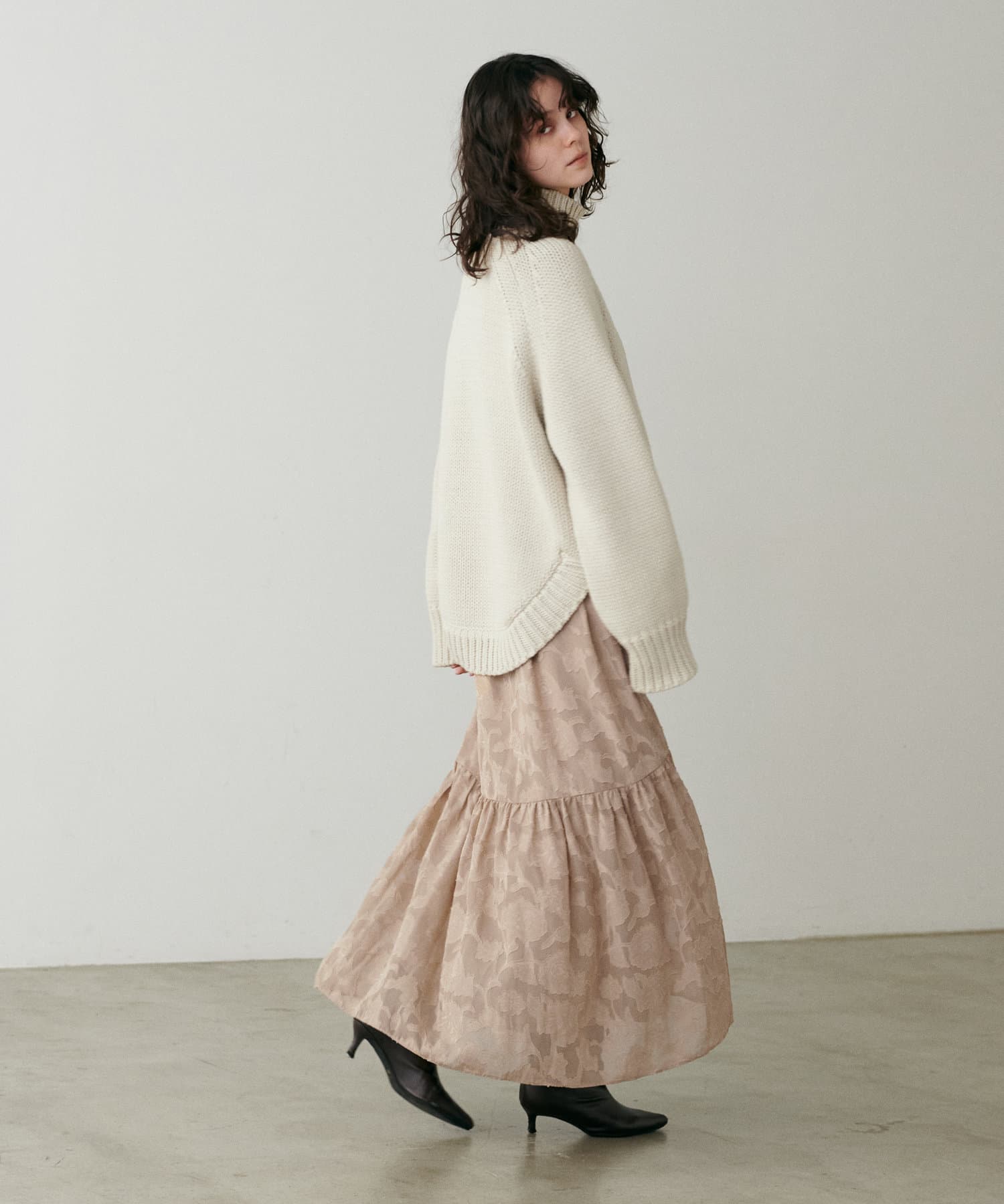 ブラック、キャメル、ホワイトには花柄のジャガード素材となっています。