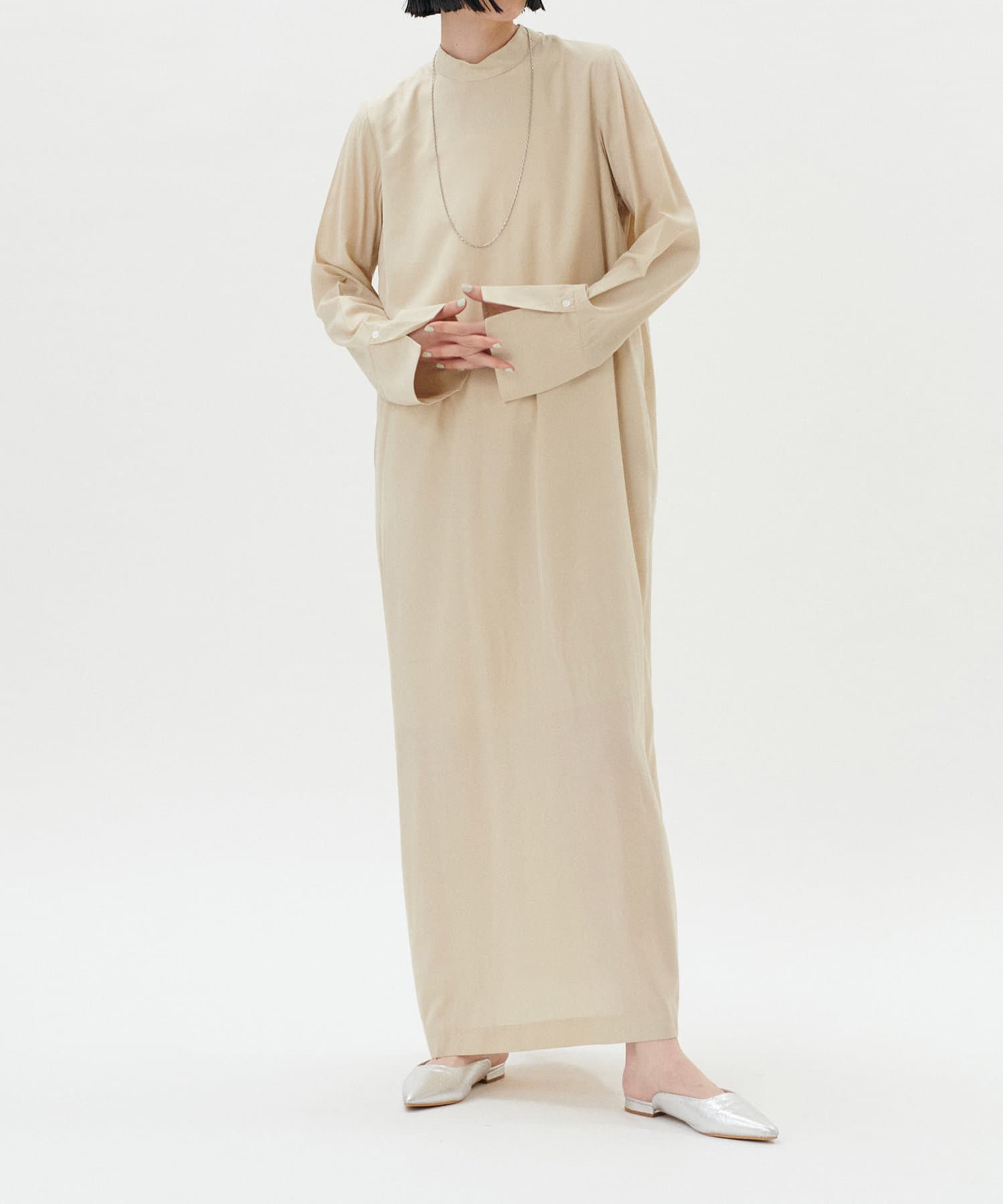 マットな光沢感が上品な雰囲気の前後2wayワンピースが登場。