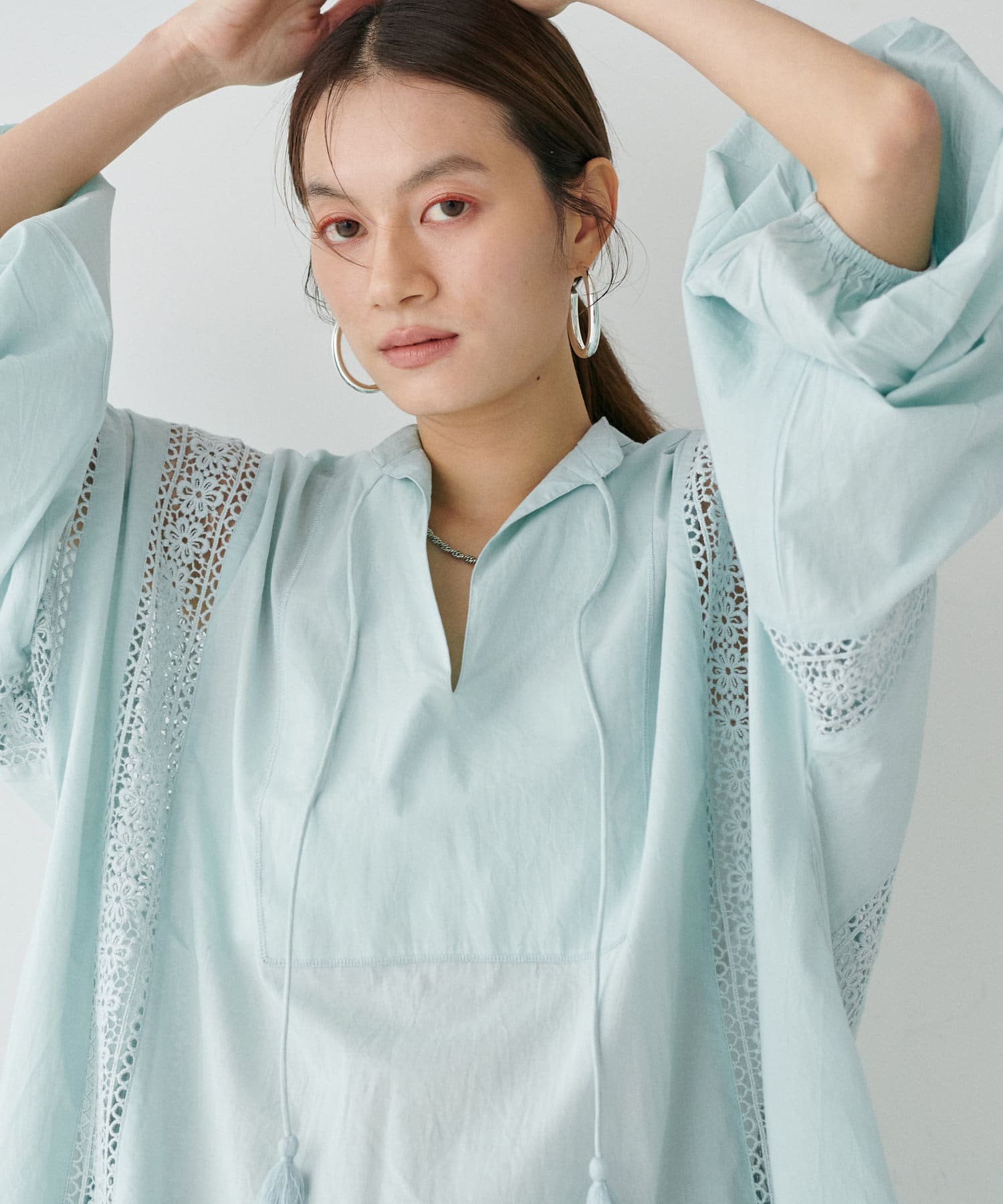 胸元はスキッパーデザインで首周りはすっきりとした印象に。