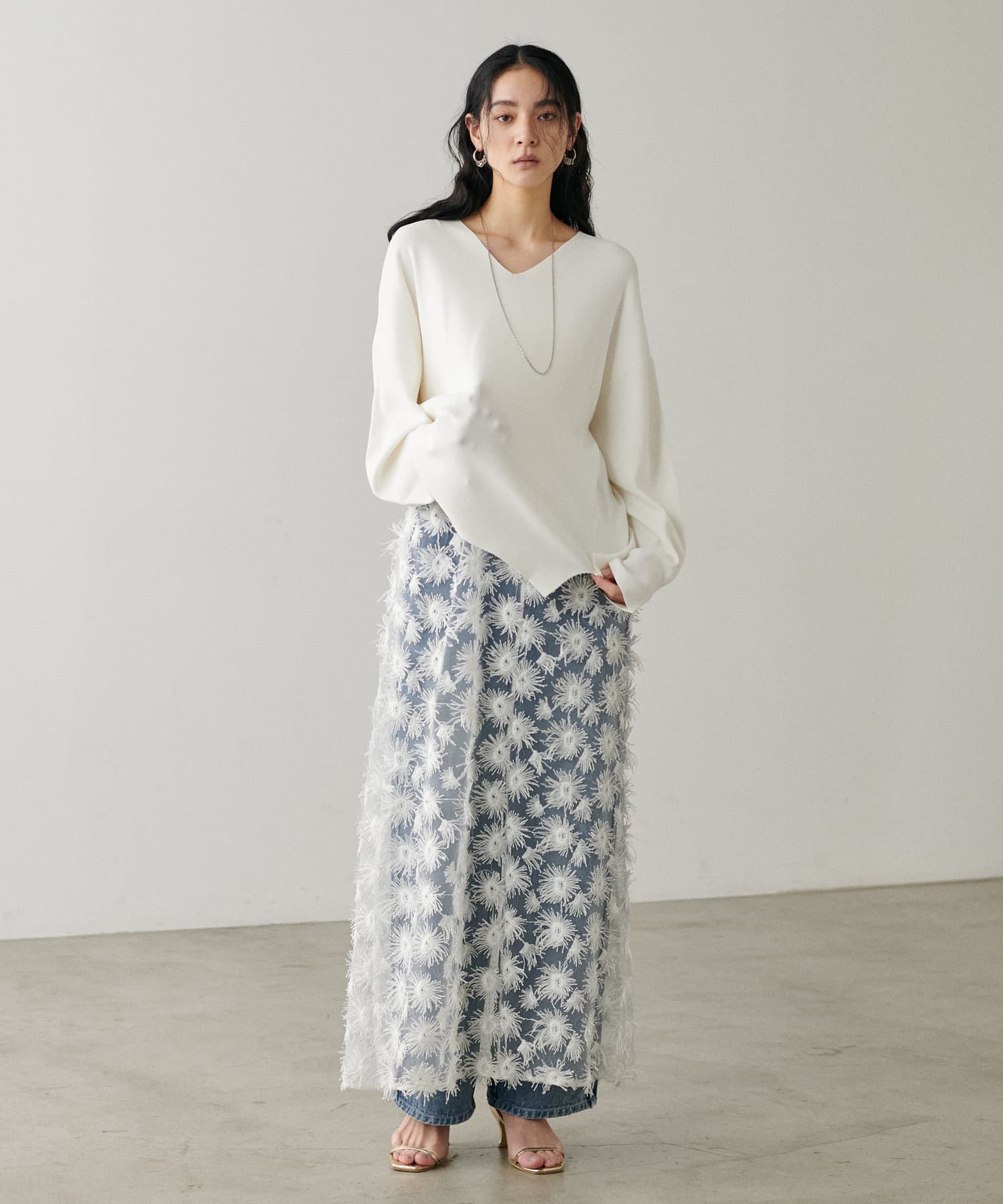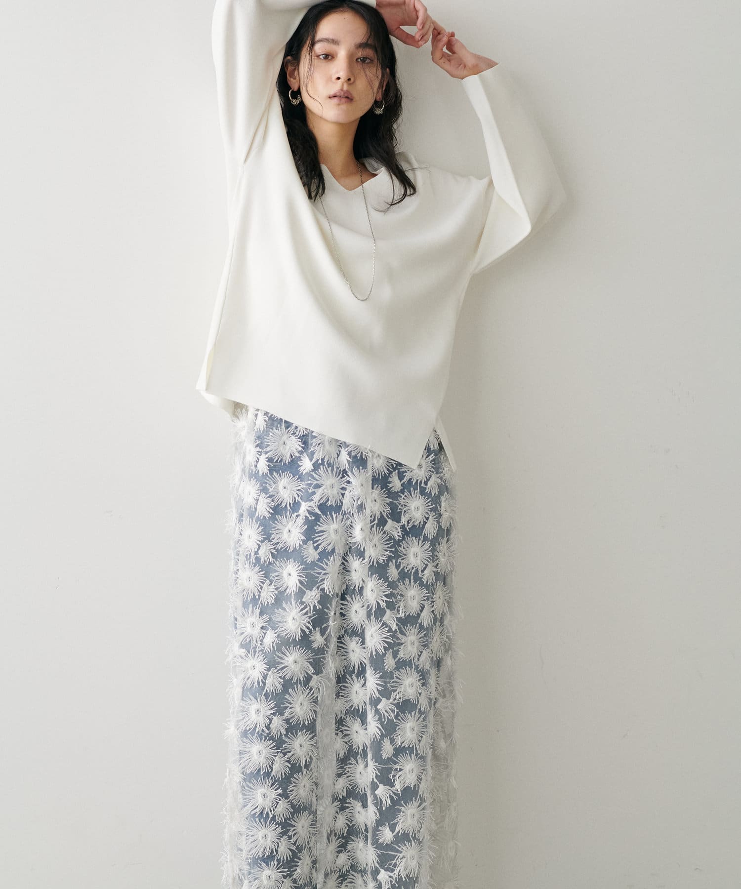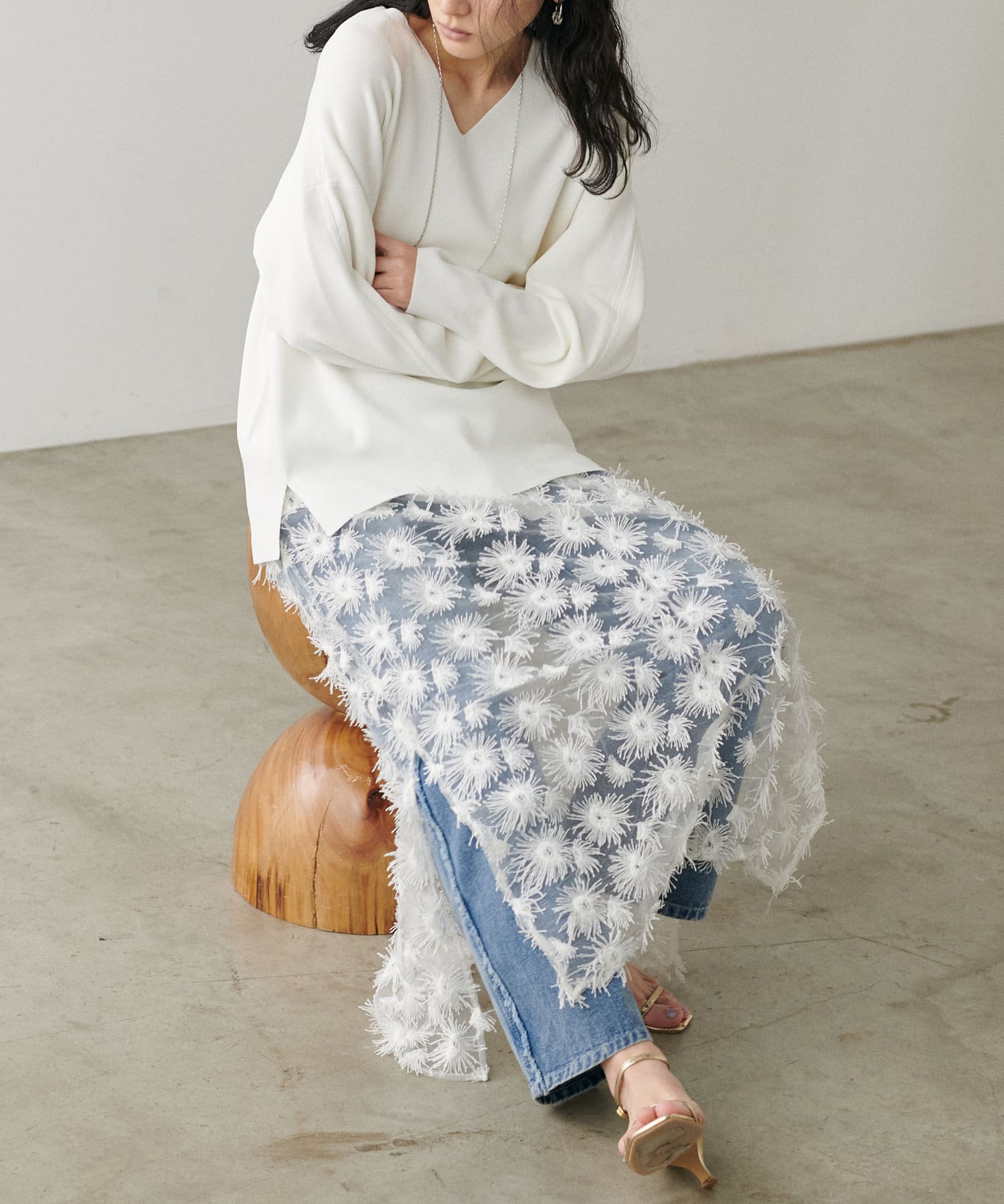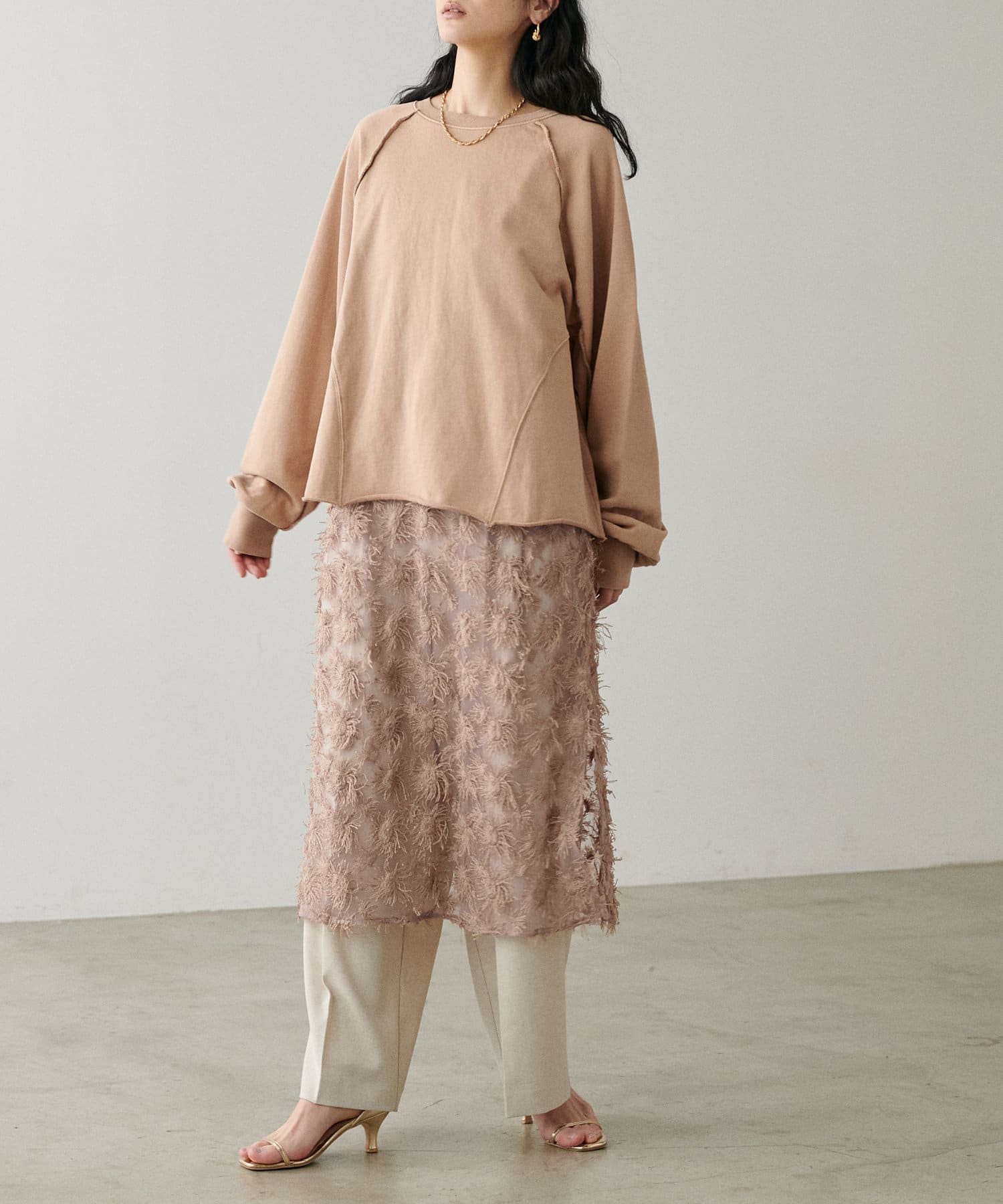 今の時期にはプルオーバーの下に合わせてレーススカートのような