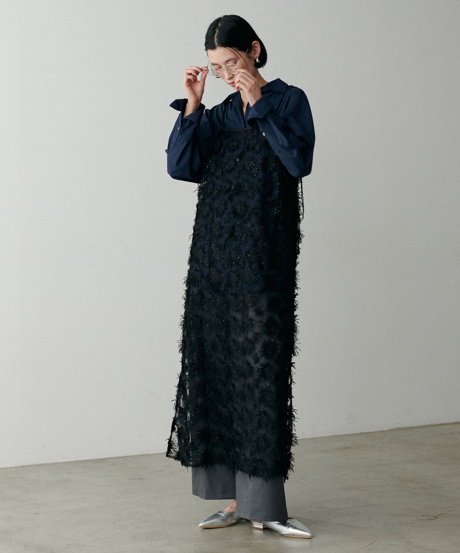 すとんとストレートなシルエットですが、サイドにはスリットが