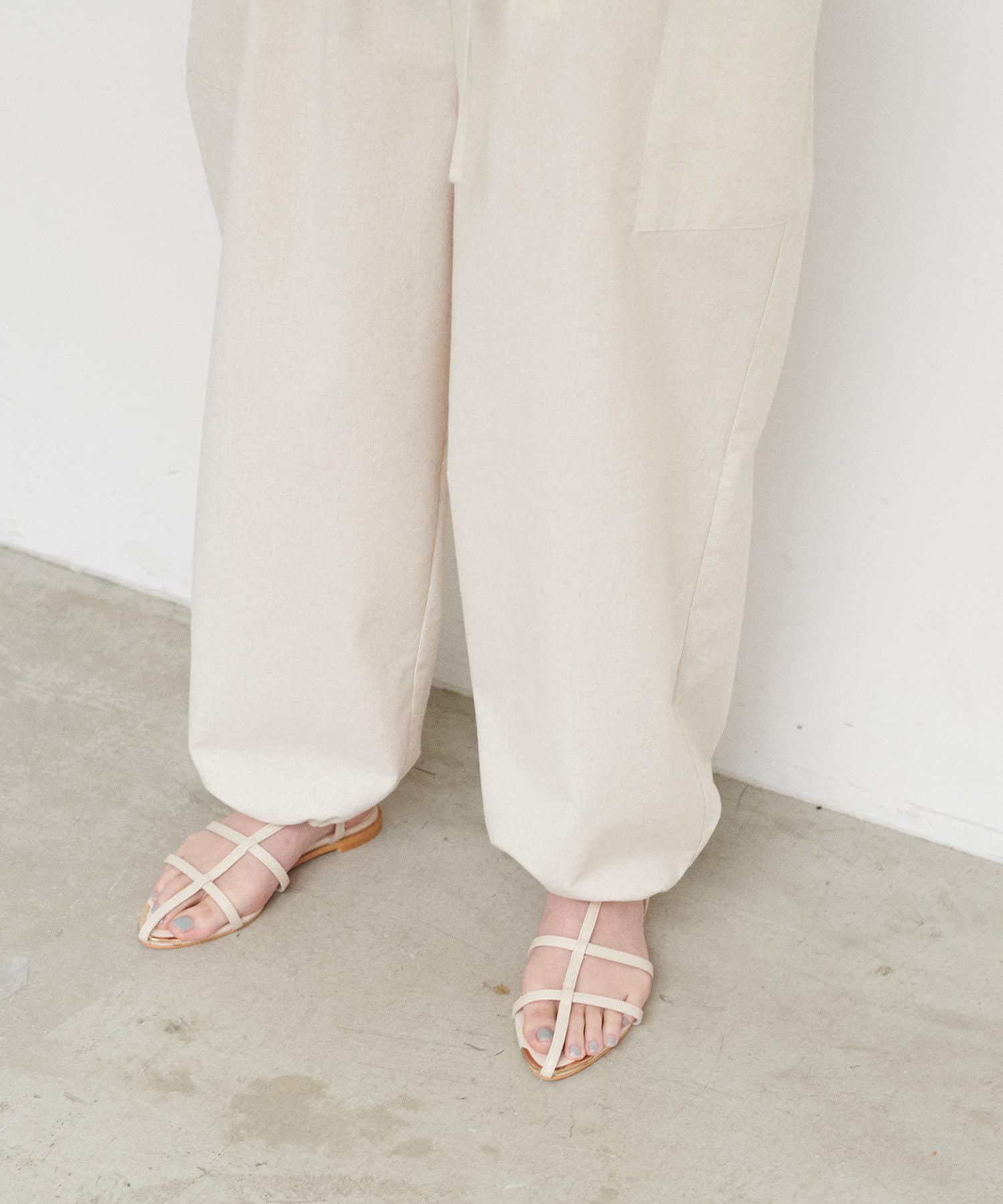 リネンを含むナチュラルな生地を使用し、どこか優しい雰囲気を醸し出す1枚。