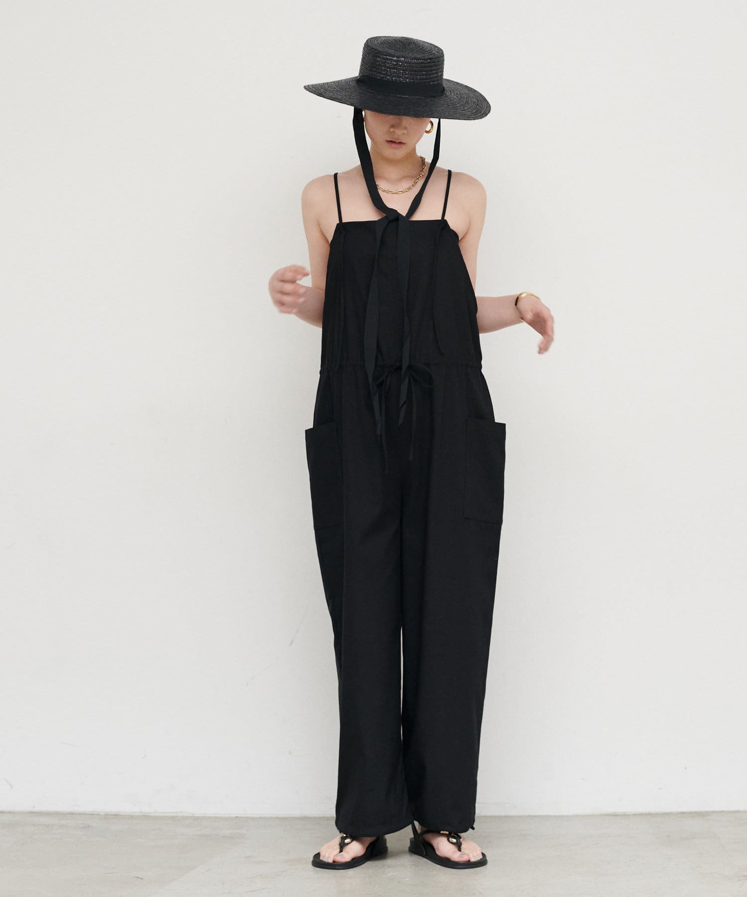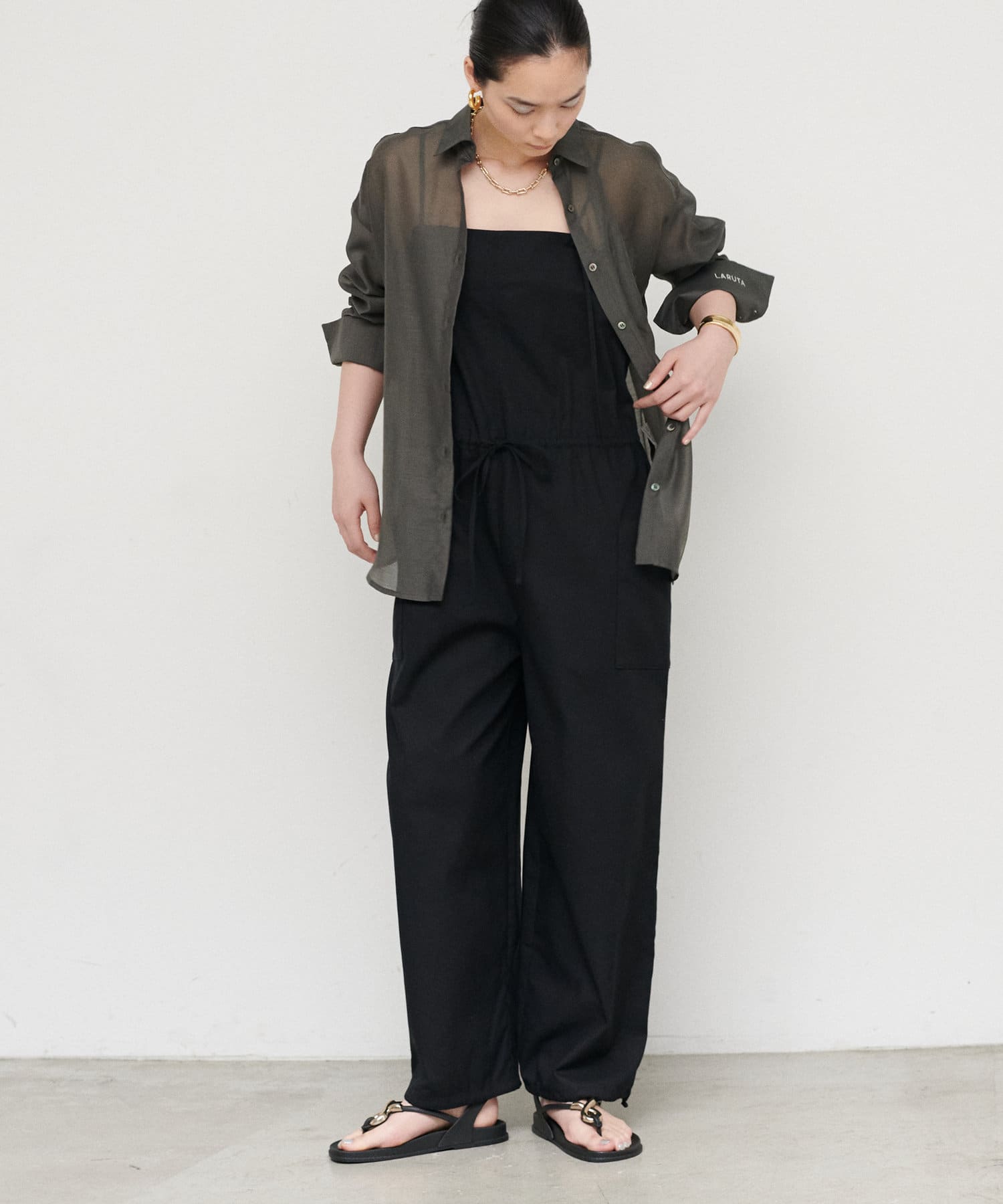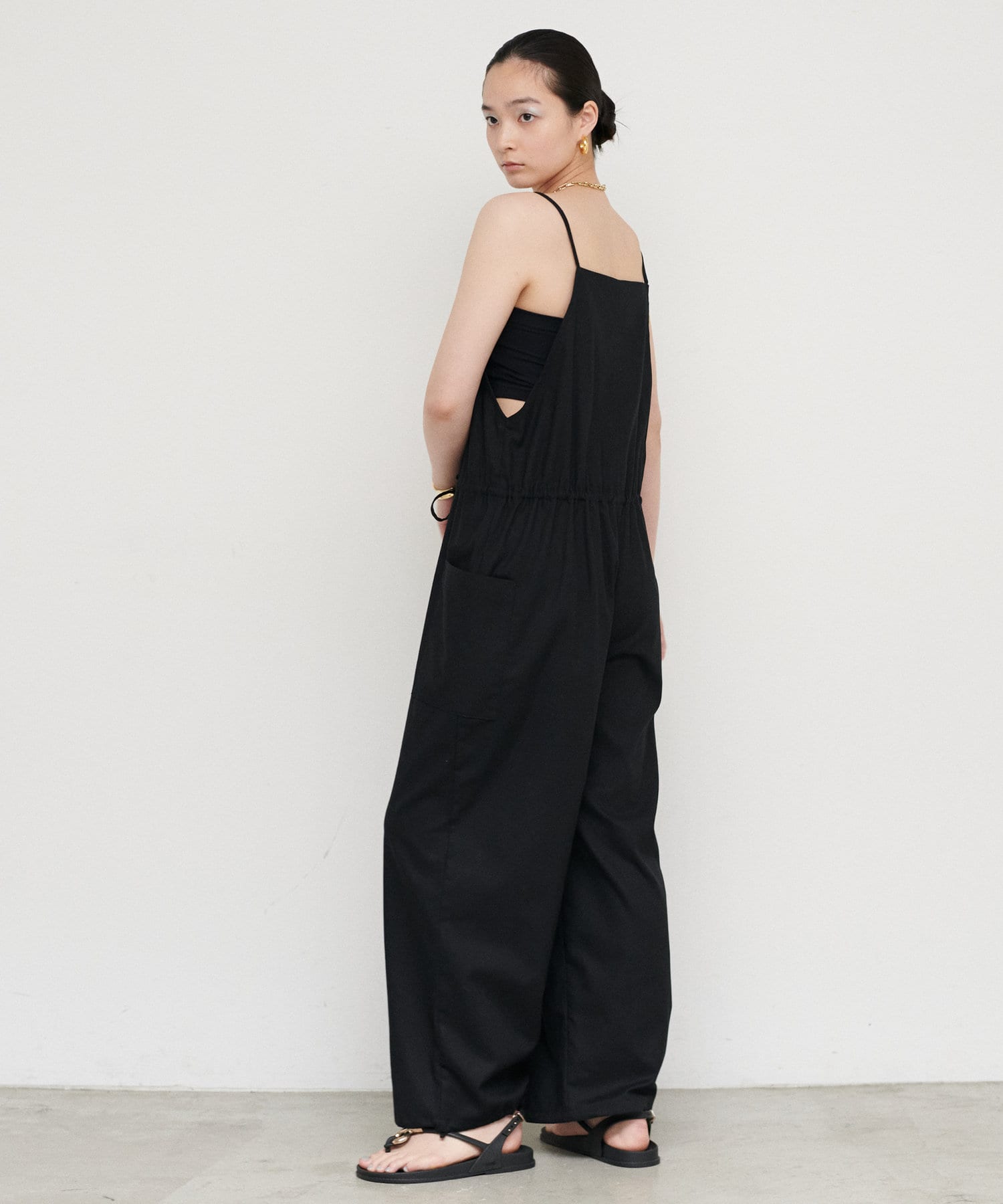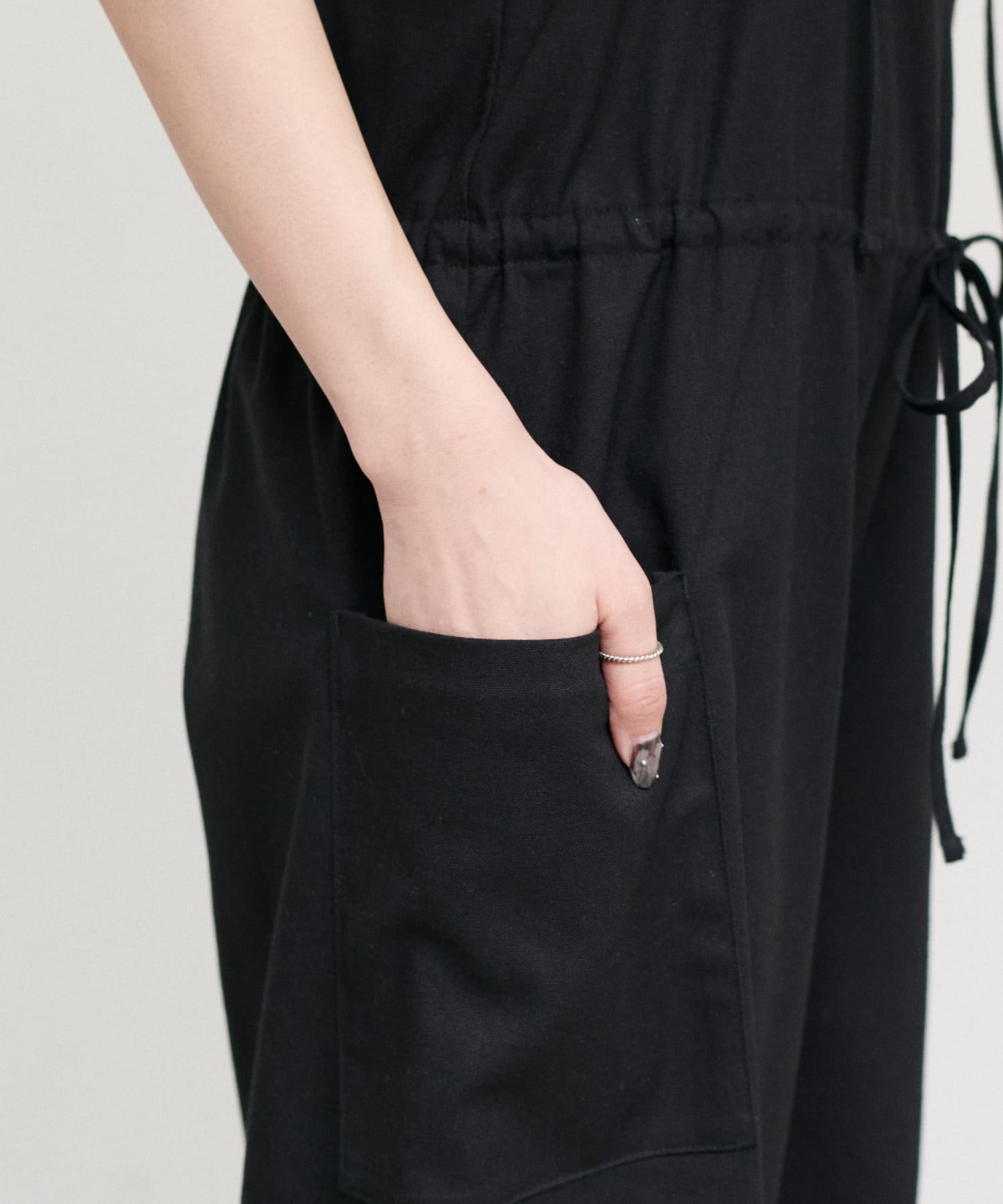 華奢な肩紐と、ウエストのドローストリングで、女性らしさをプラス。