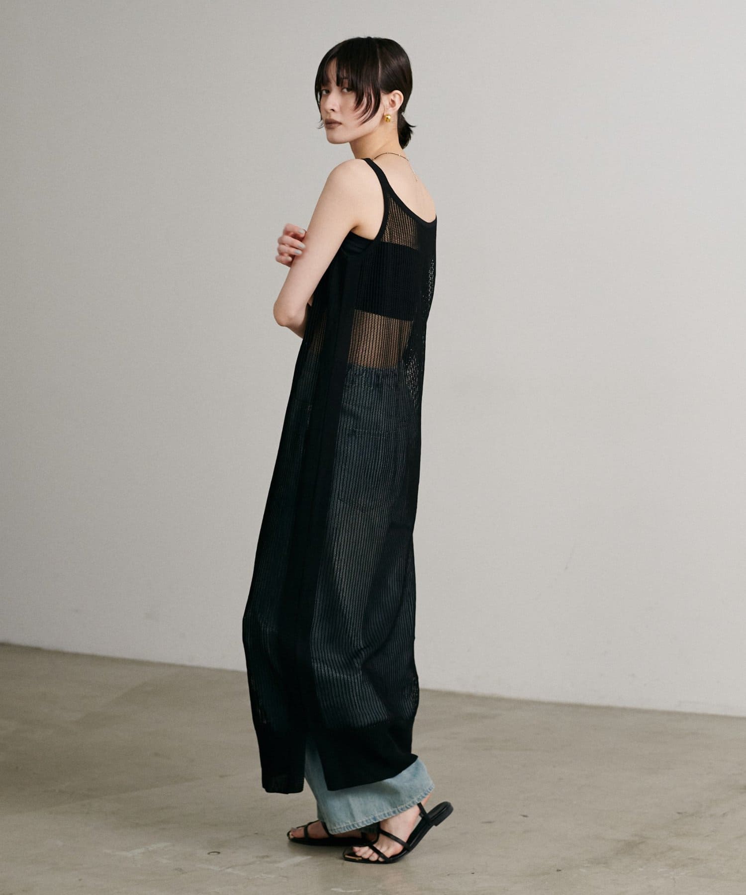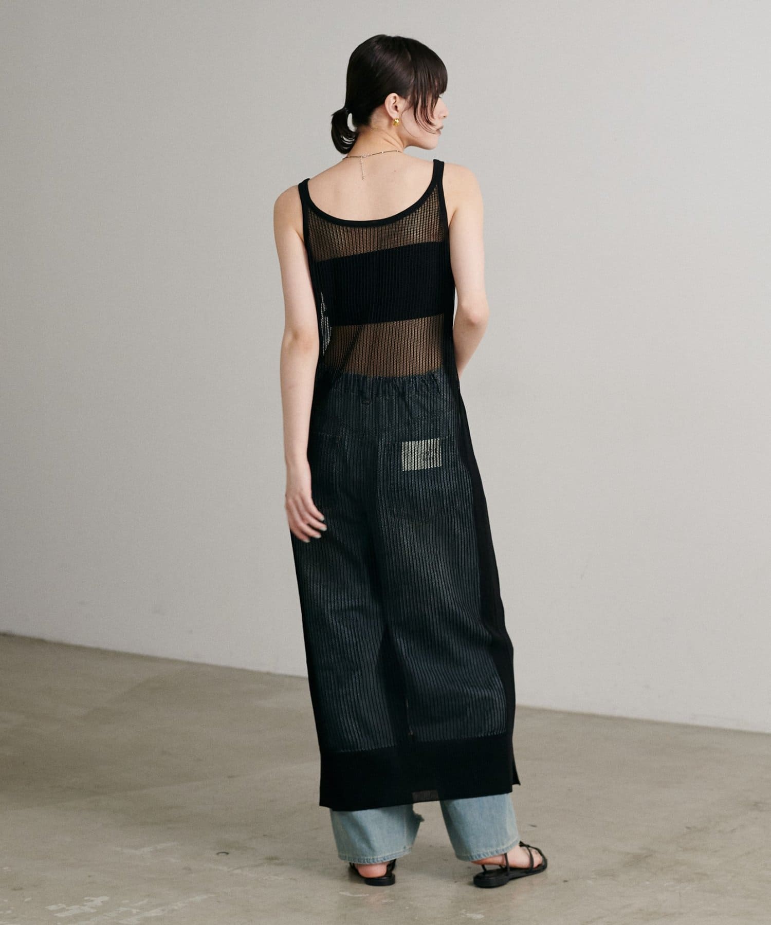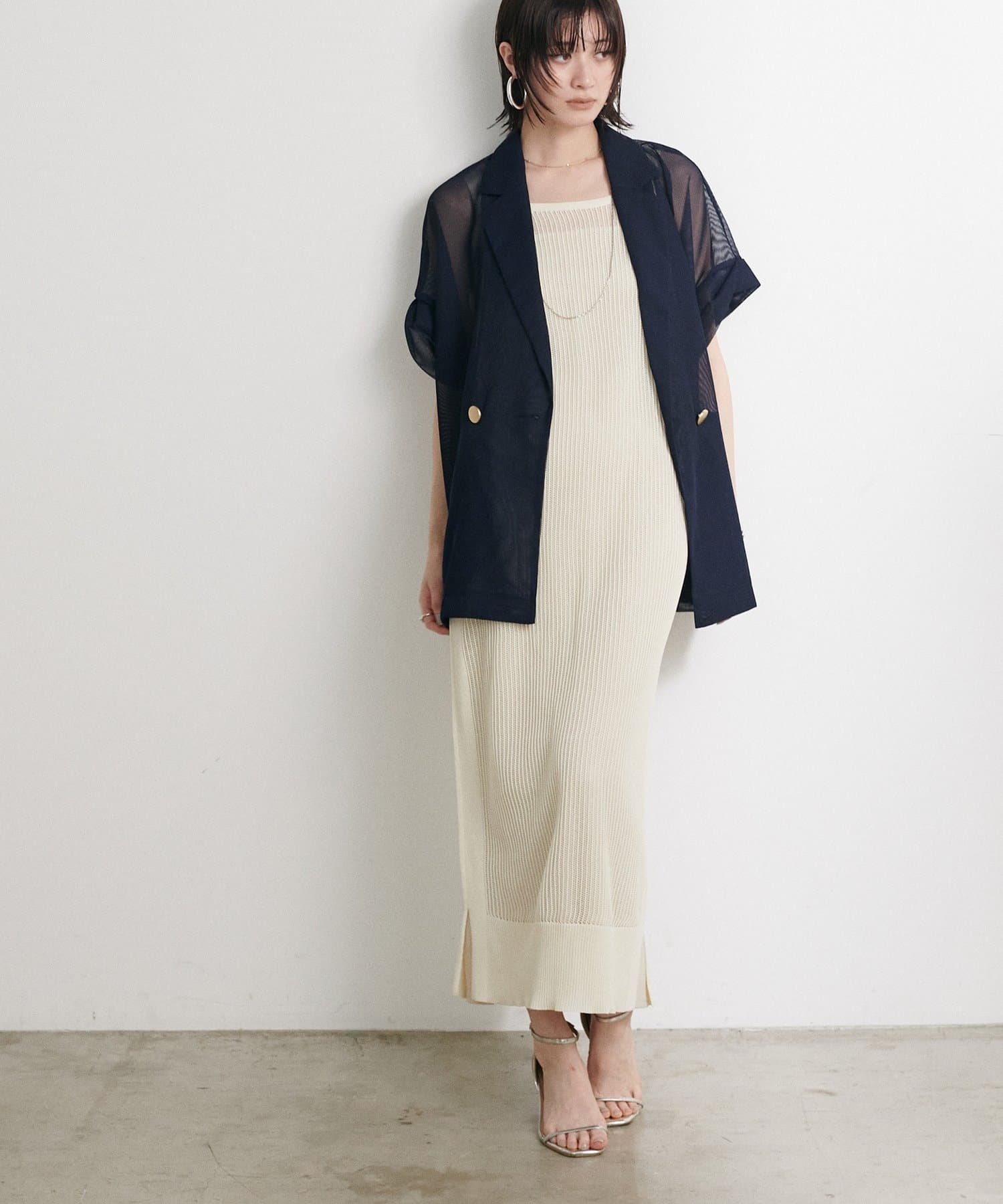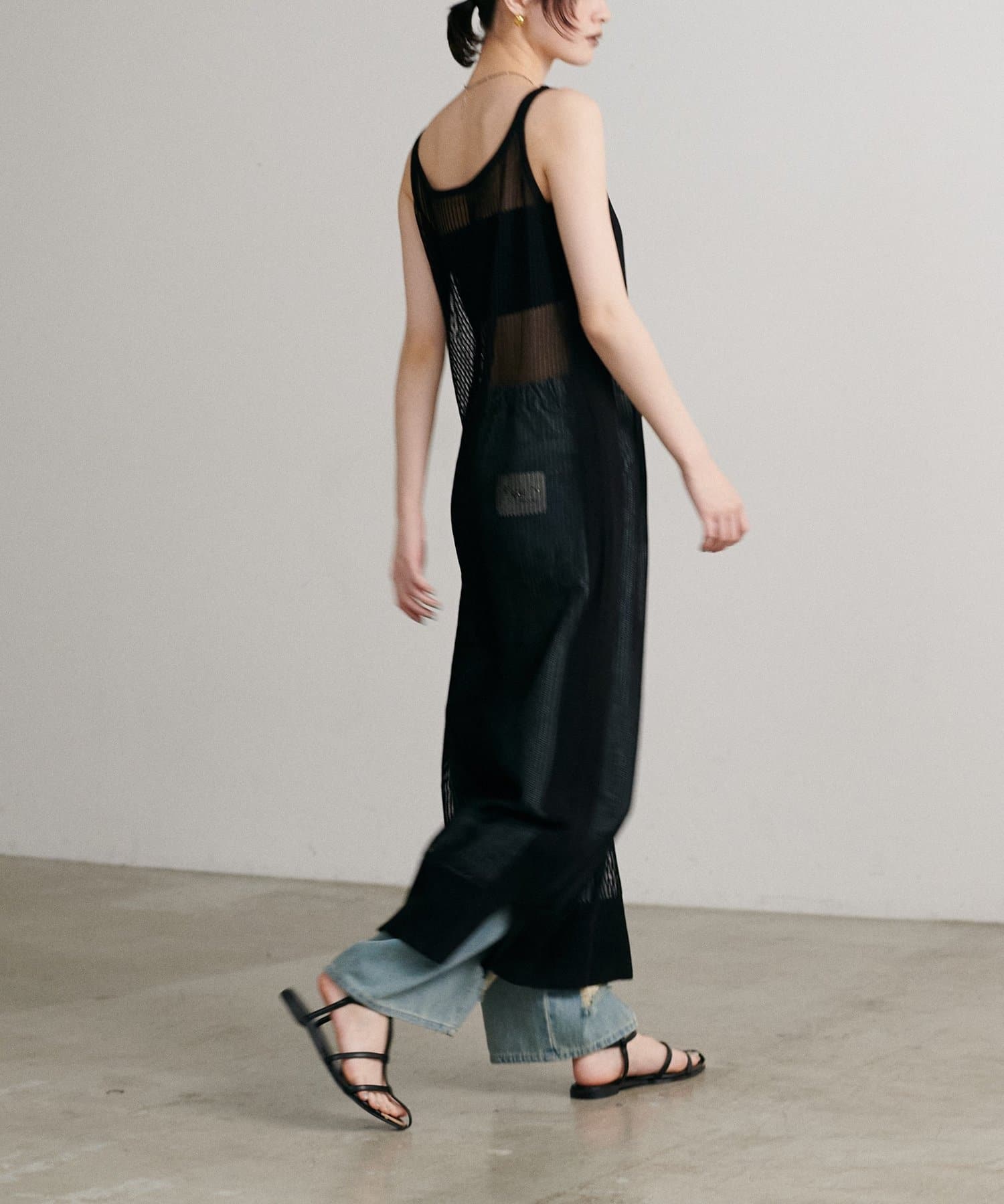 メッシュの透け感を生かした、抜け感のある大人なスタイリングが完成します。