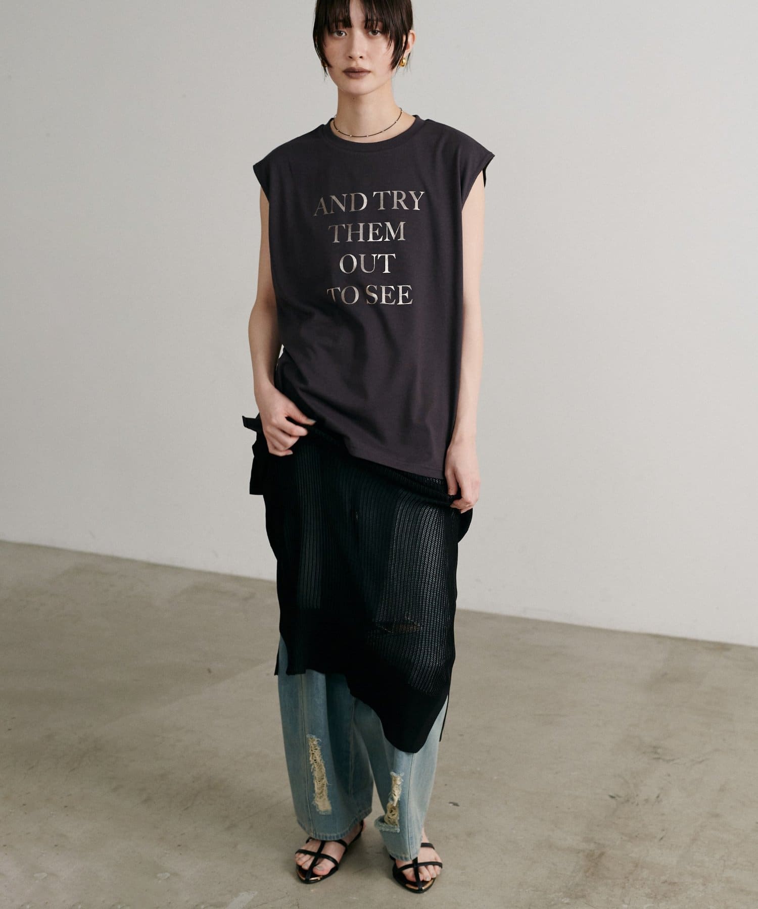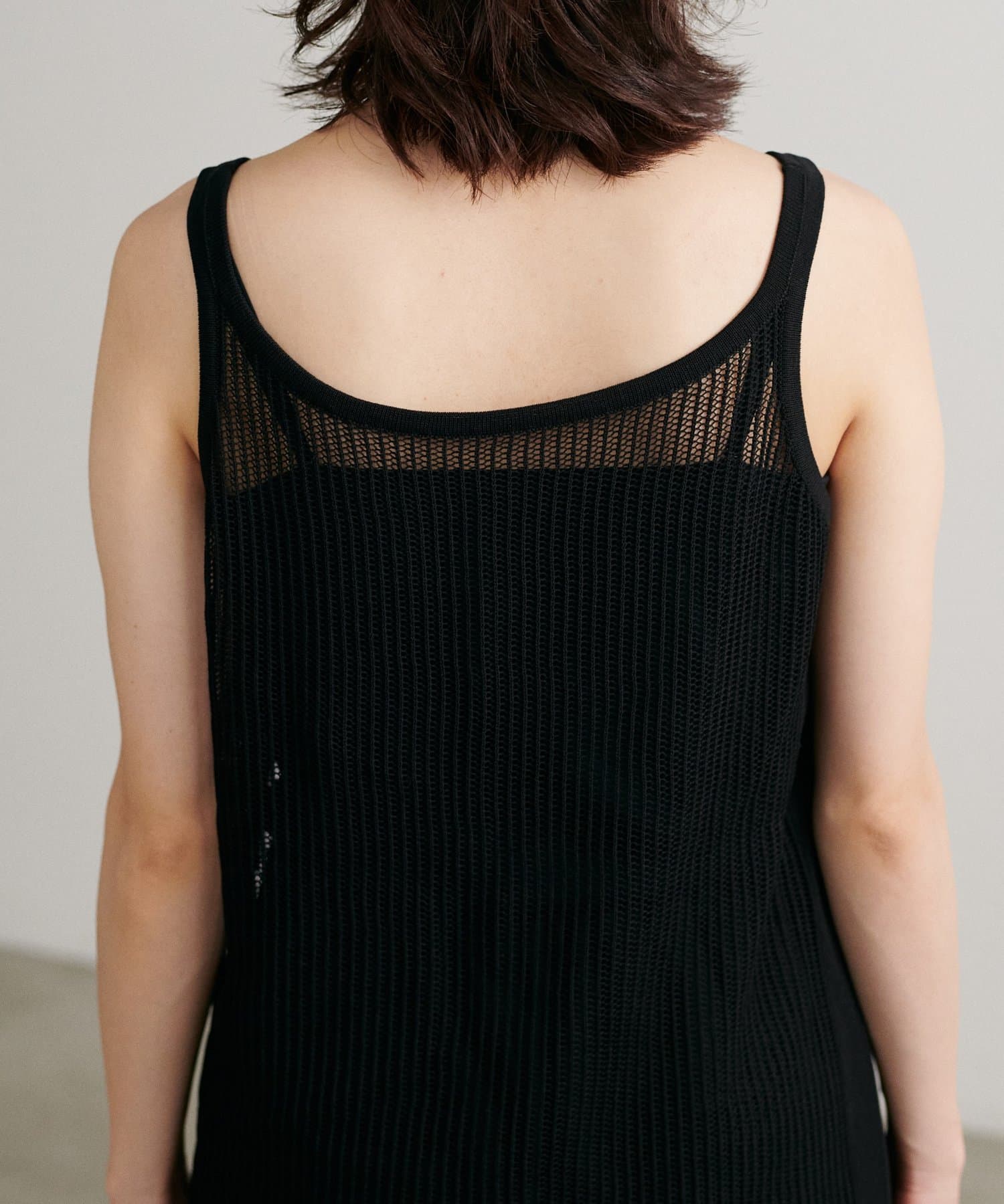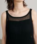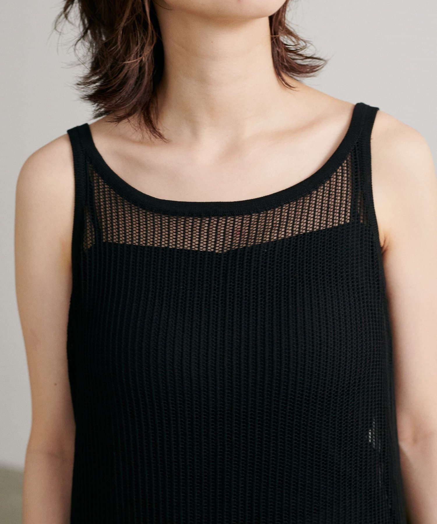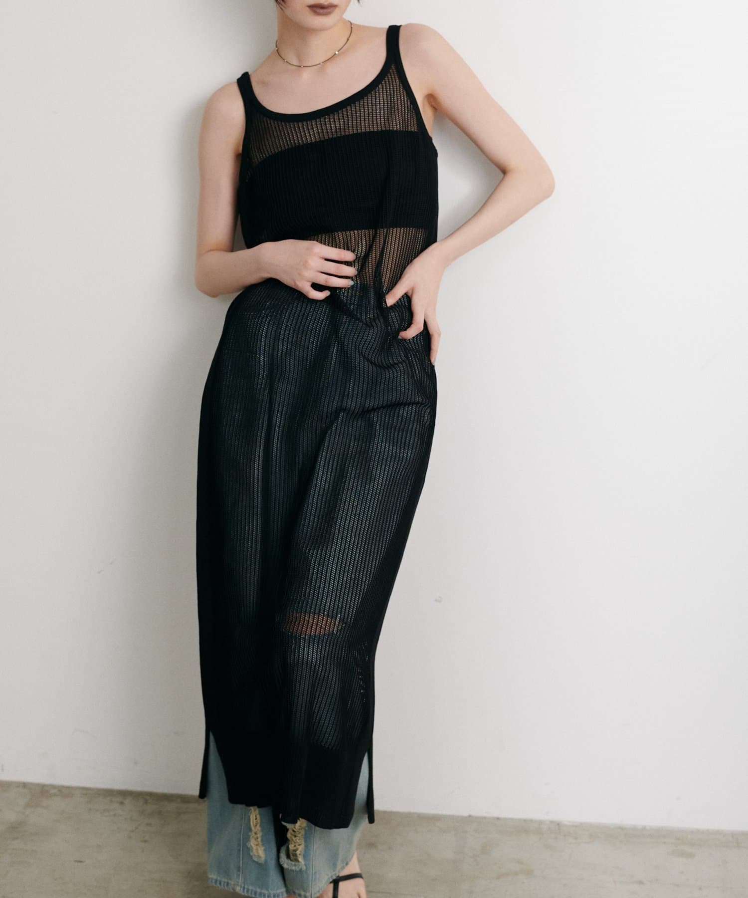 メッシュの透け感を生かした、抜け感のある大人なスタイリングが完成します。