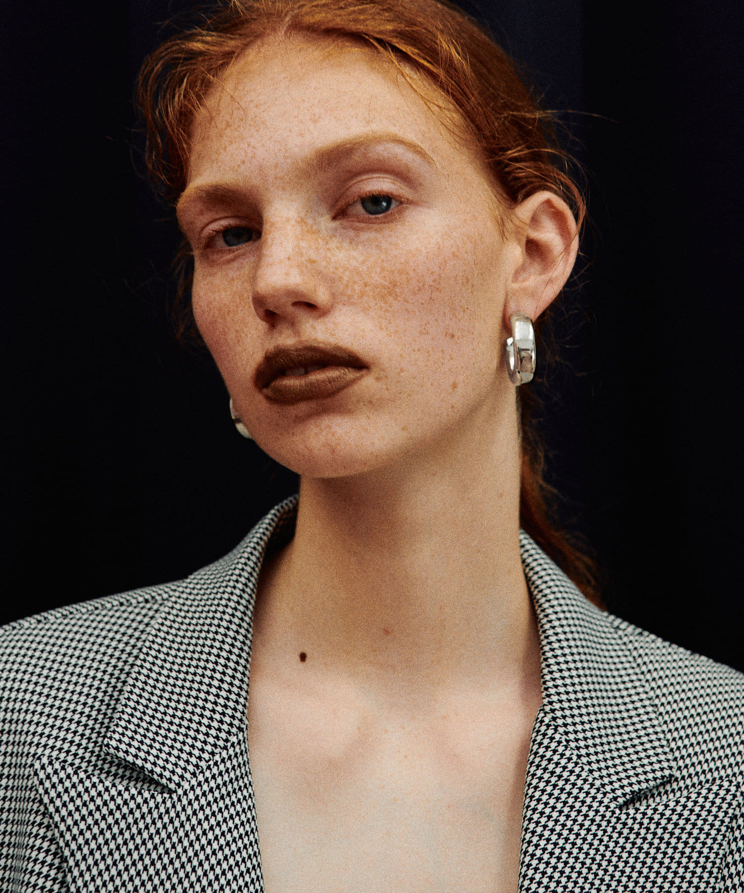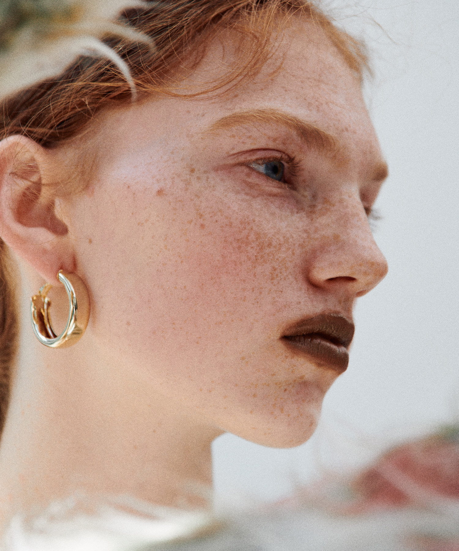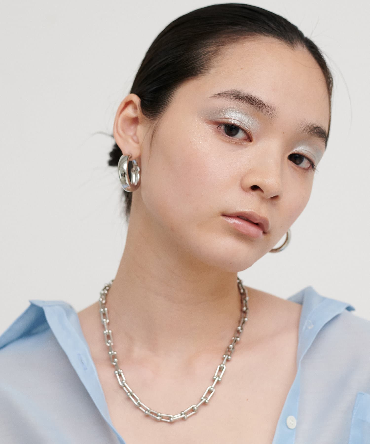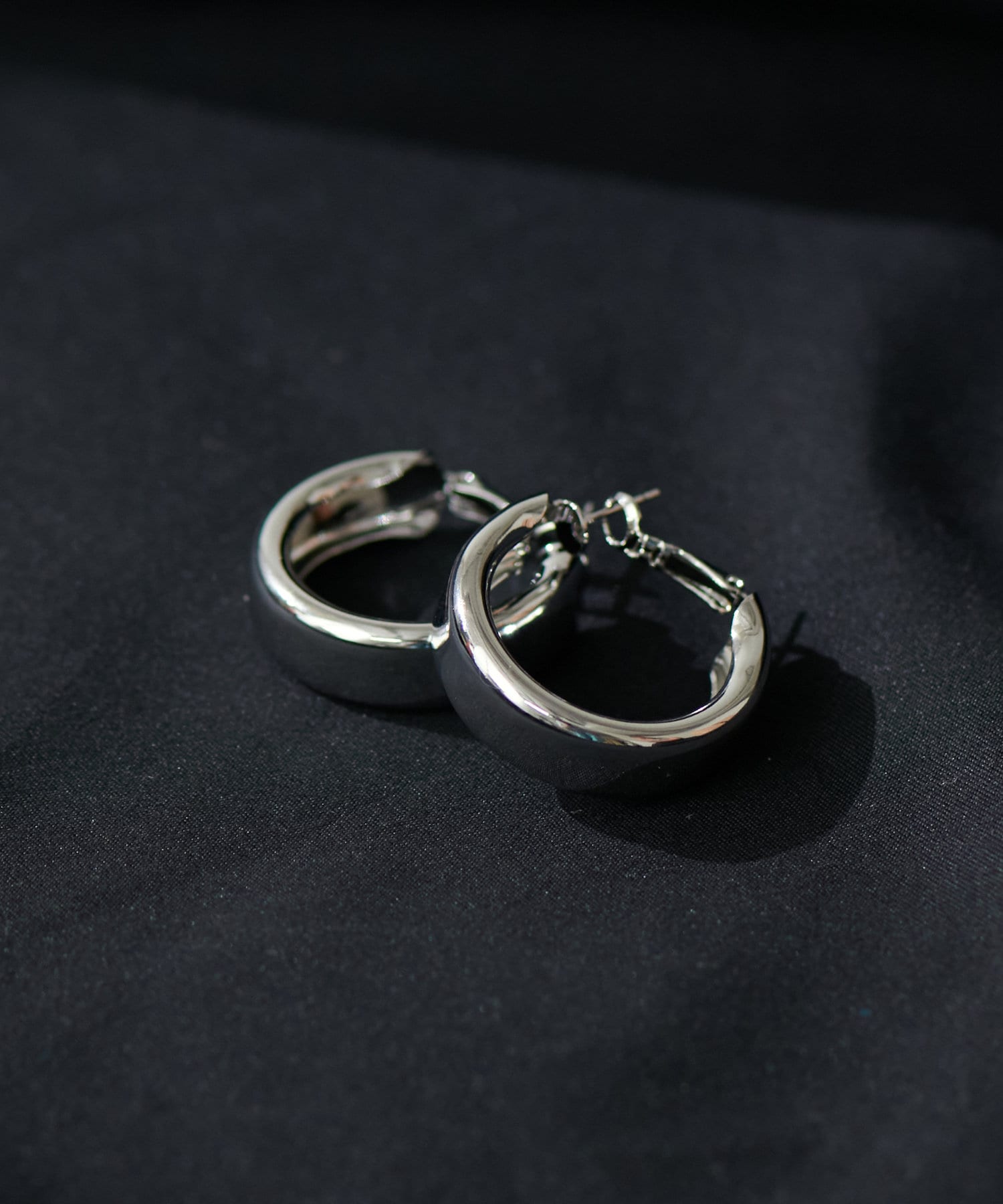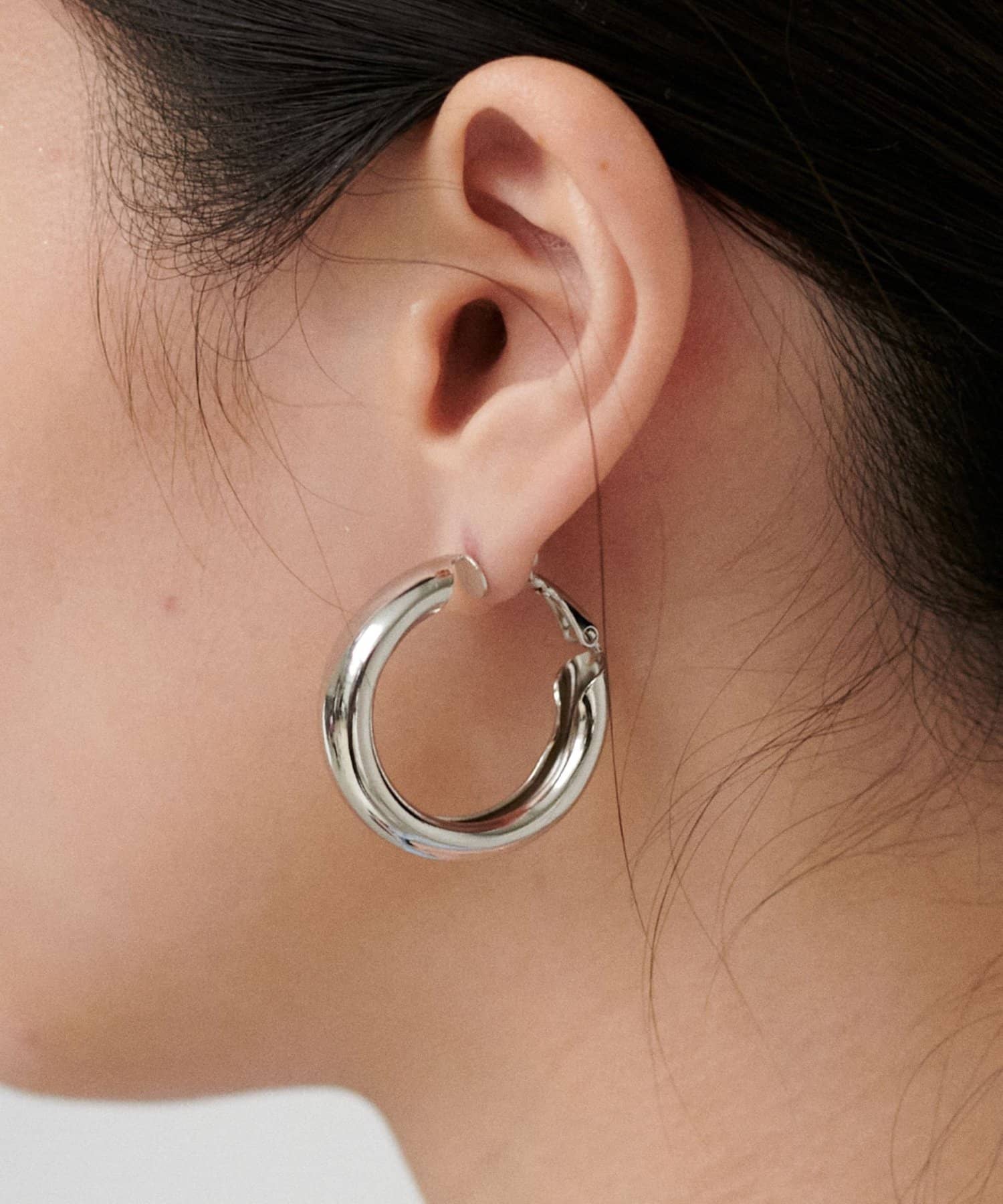 ぷっくりとしたデザインで存在感のあるフープ型ピアス。