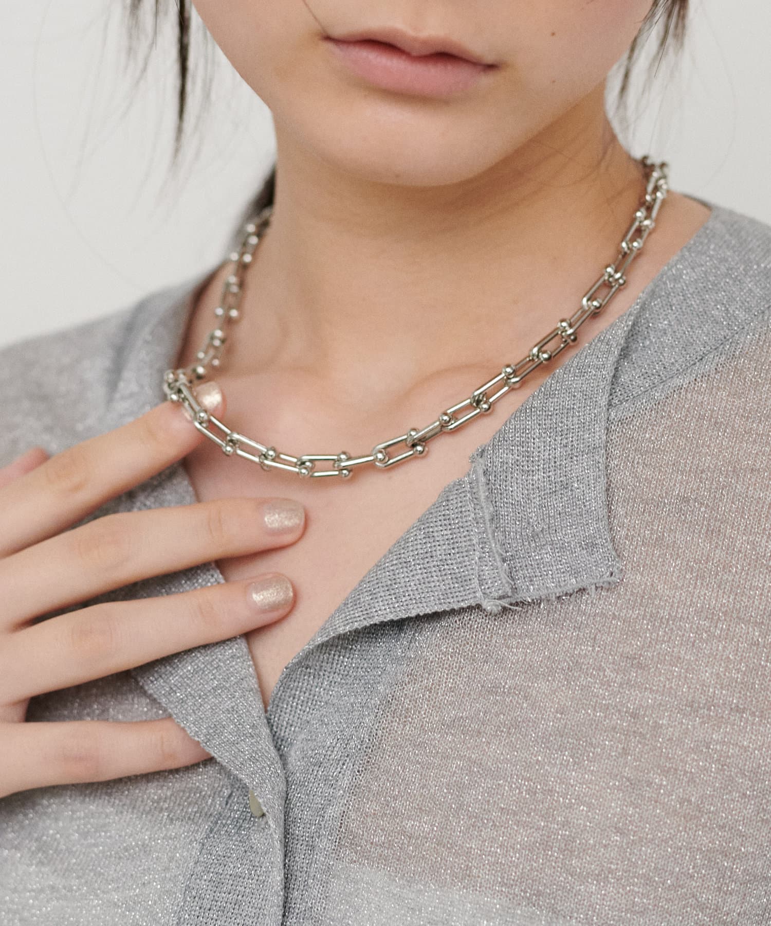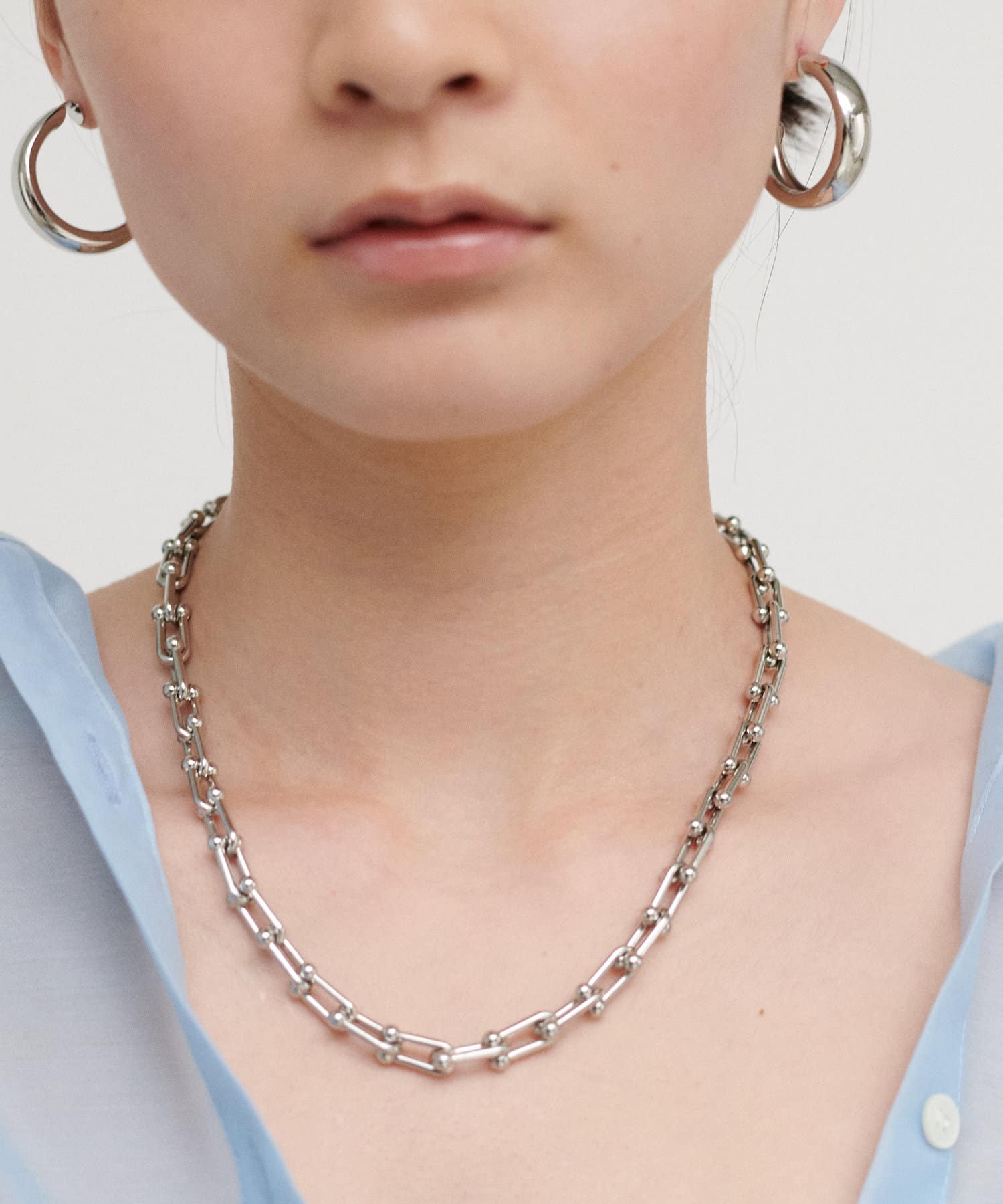 シンプルながら存在感のあるボリュームのあるネックレス。