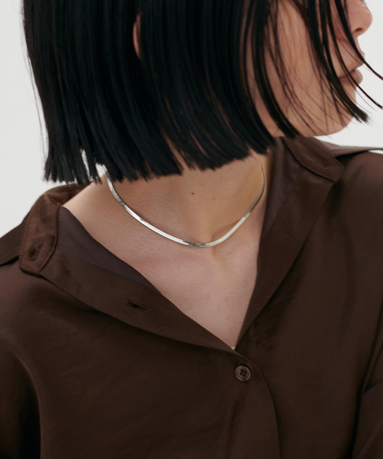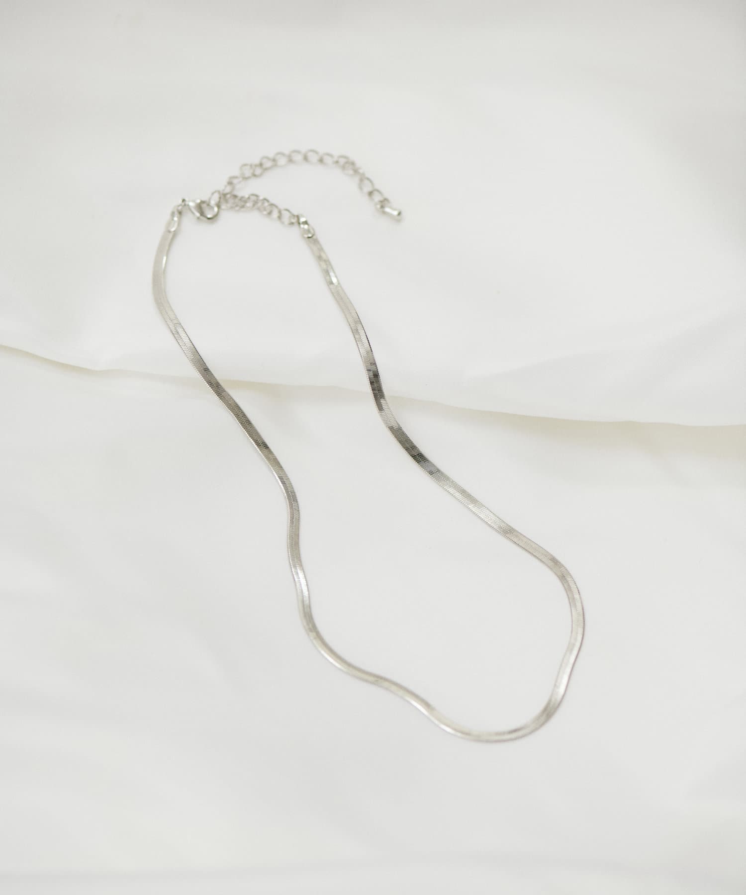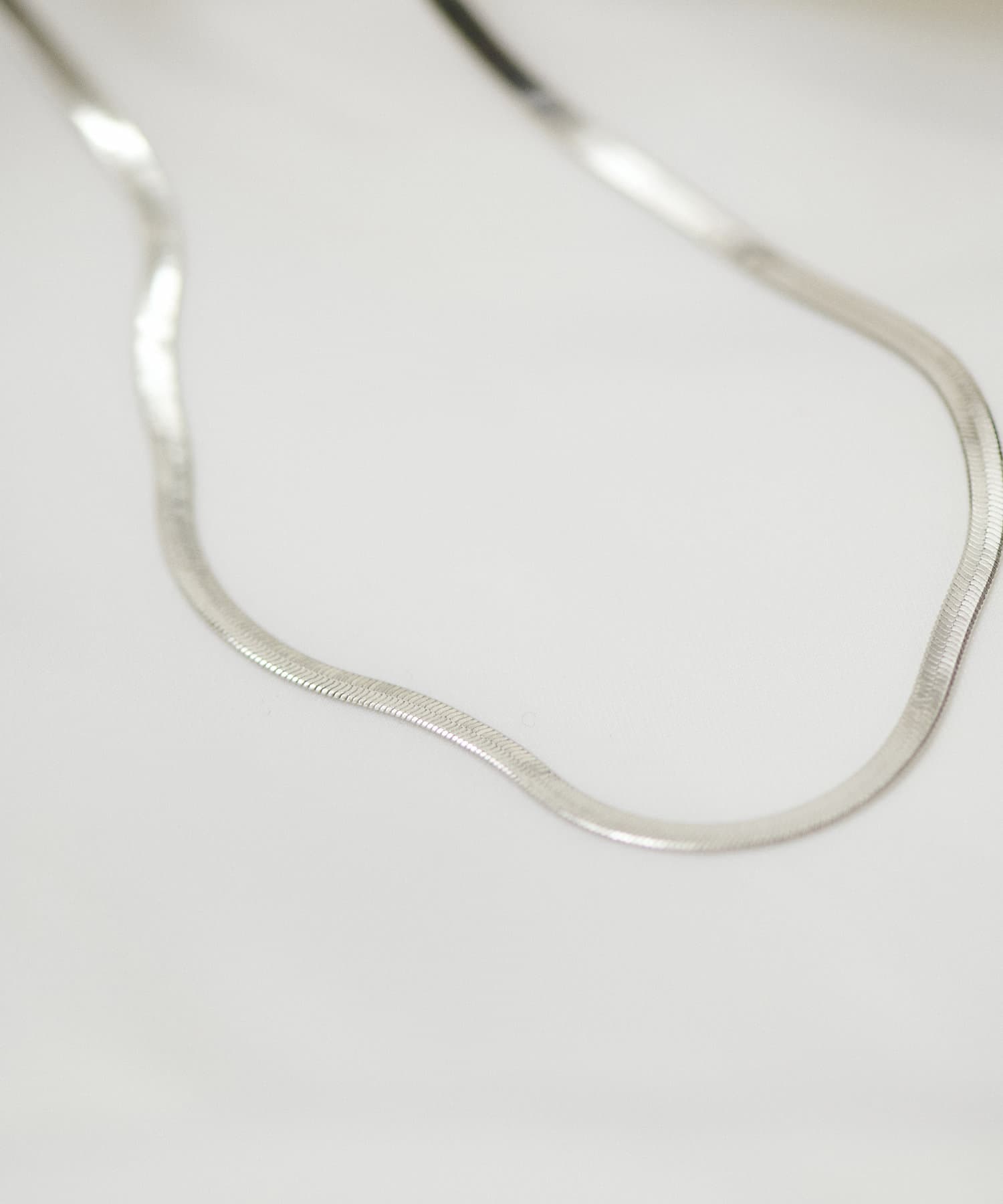 肌に沿うような程よい太さのスネークチェーンネックレス。