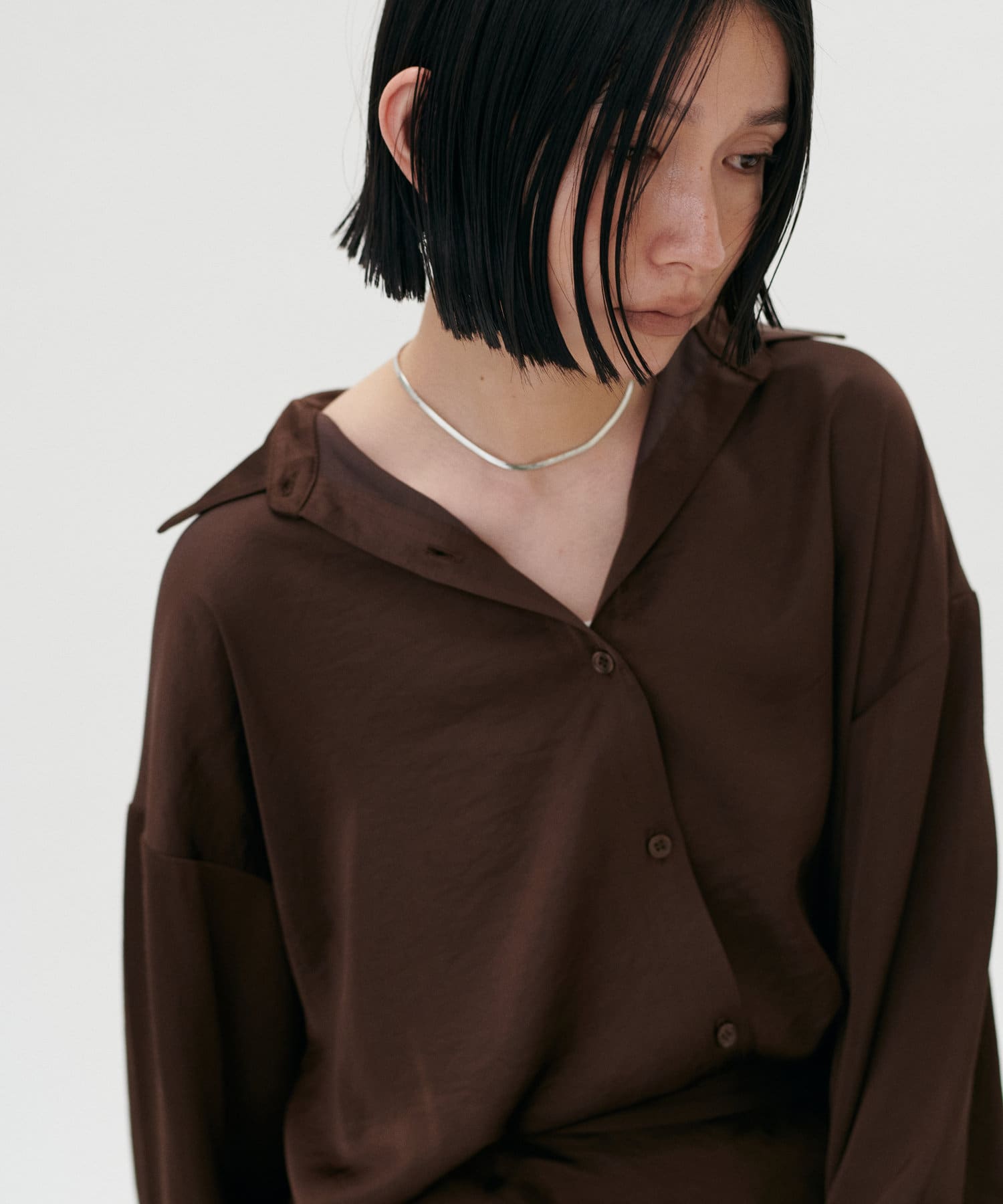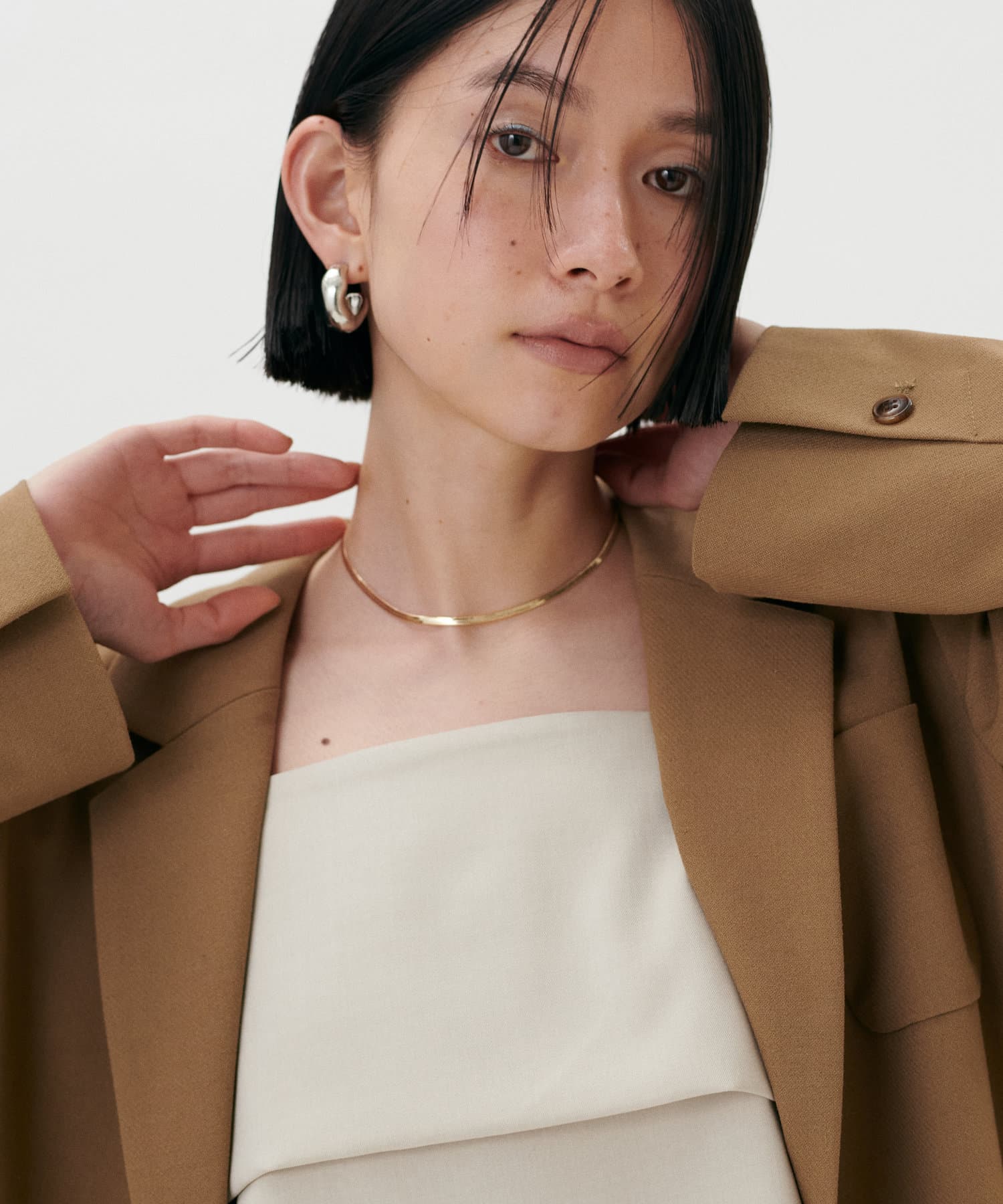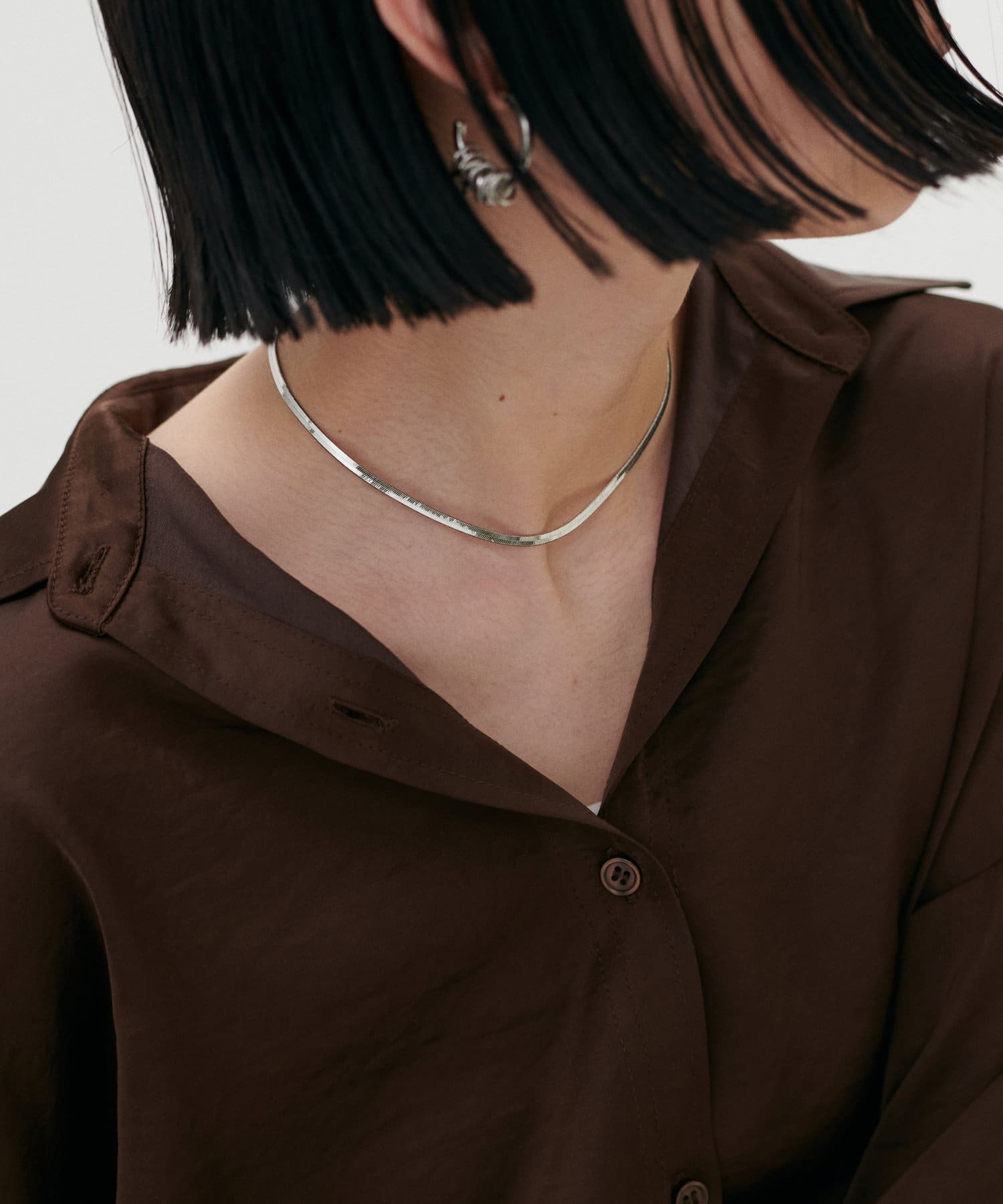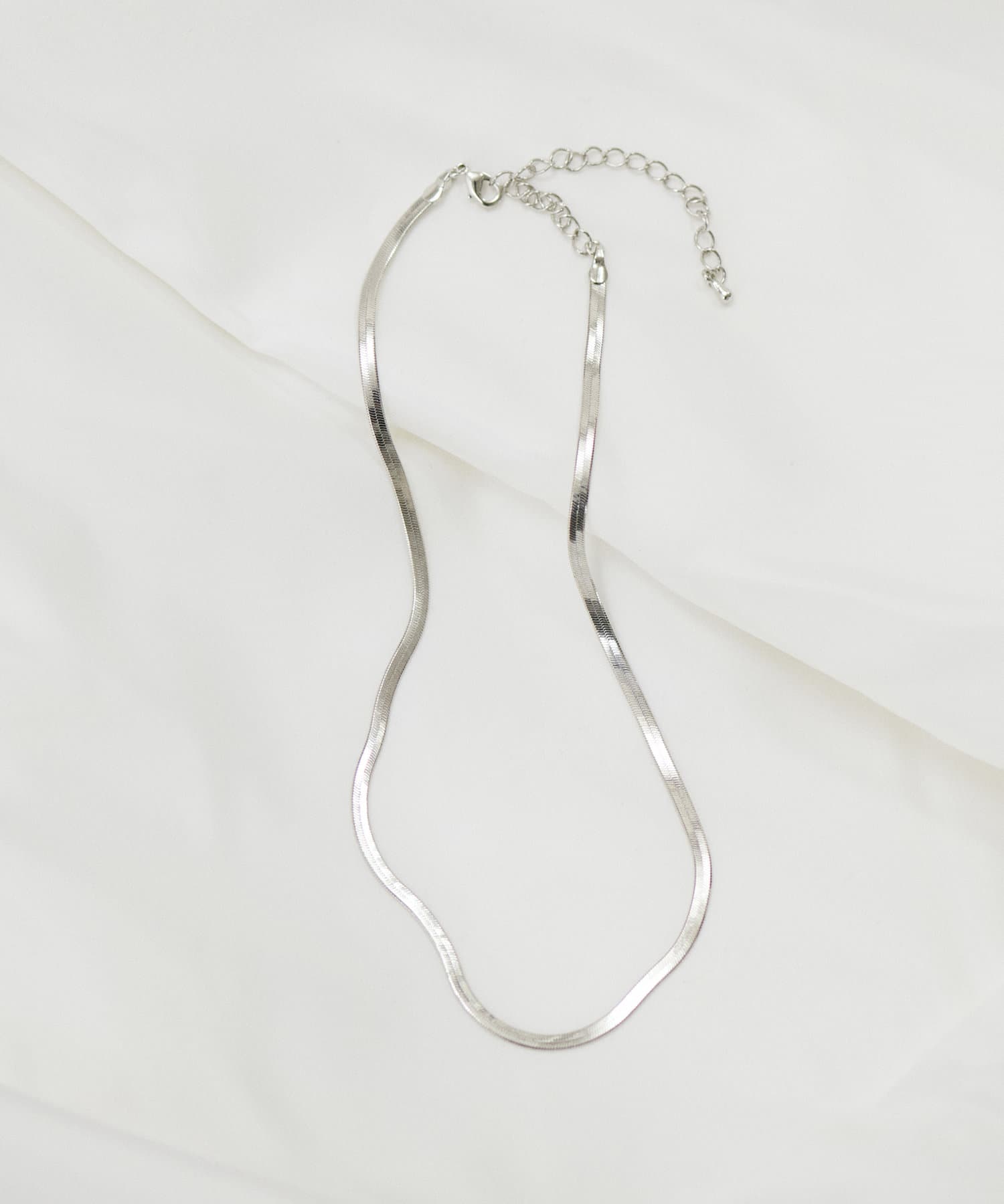 肌に沿うような程よい太さのスネークチェーンネックレス。