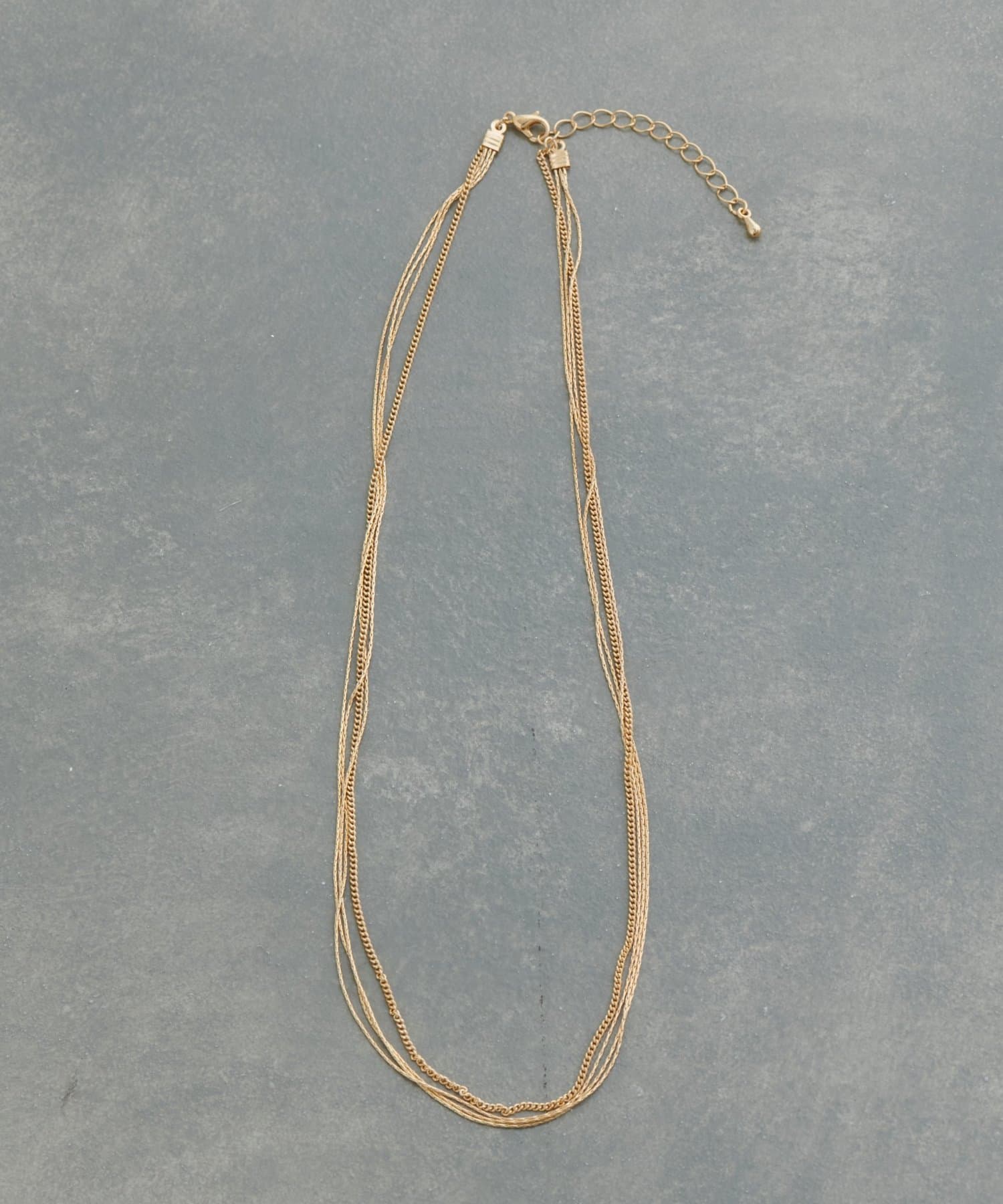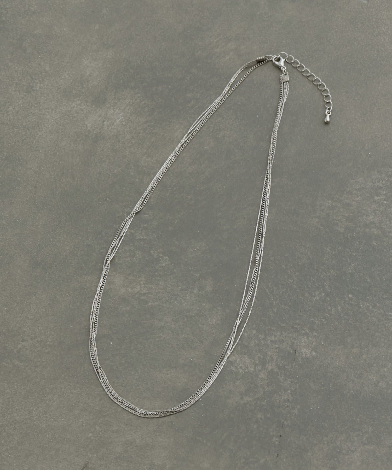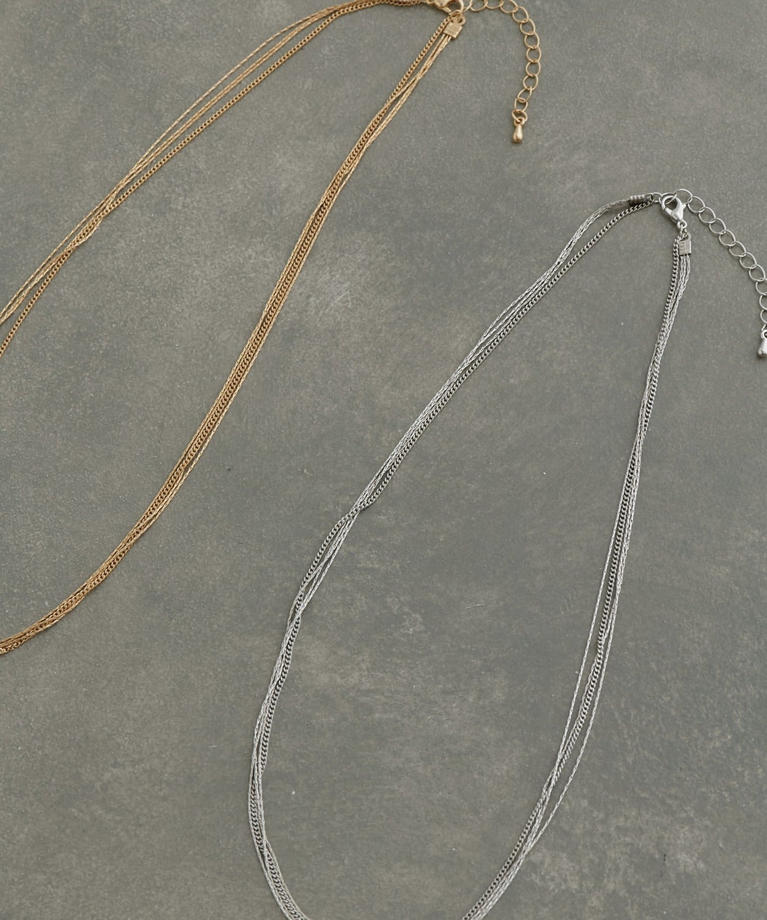 大人な華やかさとモダンな印象を兼ね備えた、重ねチェーンネックレス。