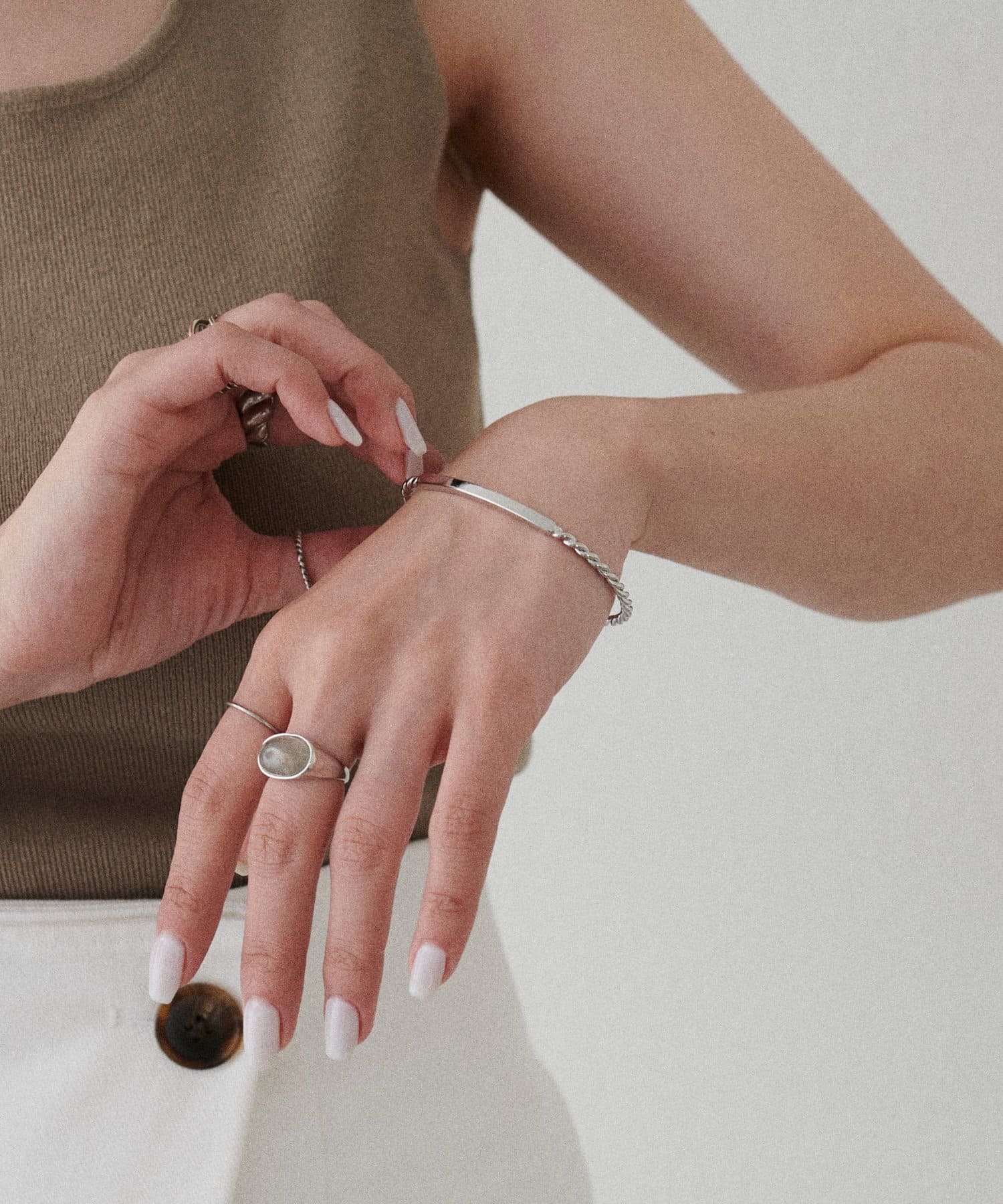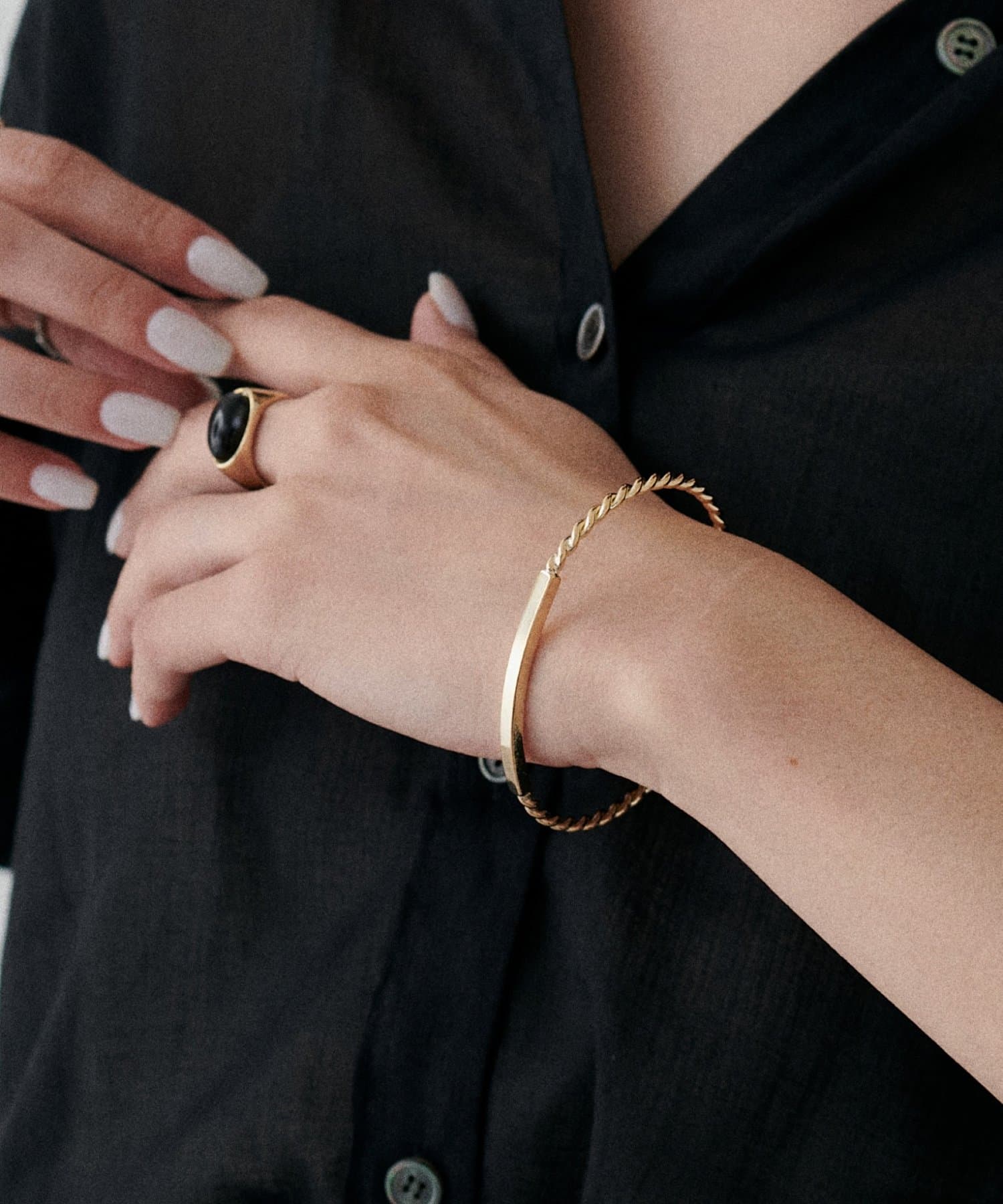 華奢なバングルなので、手首をすっきりとして見せてくれるのが特徴。