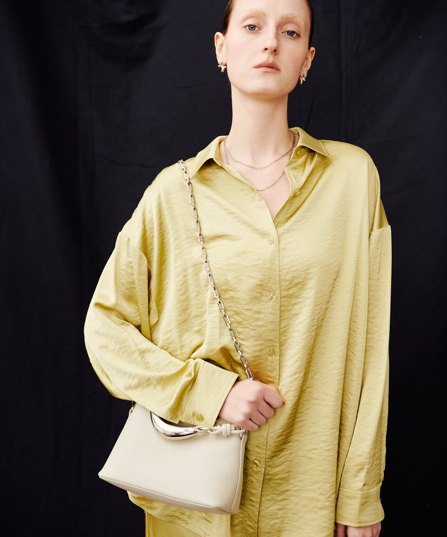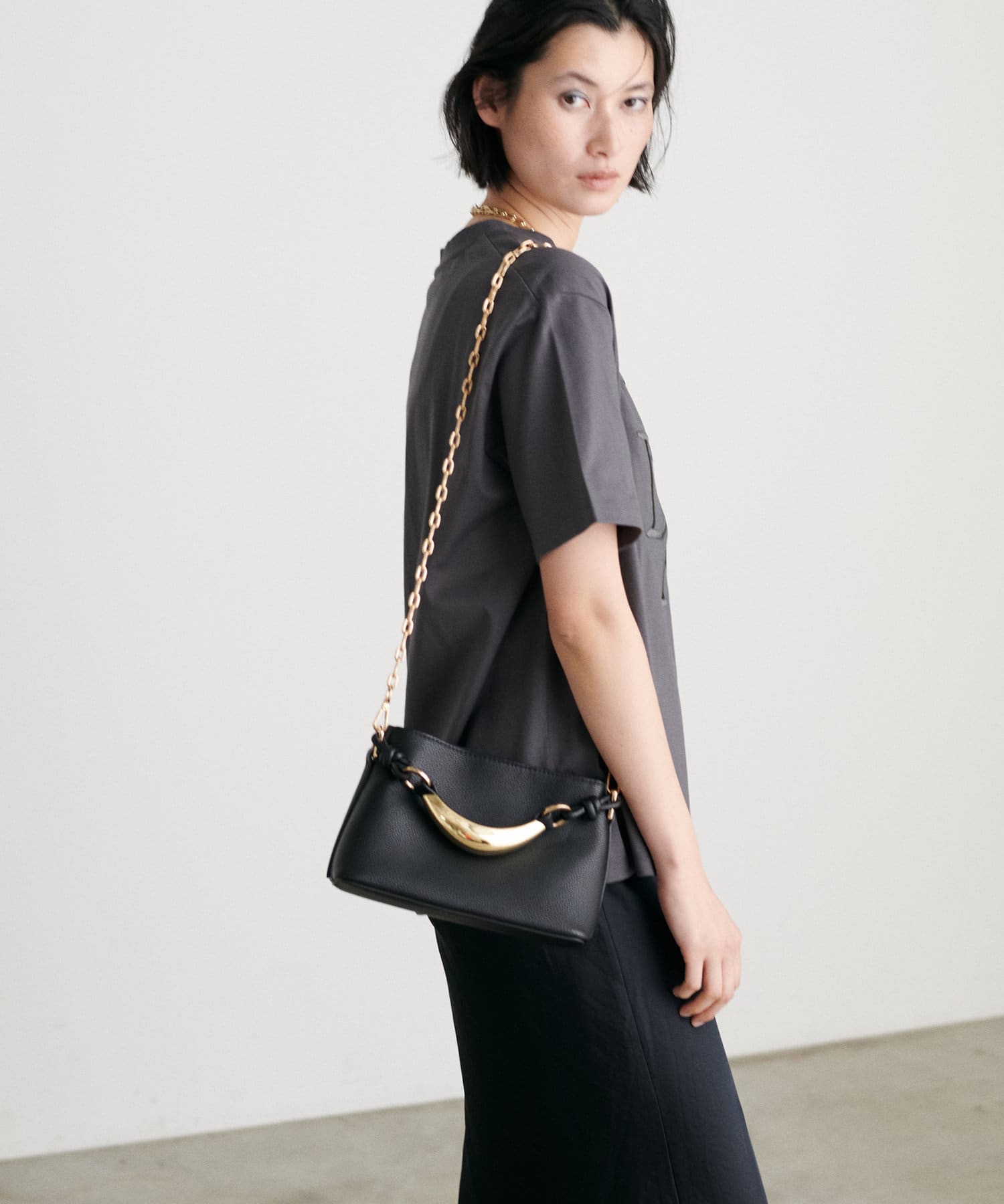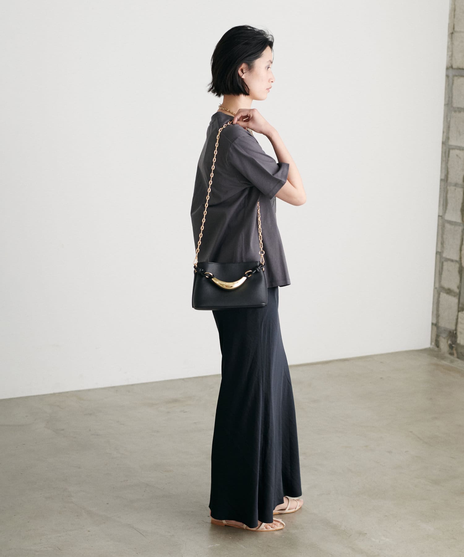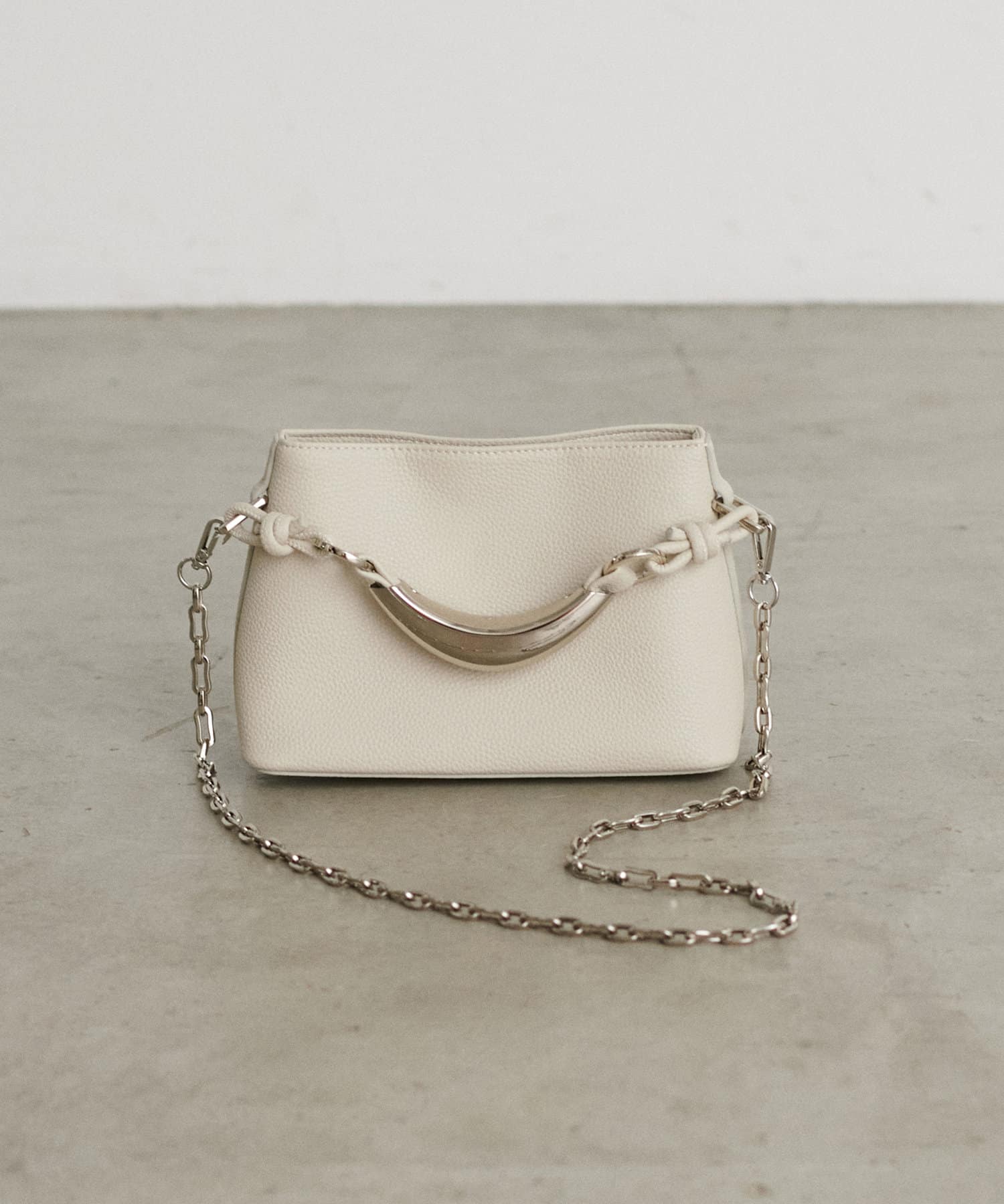 チェーンのストラップと柔らかなフェイクレザーで、春夏の軽やかな装いにもピッタリ。