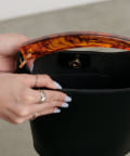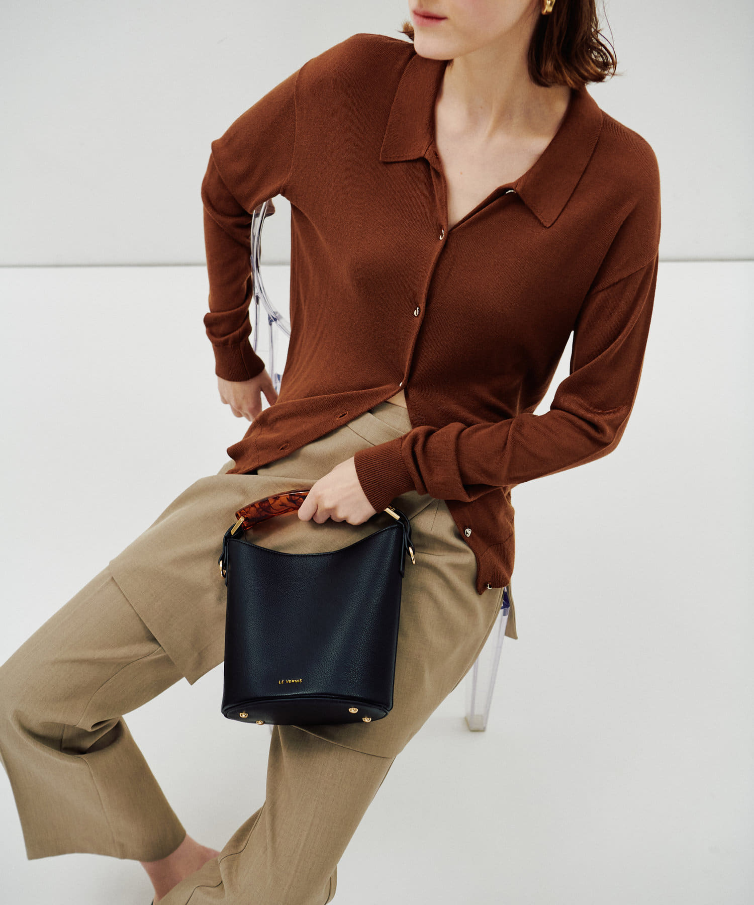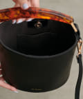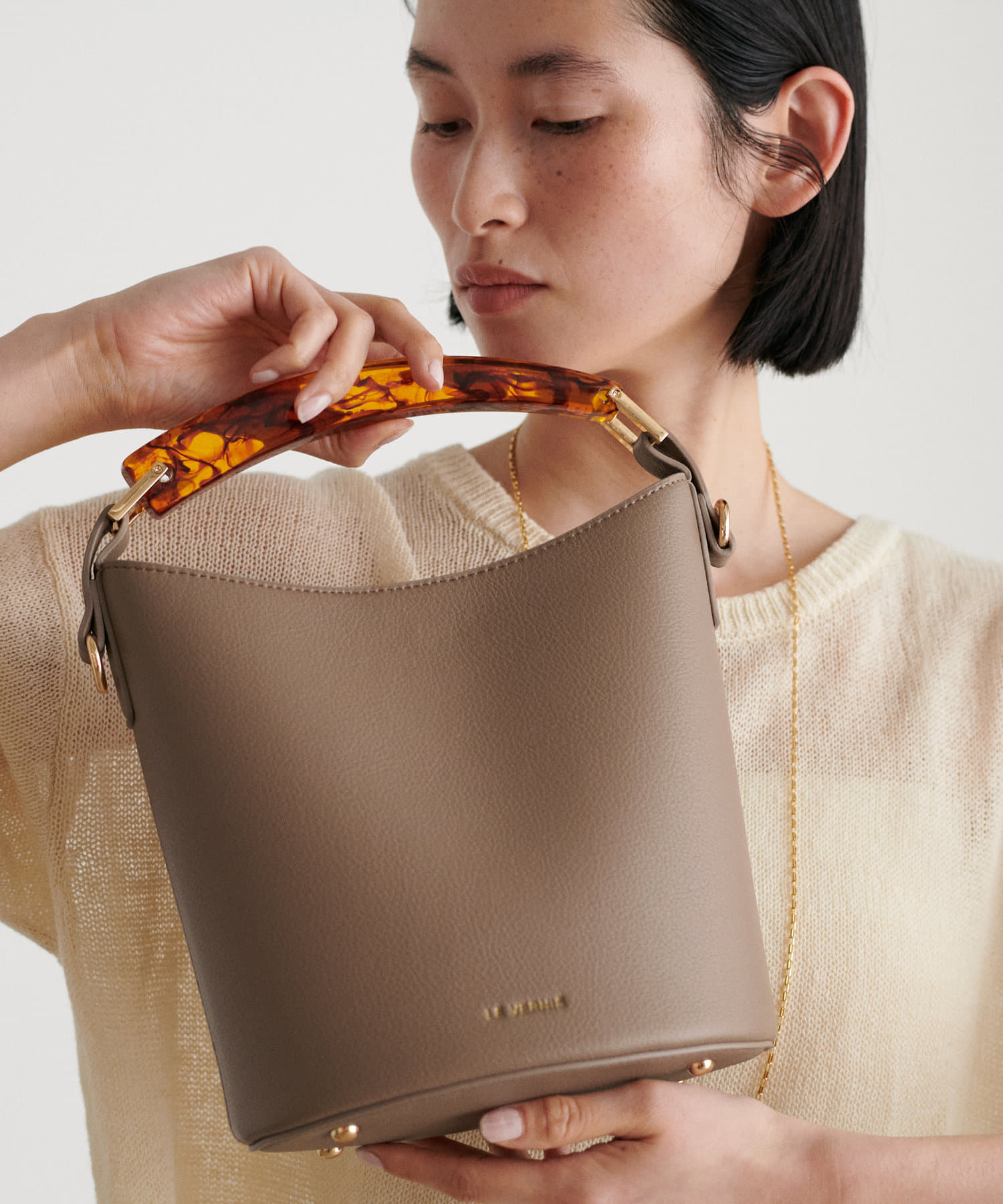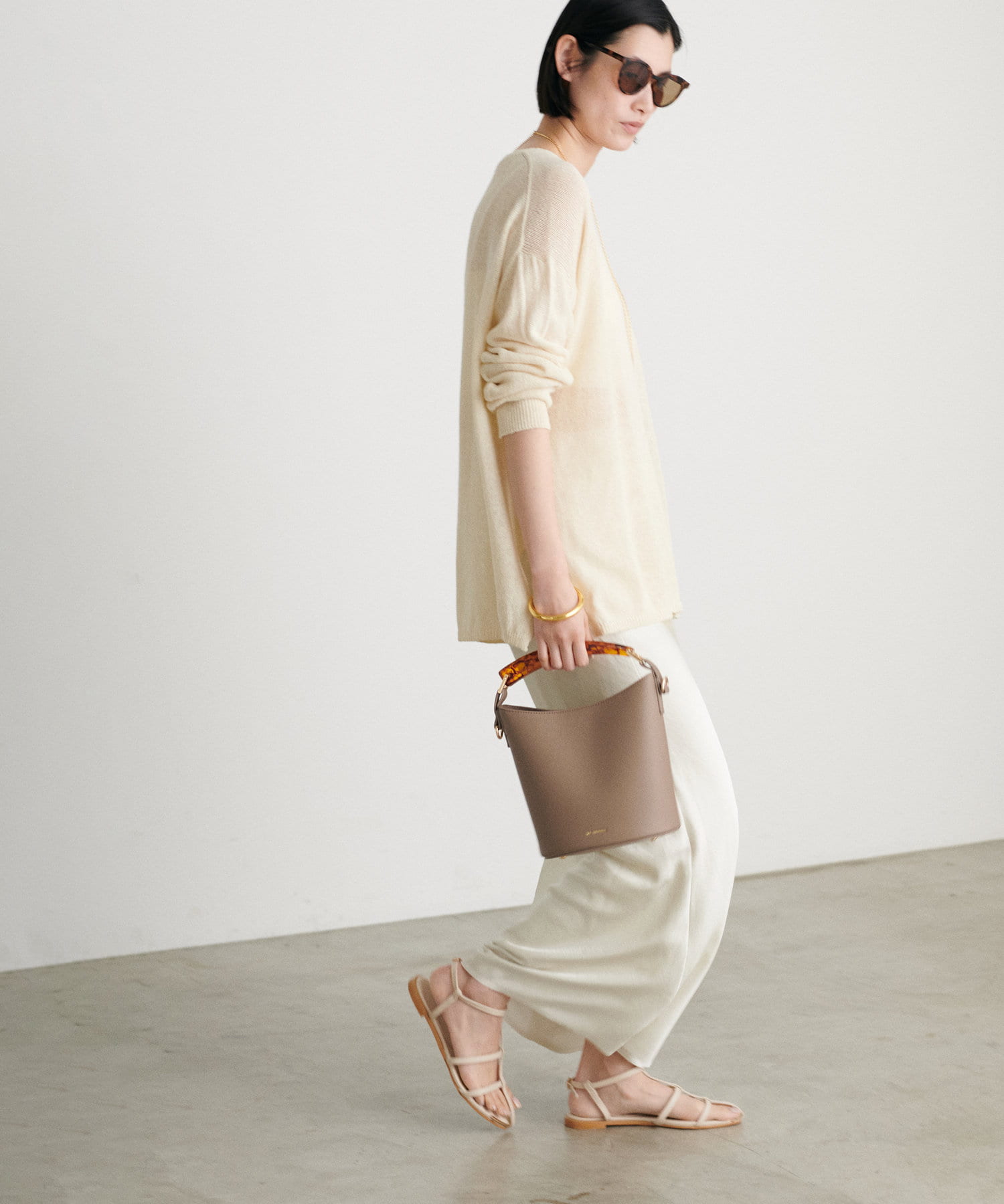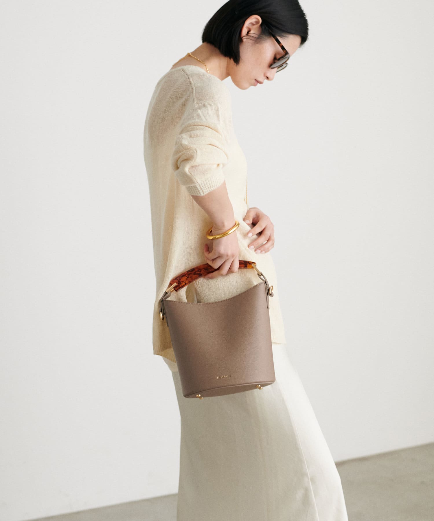 ハンドル部分の鼈甲が大人の上品さを纏うハンドバッグ。