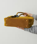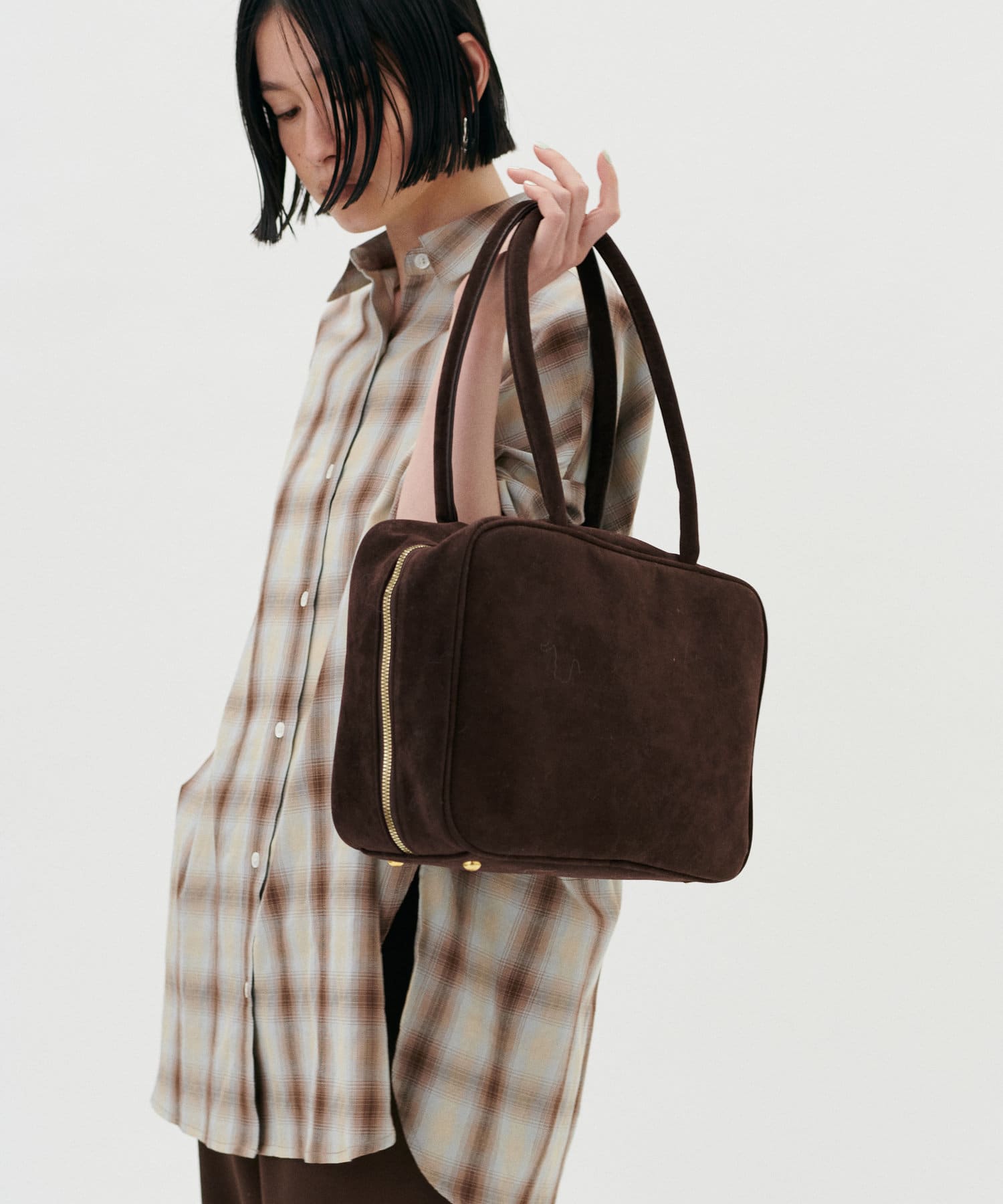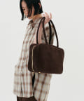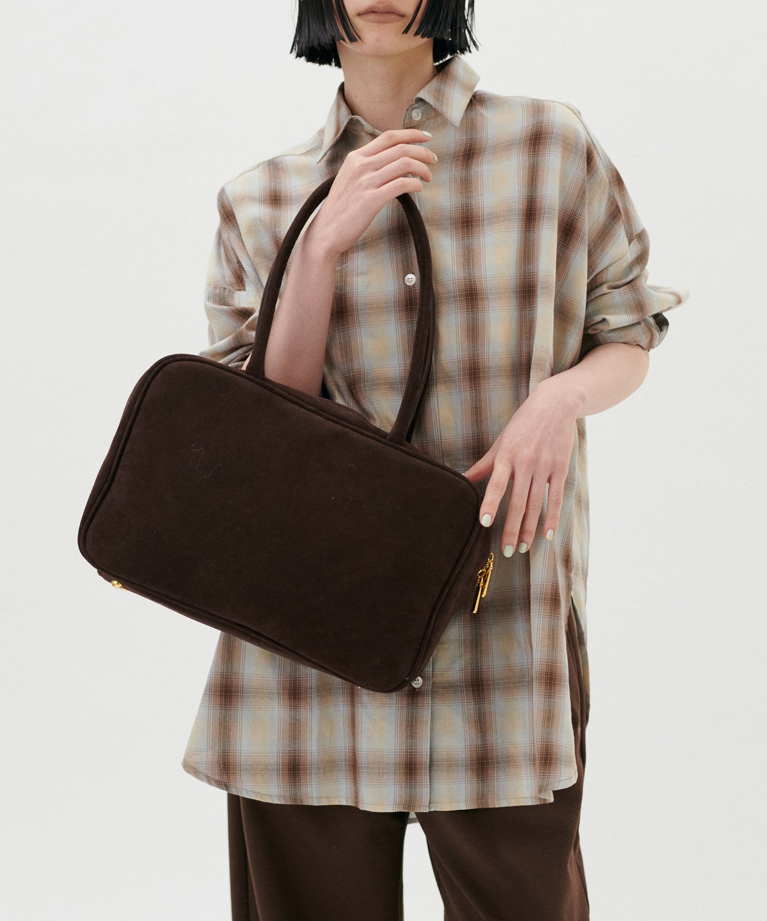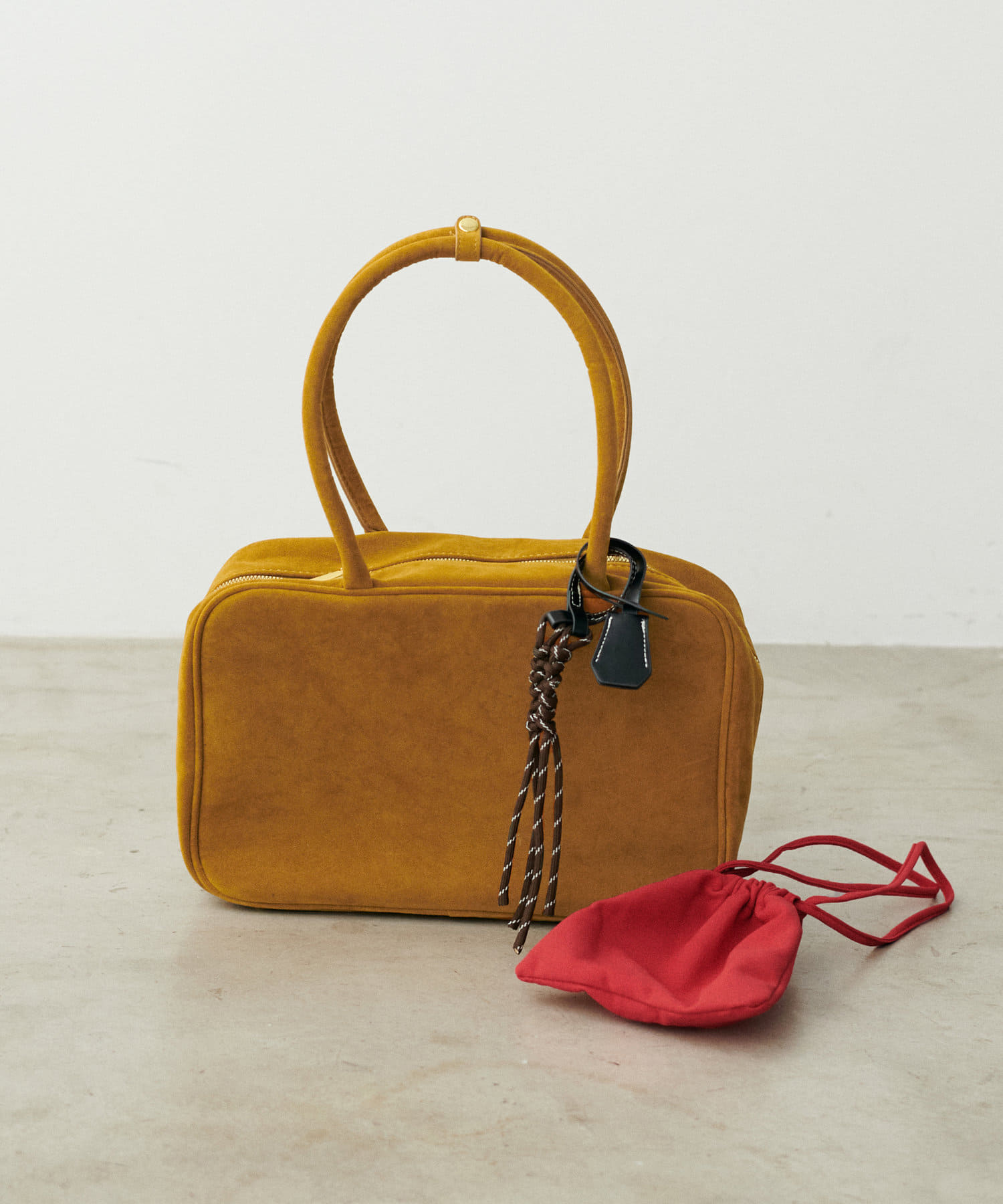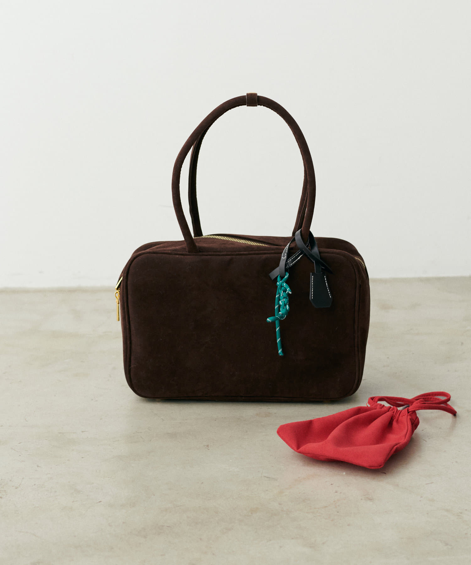 容量の大きいサイズ感のスエード風のハンドバッグ。