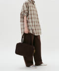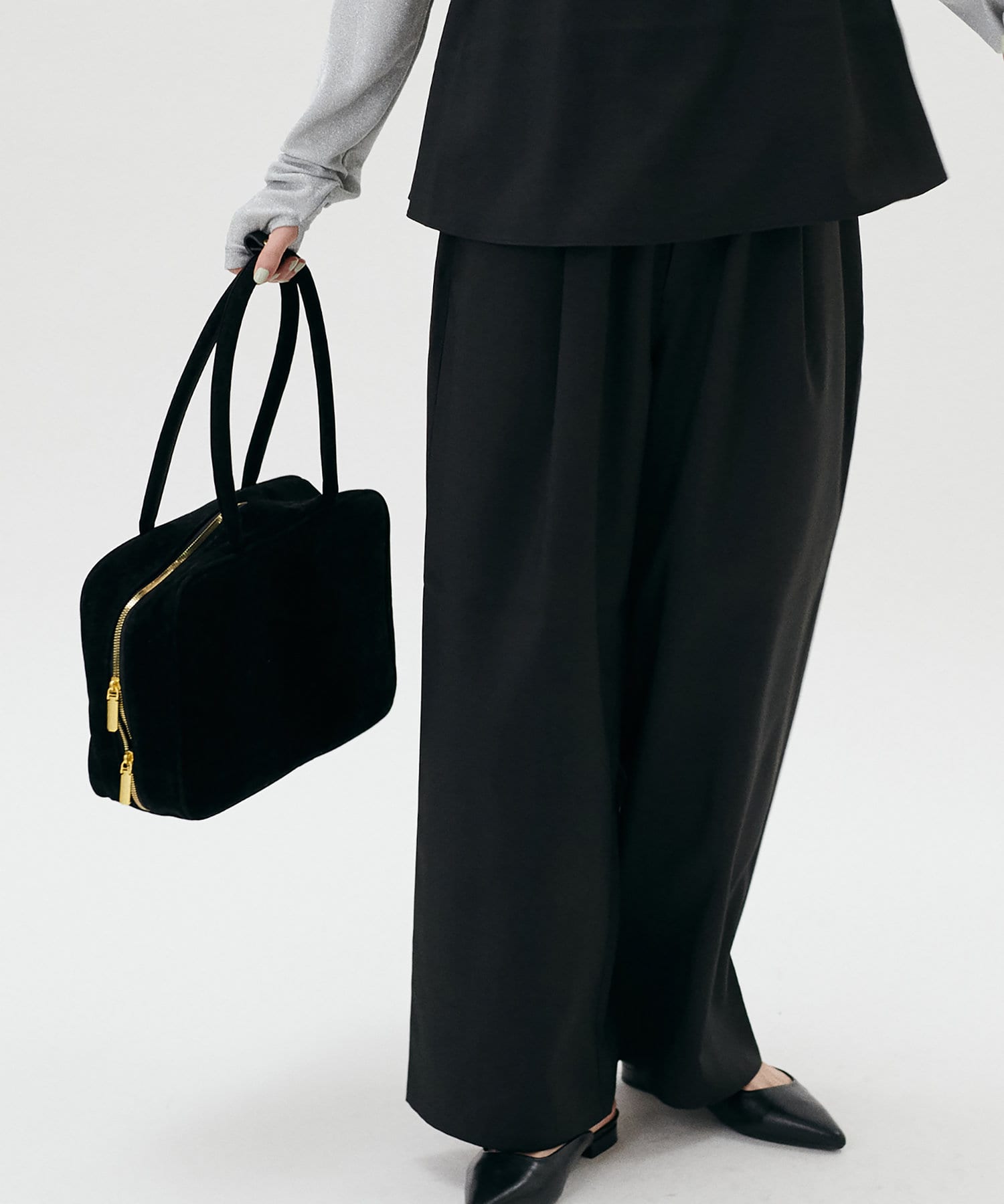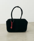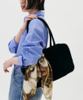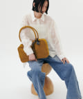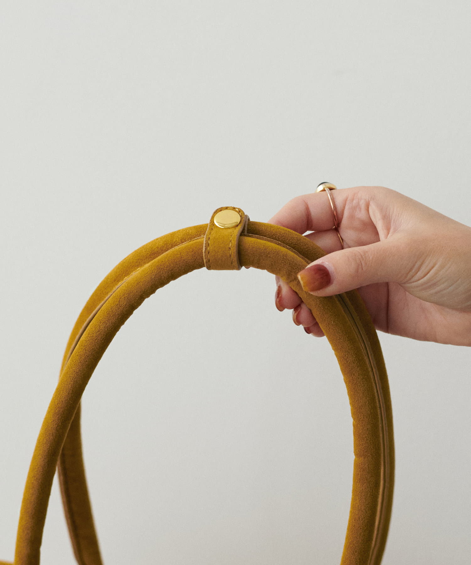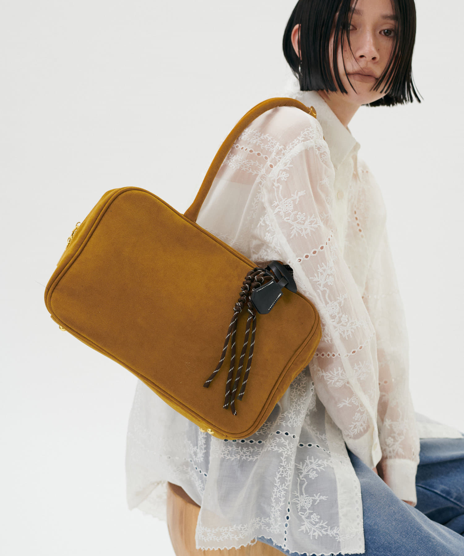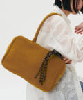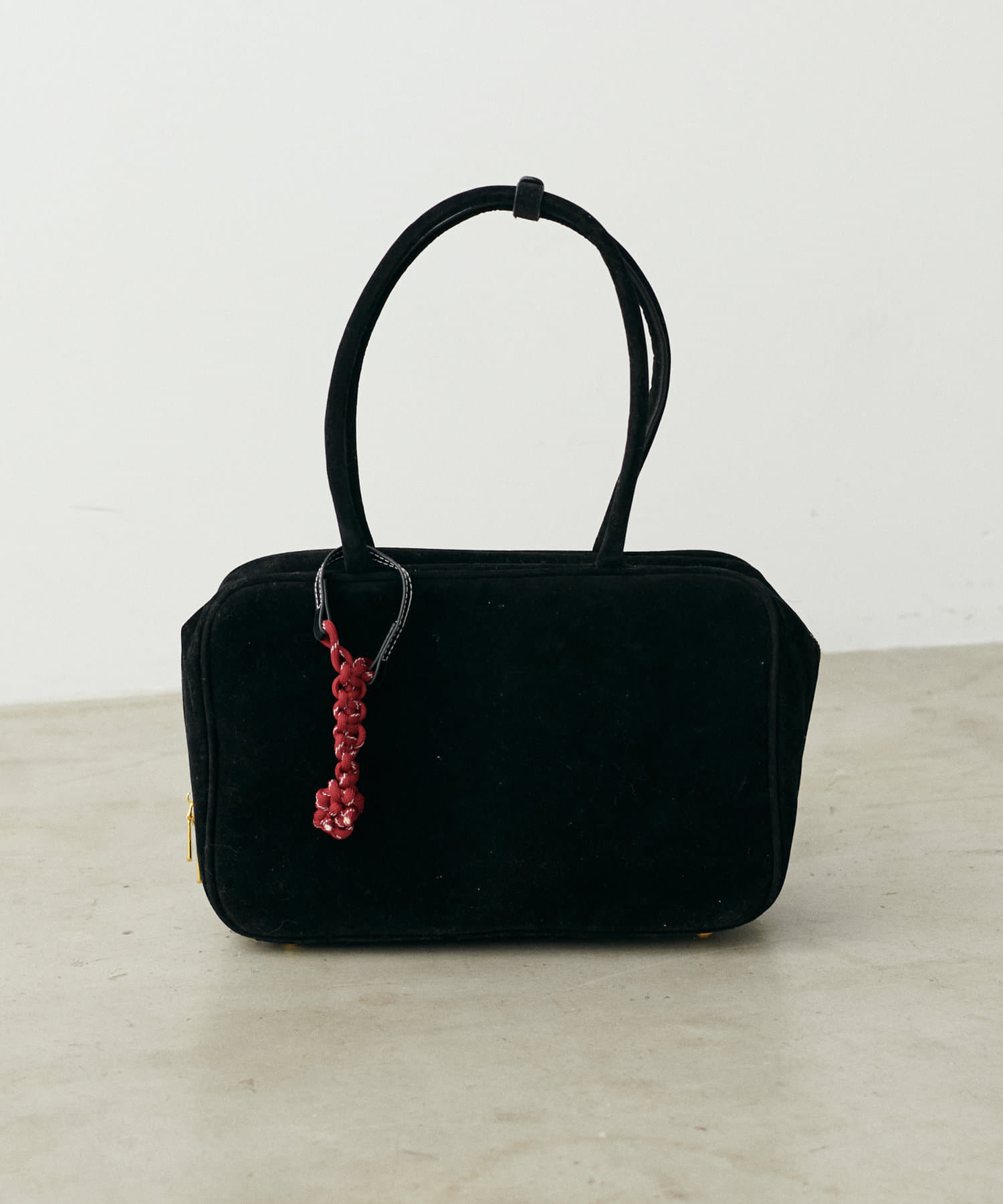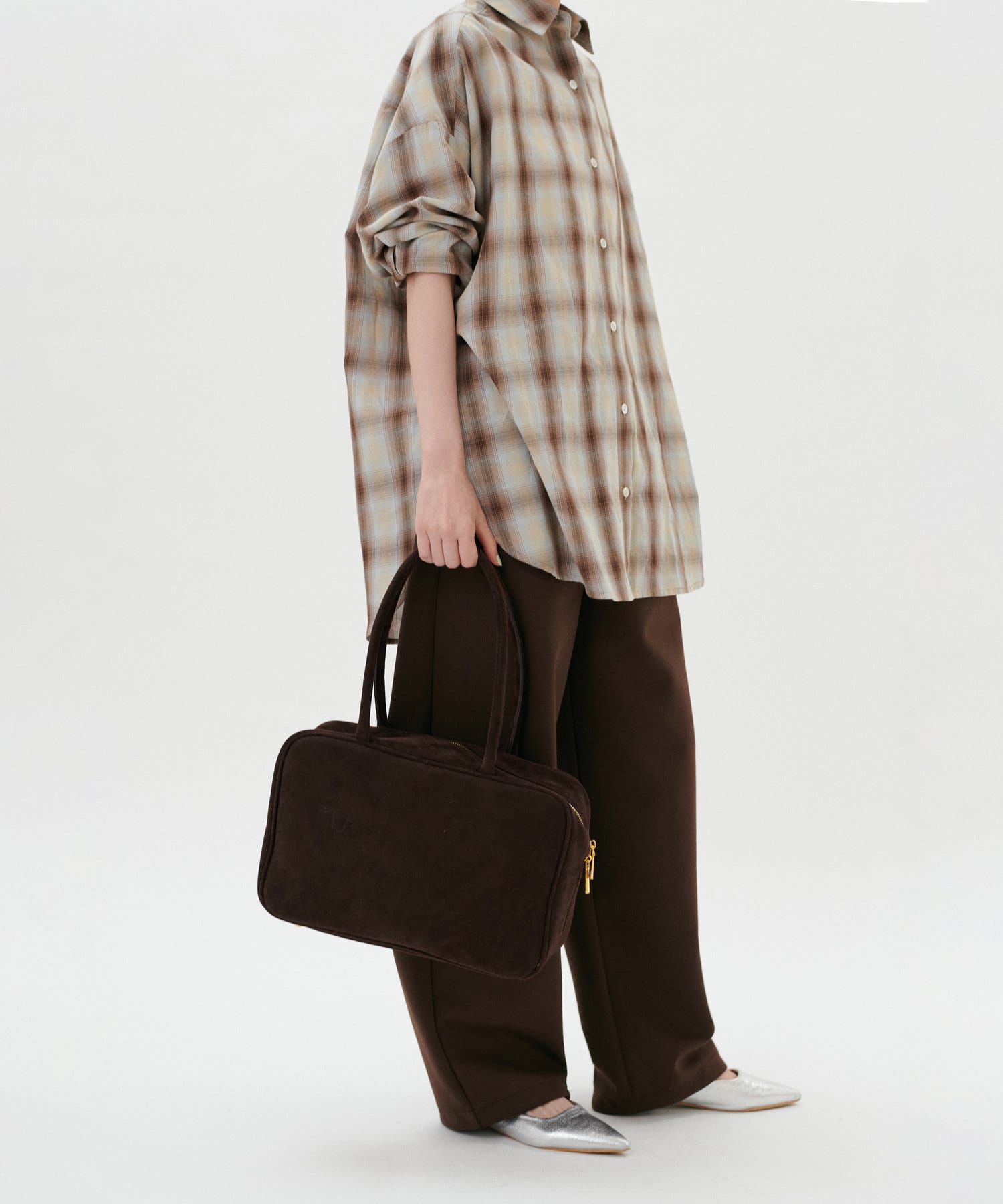 容量の大きいサイズ感のスエード風のハンドバッグ。
