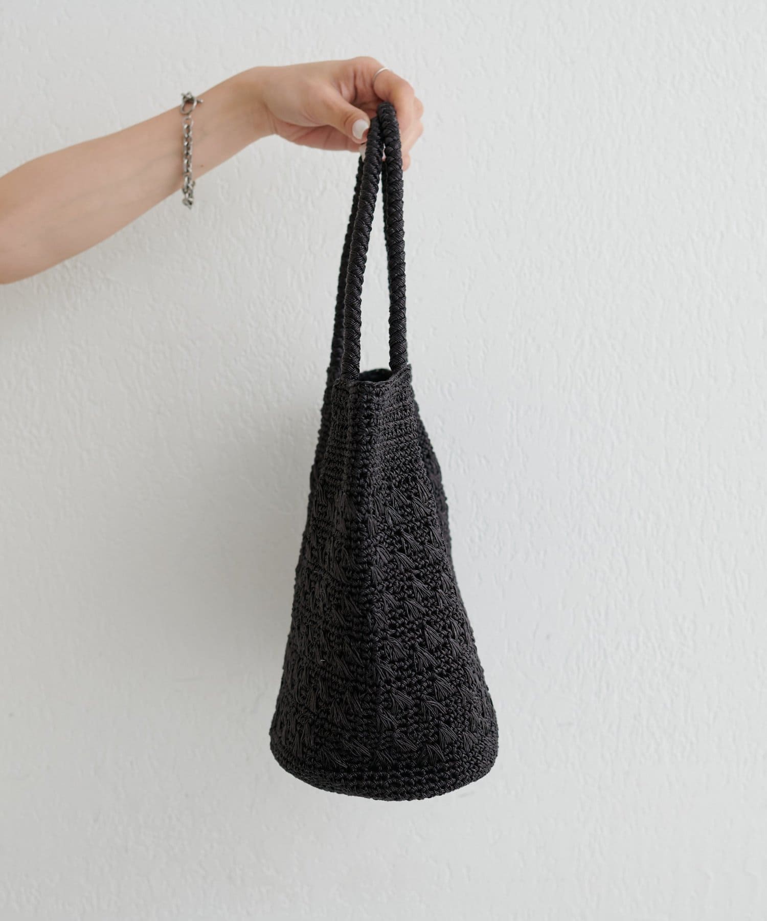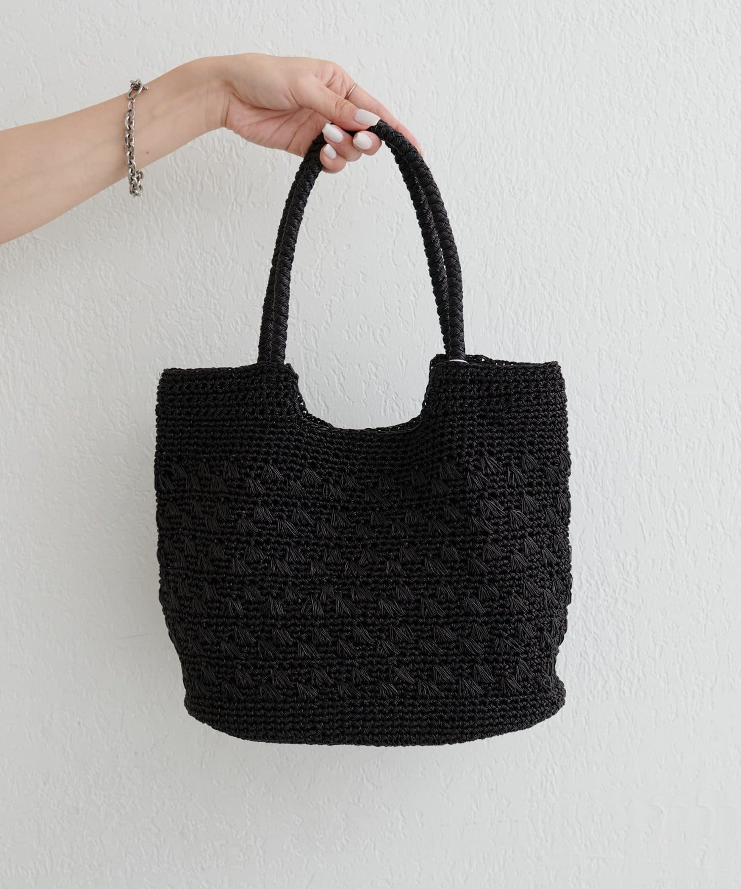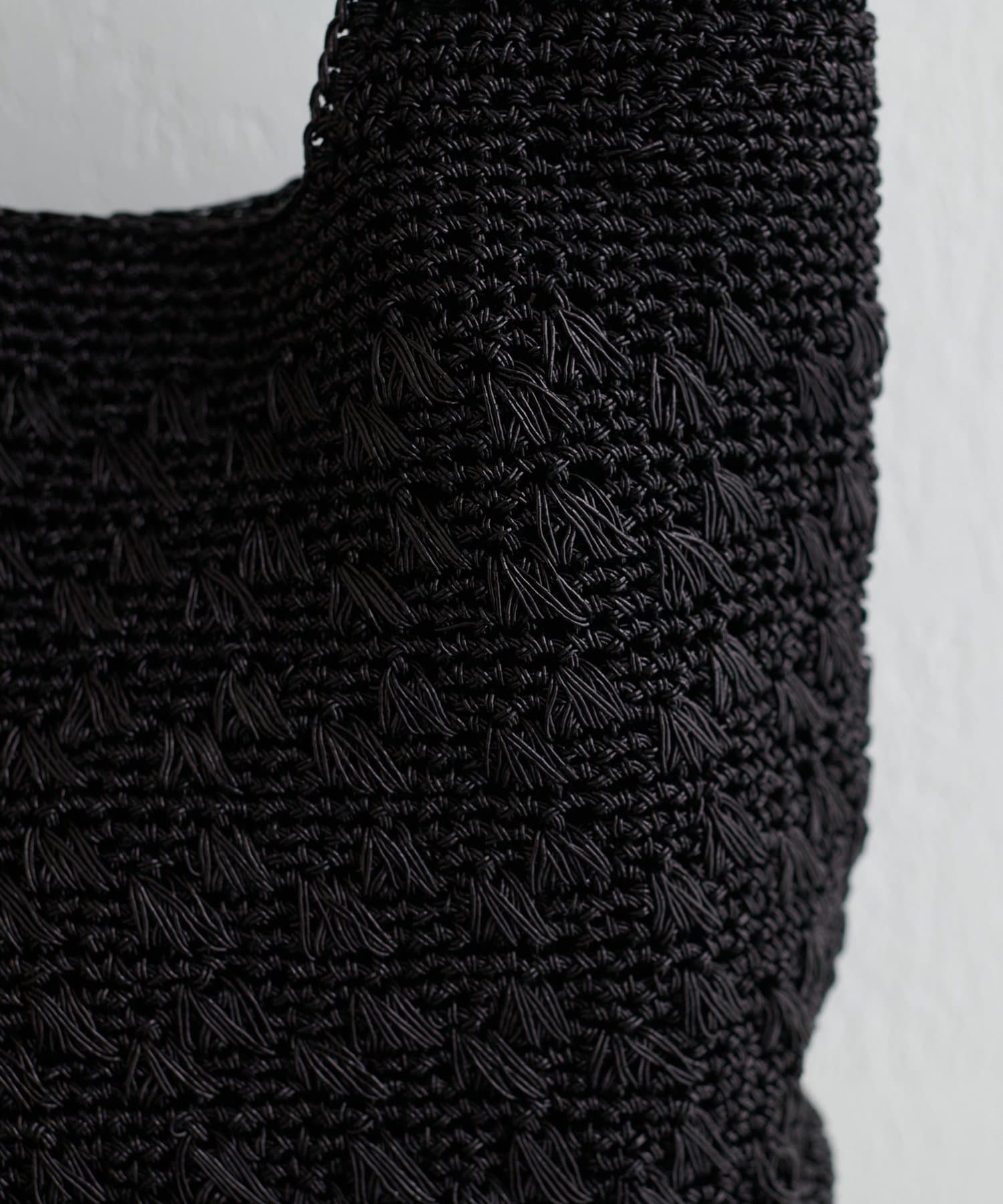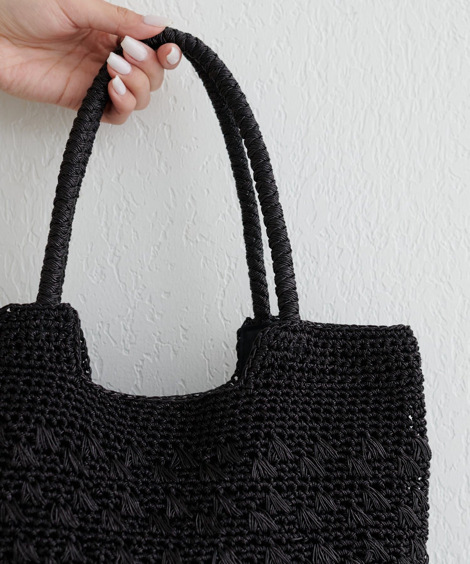 細やかな編み模様とメタリックな光沢が目を惹くコード編みトート。