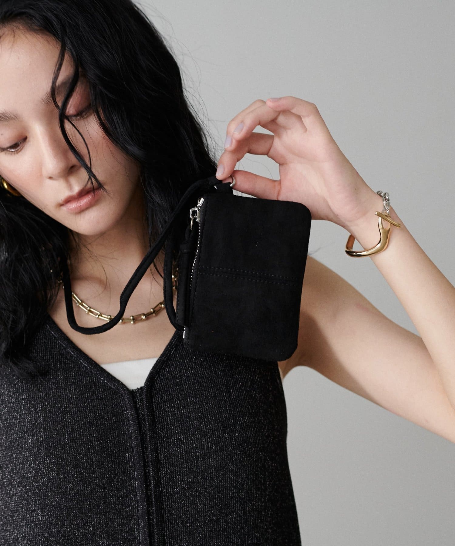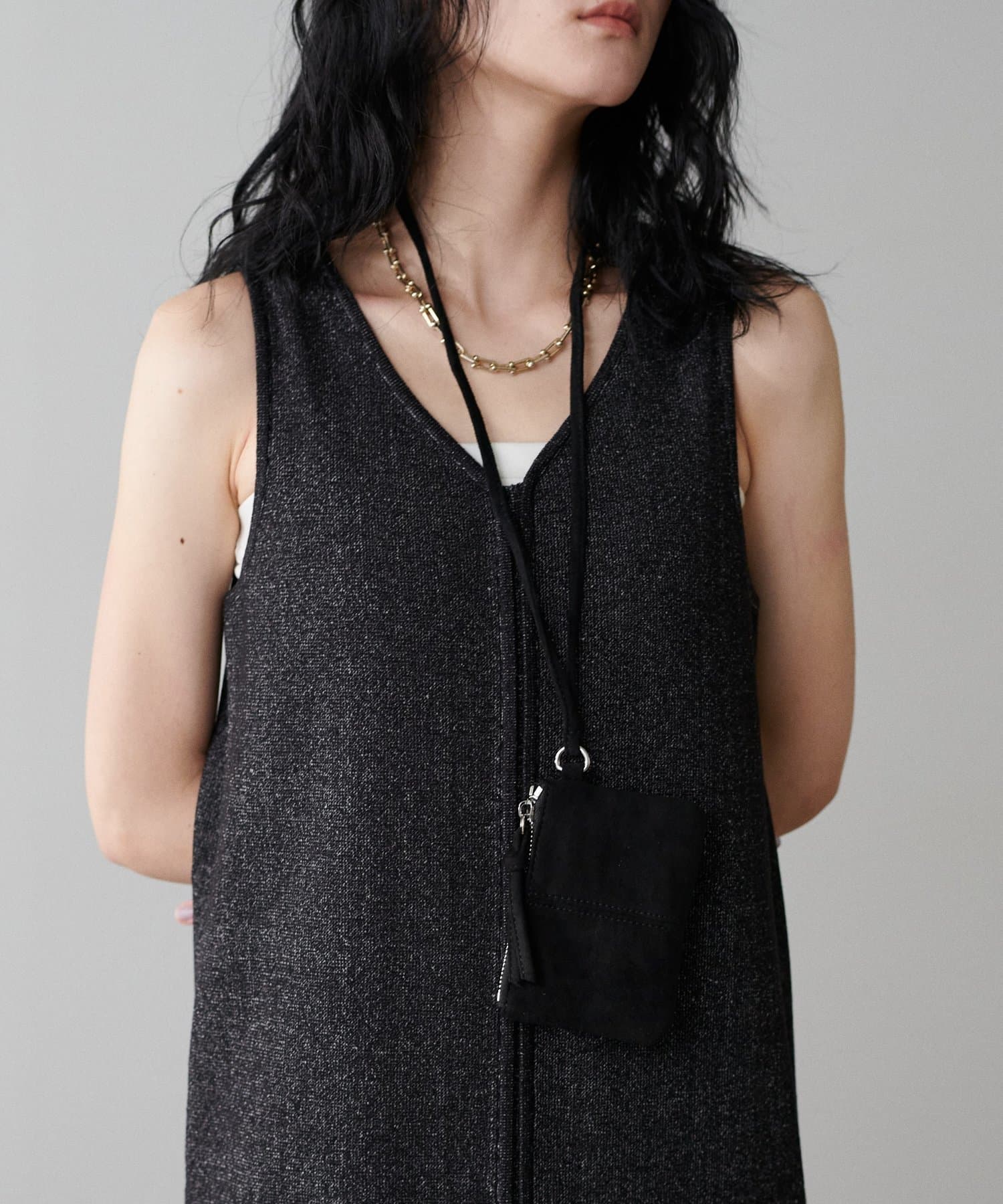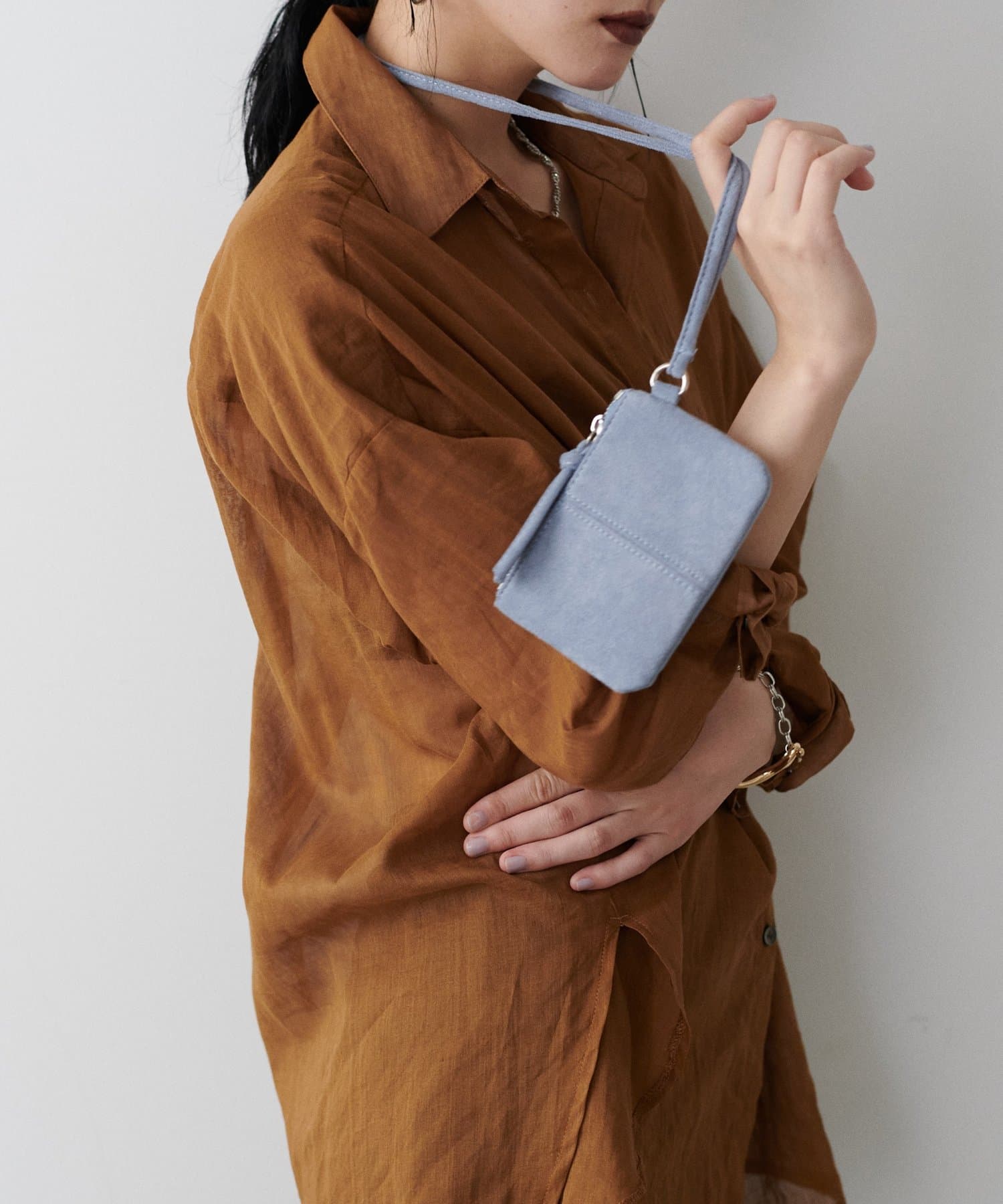 コーディネートのアクセントになるミニポシェット。