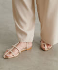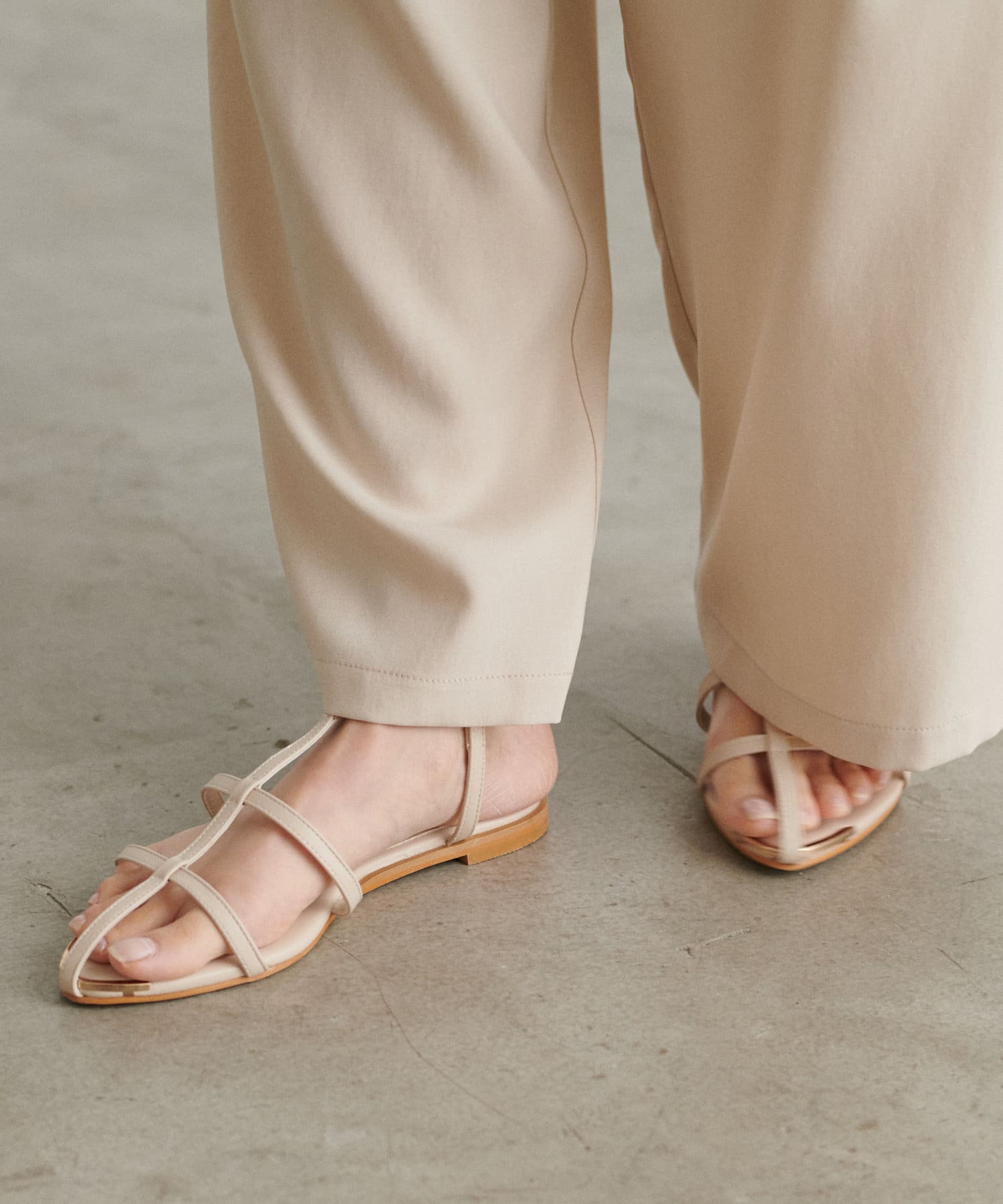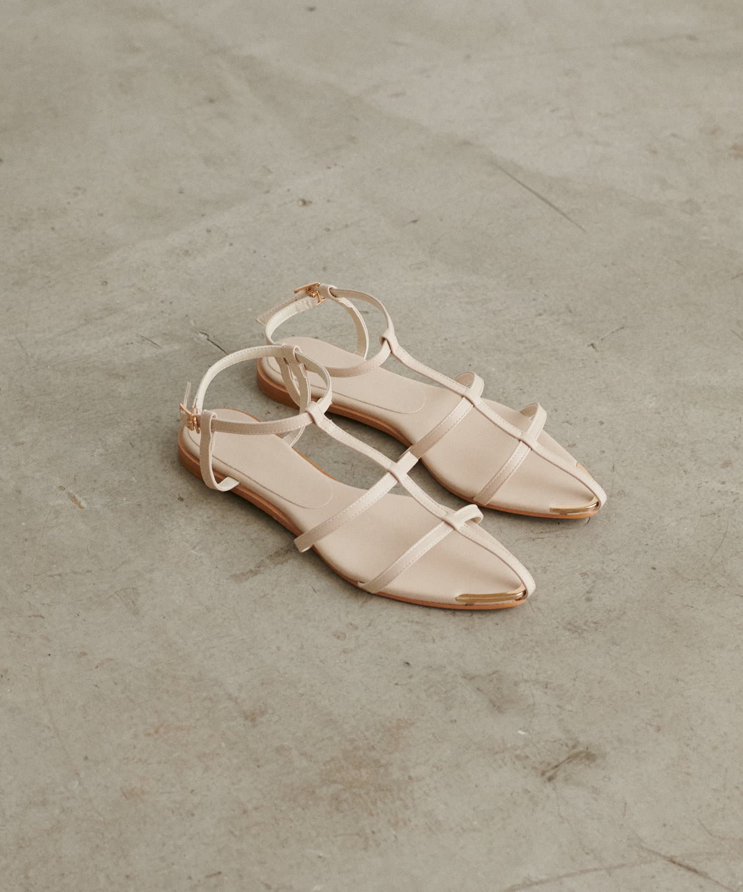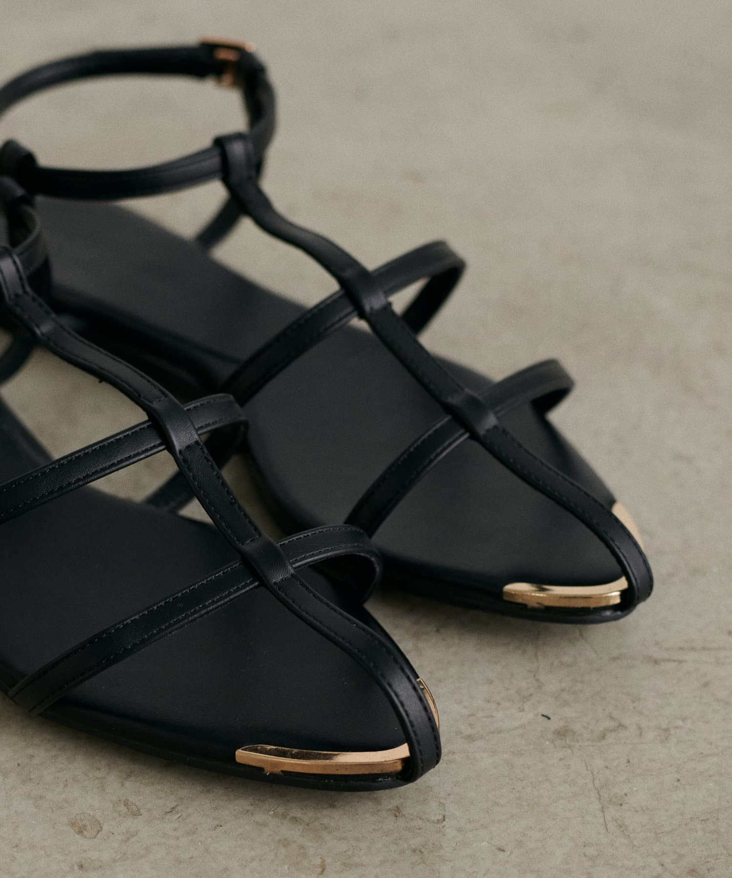上品な印象を纏うポインテッドトゥに、つま先に添えられたゴールドが