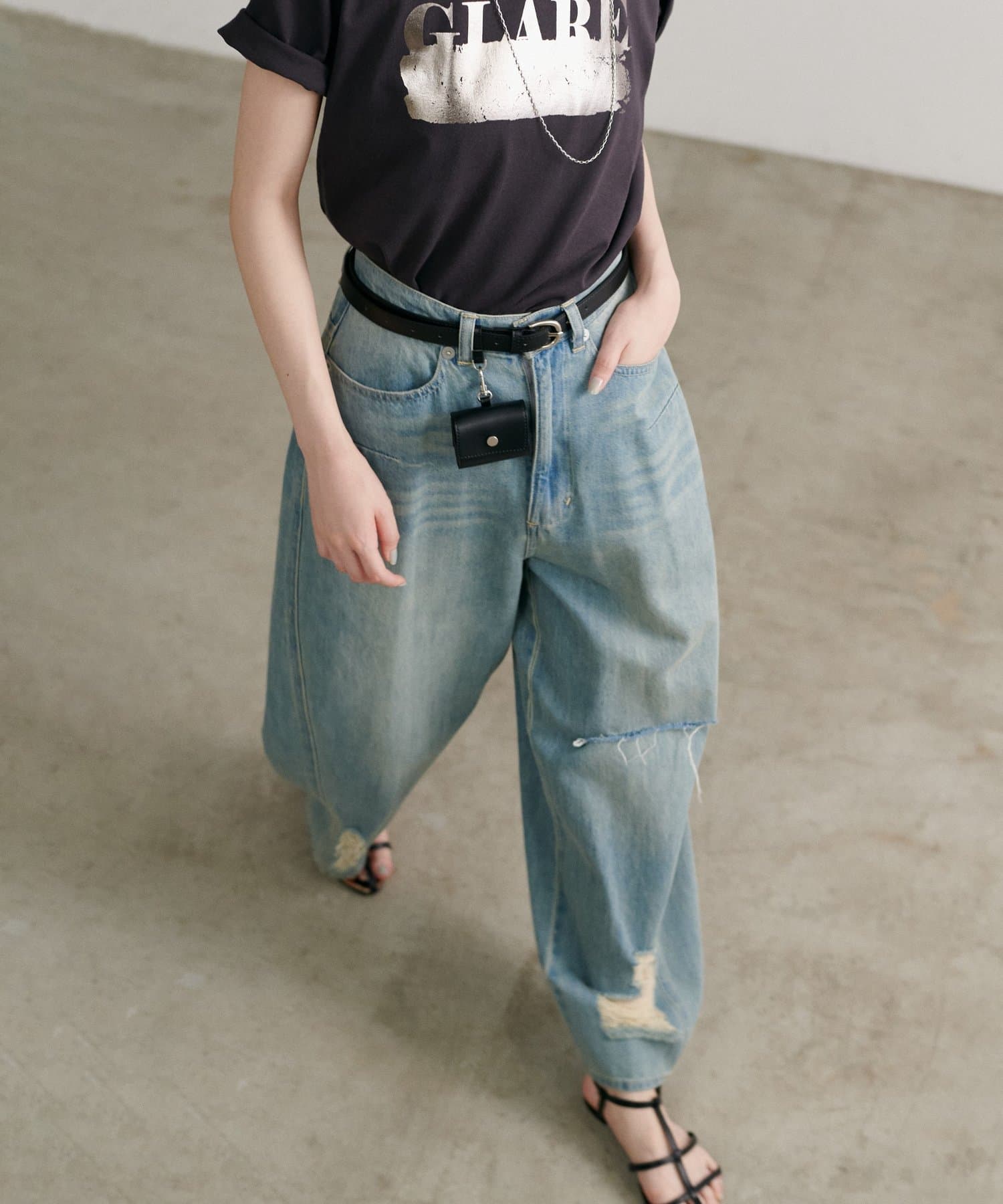 スタイリングのアクセントになるチビバッグ付きベルト。