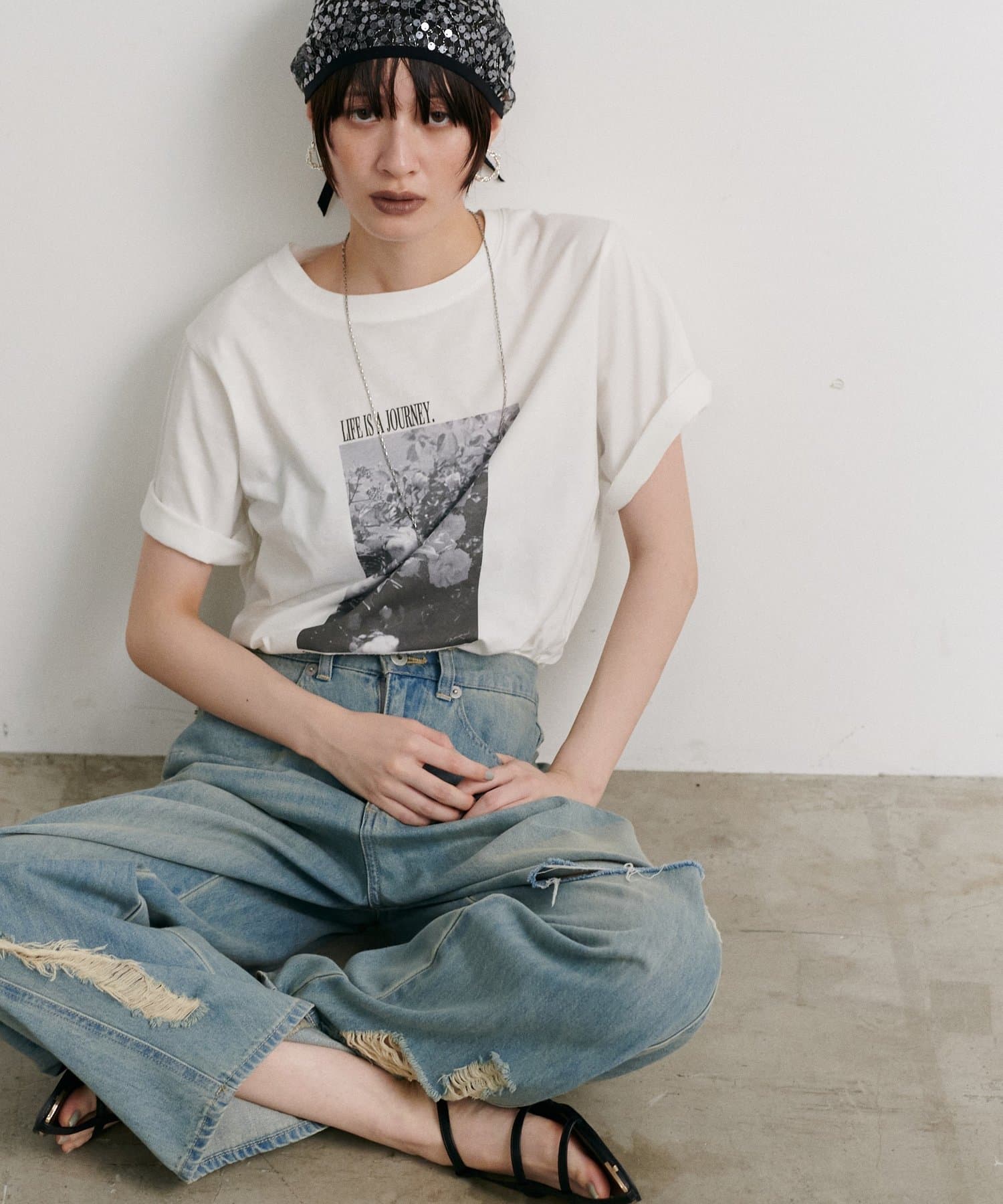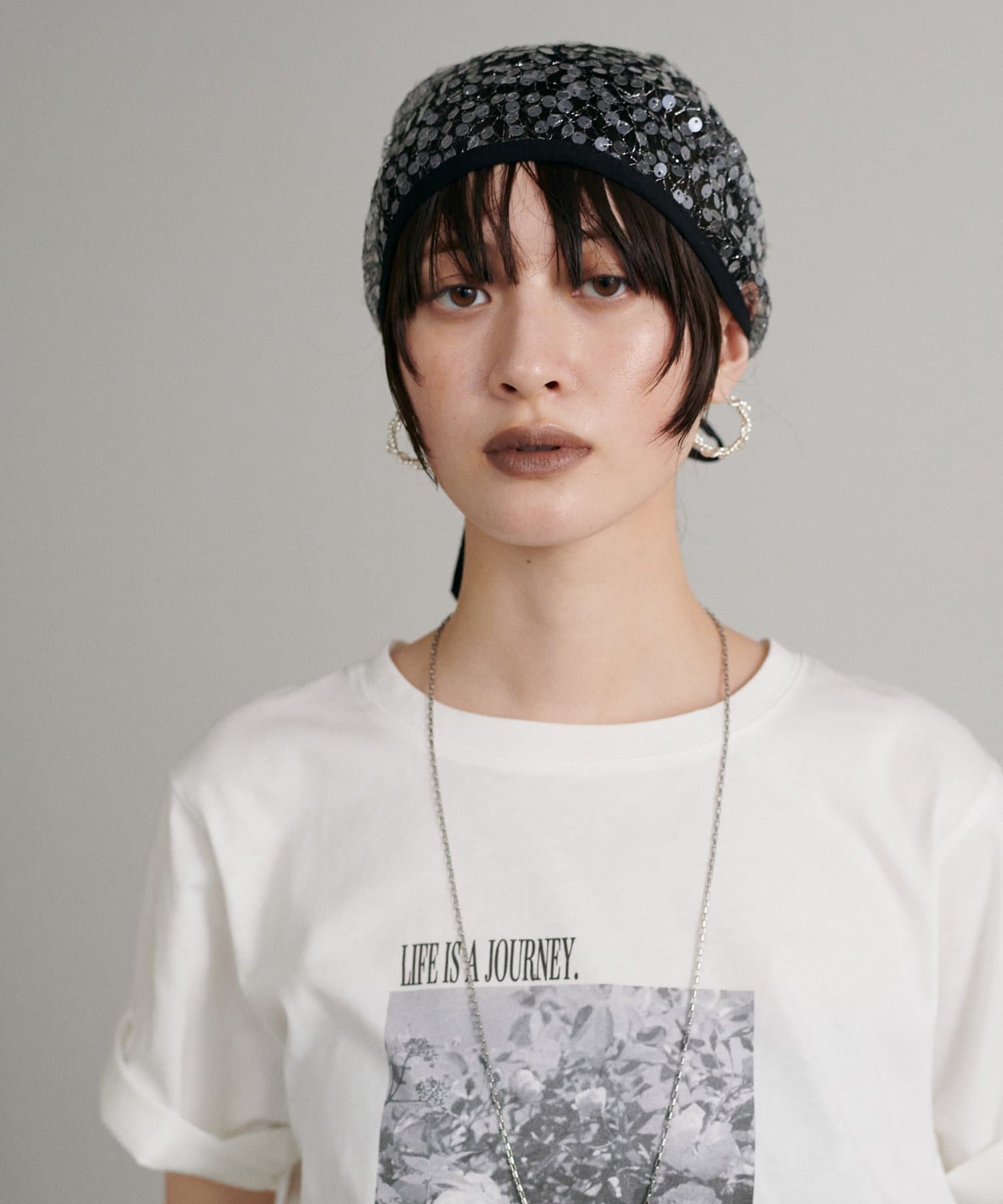 動くたびに光るスパンコールでエッジの効いたコーディネートに。