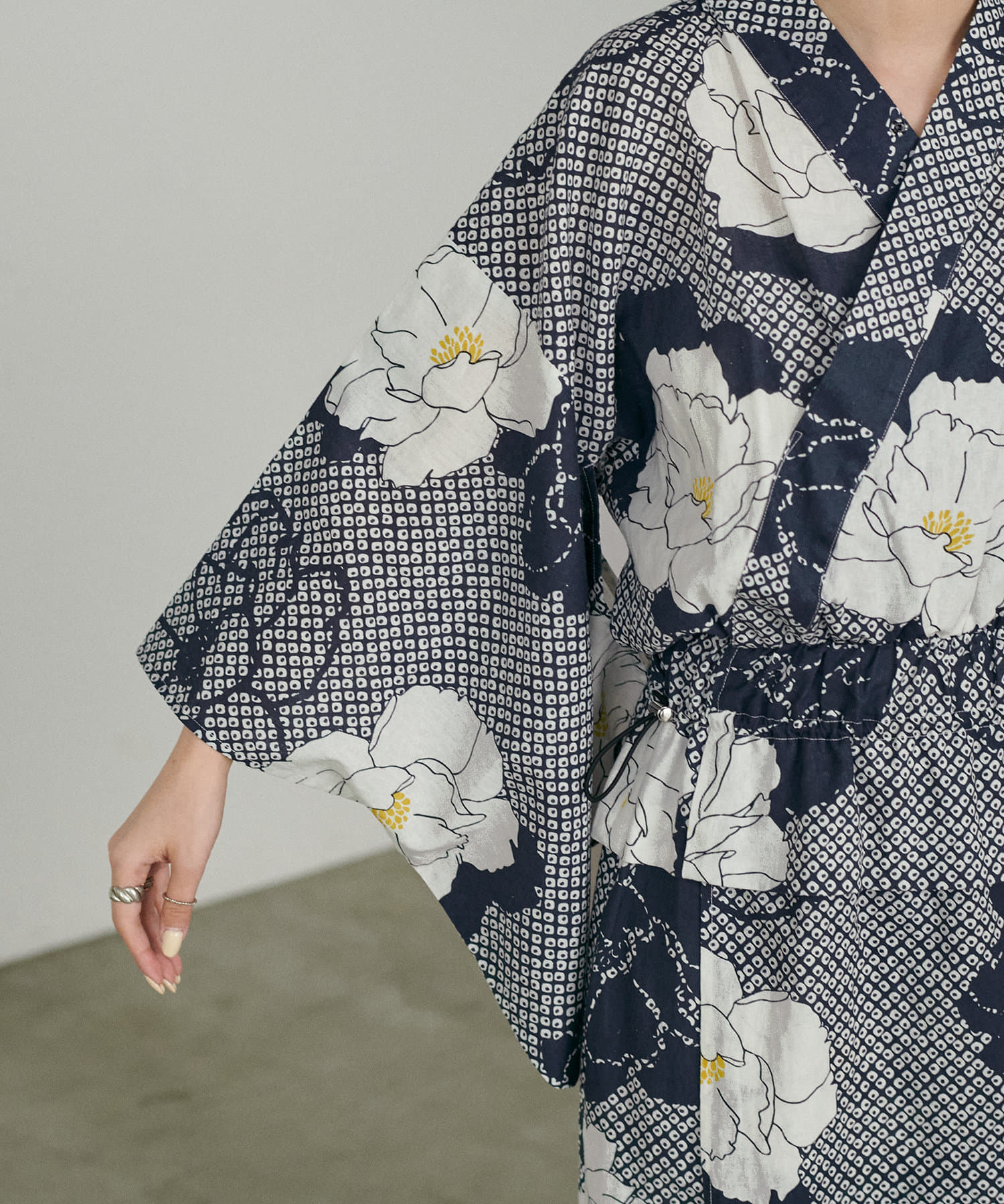 腰のドロストで丈感、フィット感の調節が可能で、おはしょりもきれいに仕上がります。
