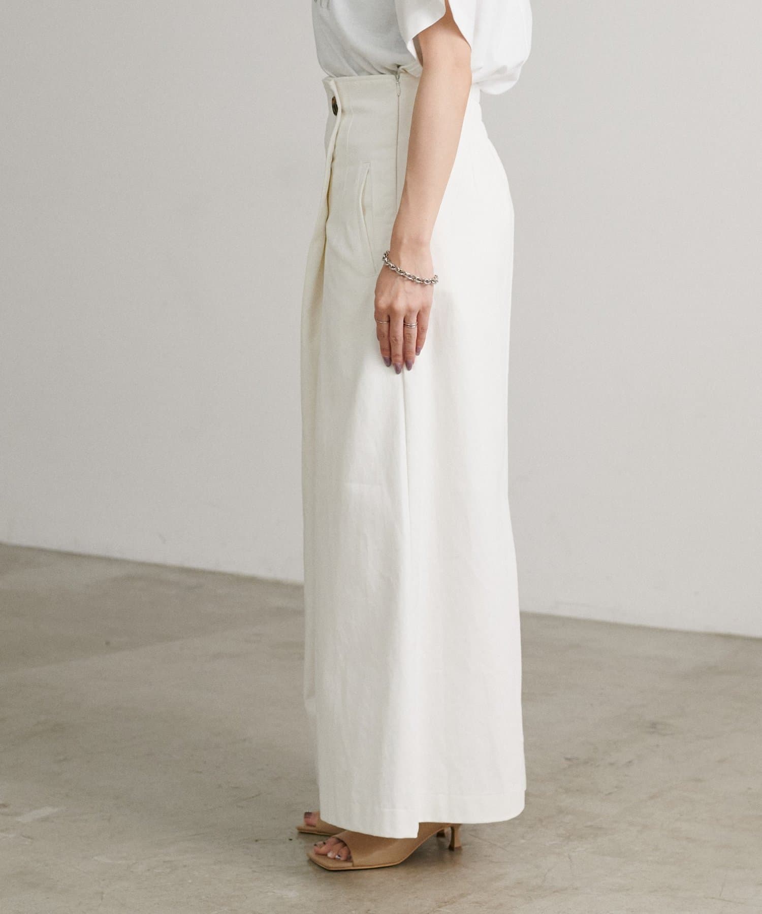一見シンプルながらも、アシンメトリーなタックが奥行きと立体感をプラス。