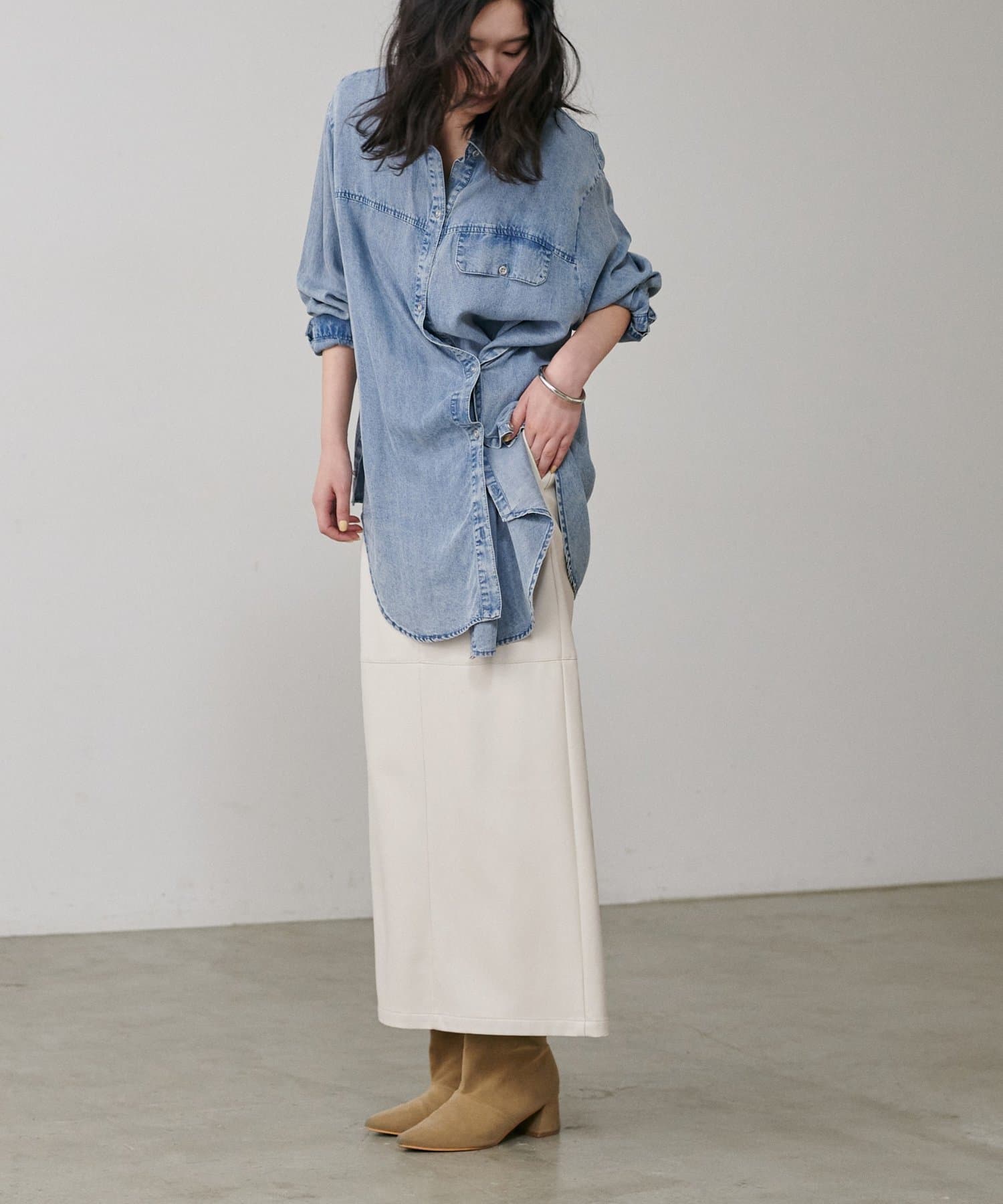 下半身をすっきりと見せてくれるIラインシルエットなので