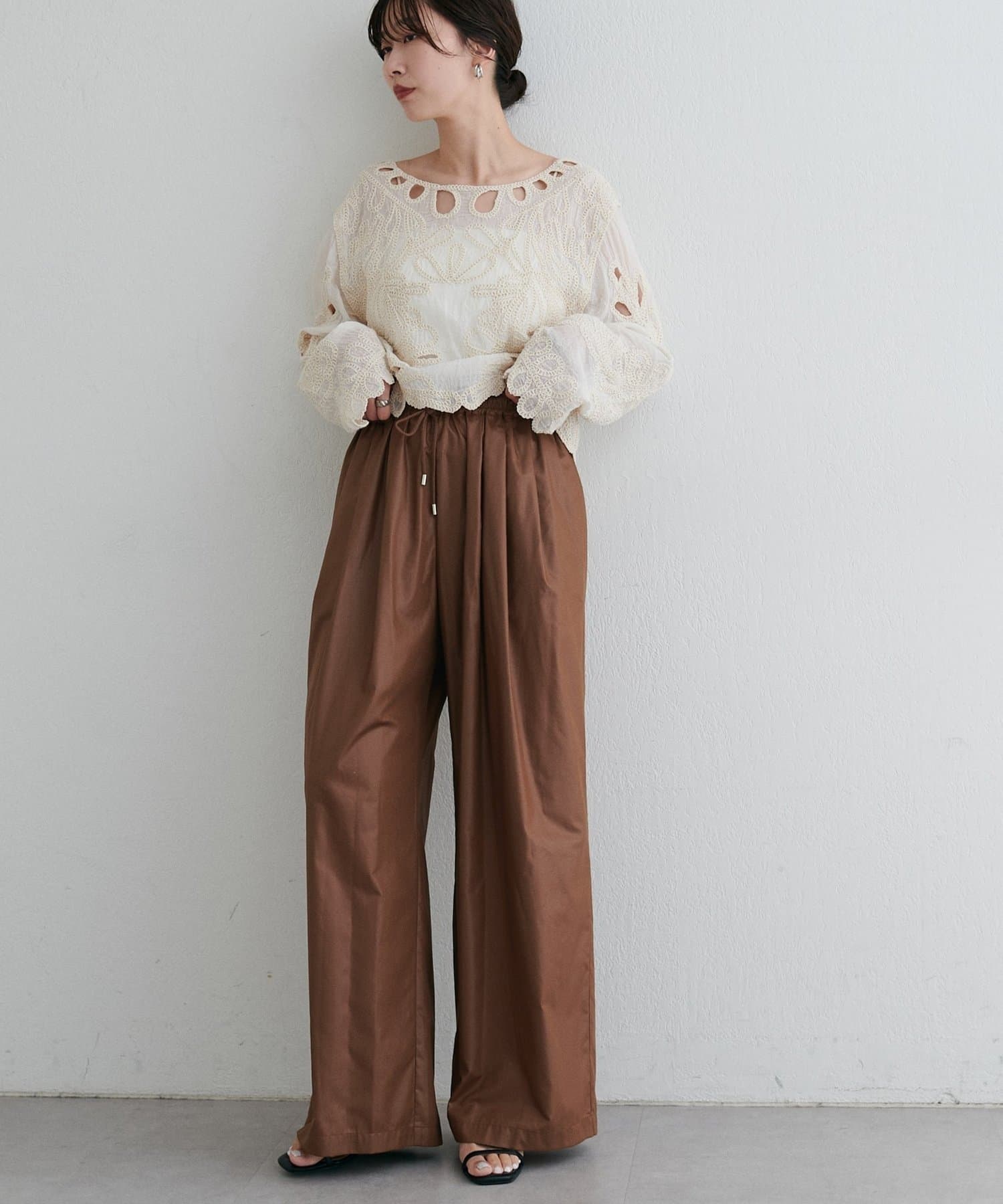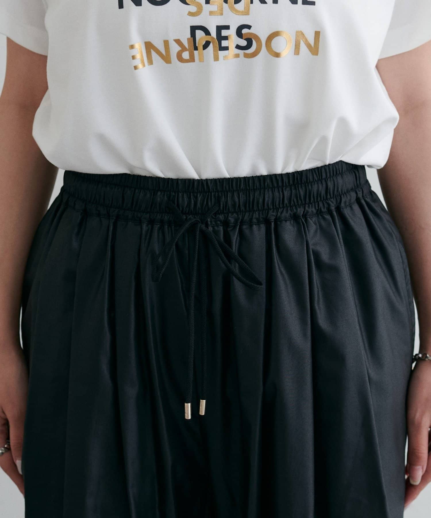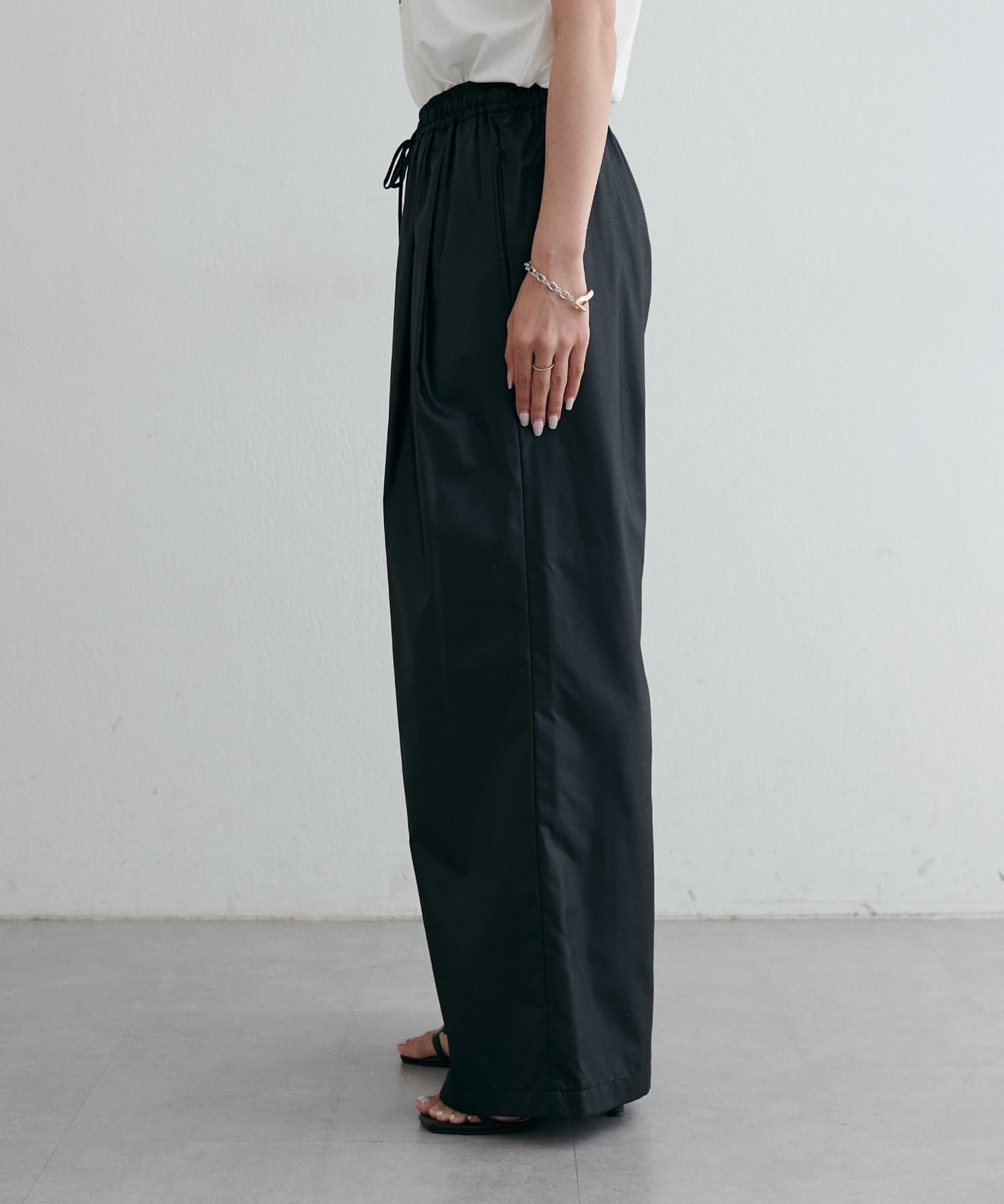ウエストは総ゴムに加えドロスト付きで、調節が可能です。