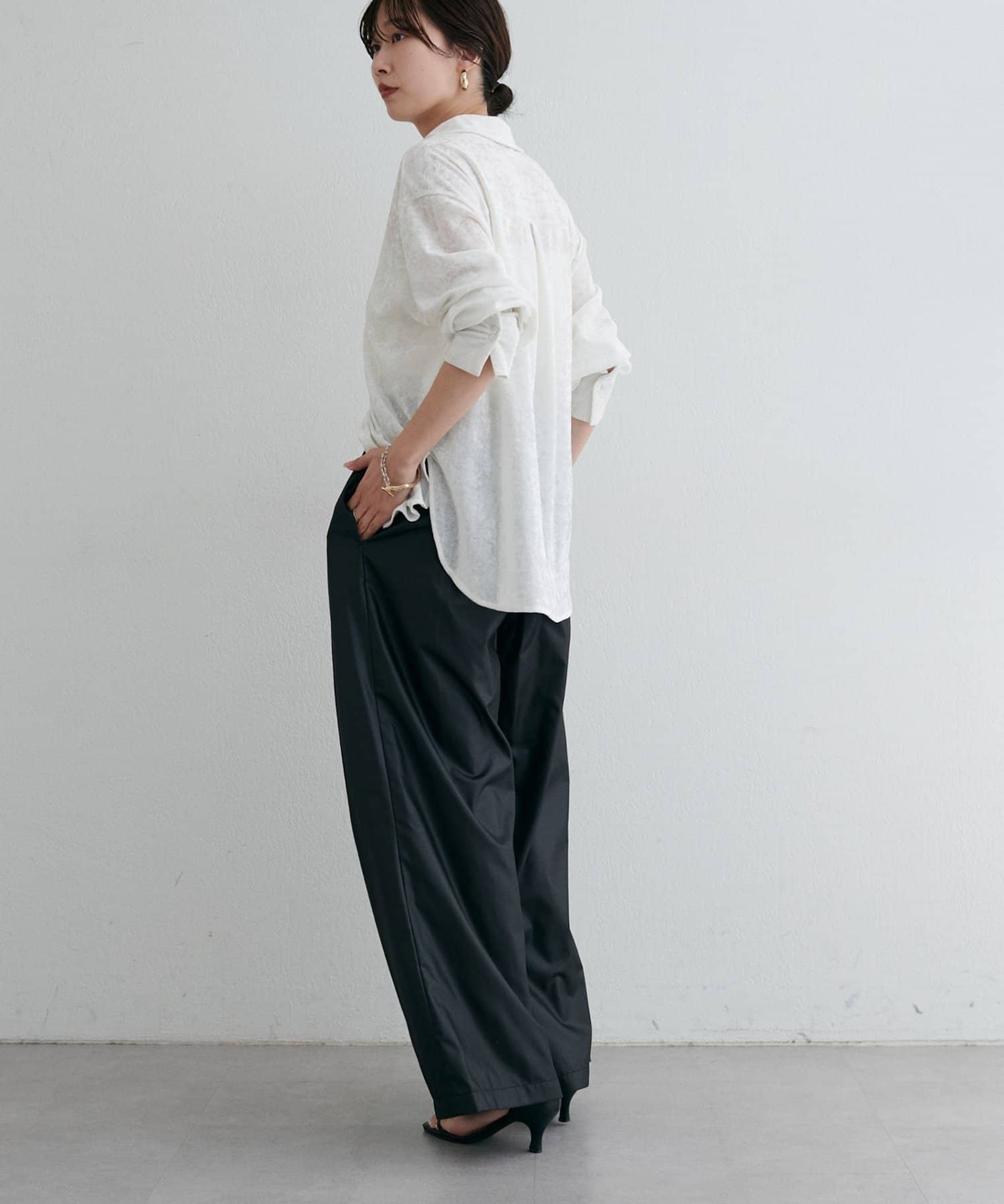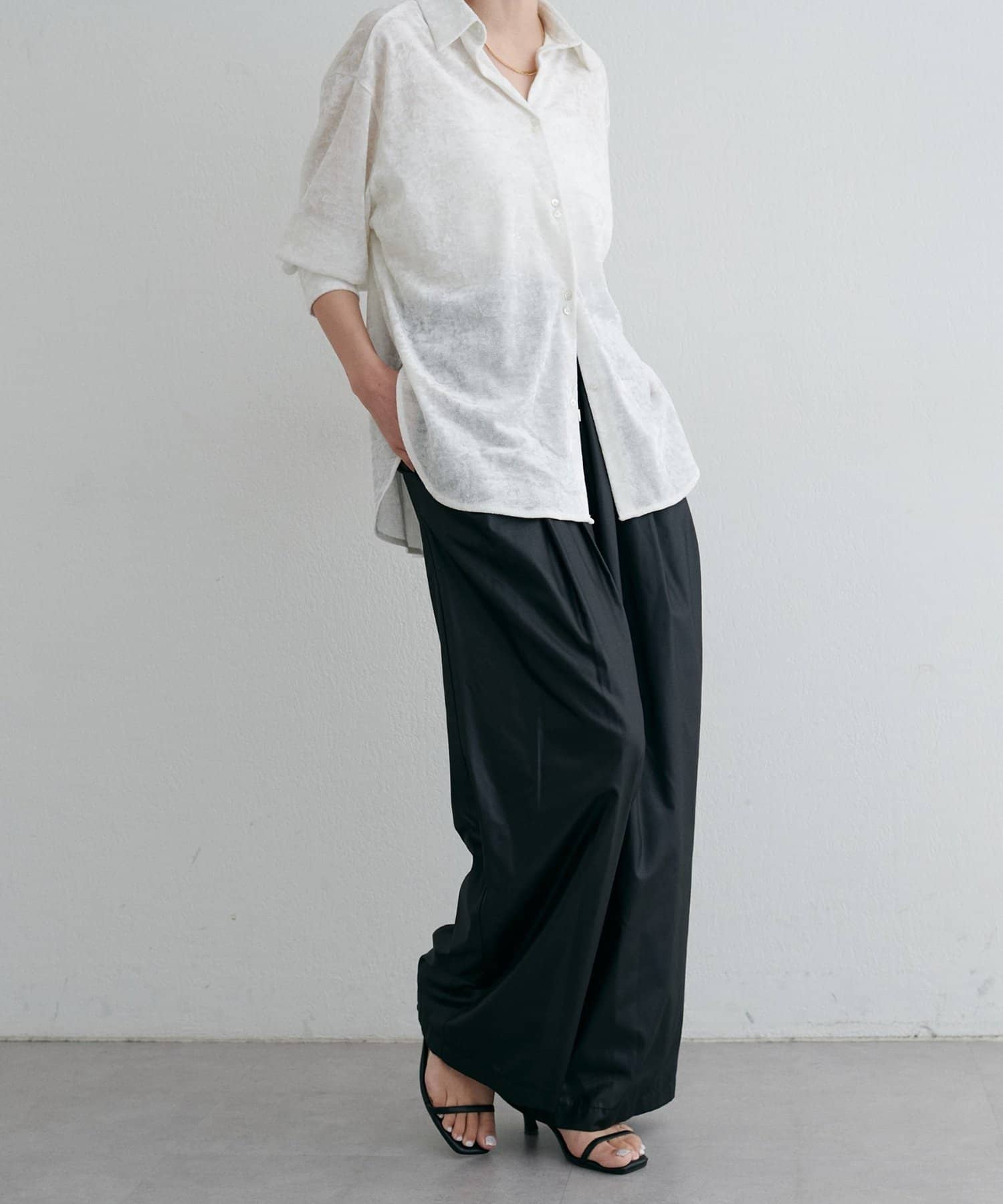 レザーライクな生地感を生かした着こなしがおすすめです。