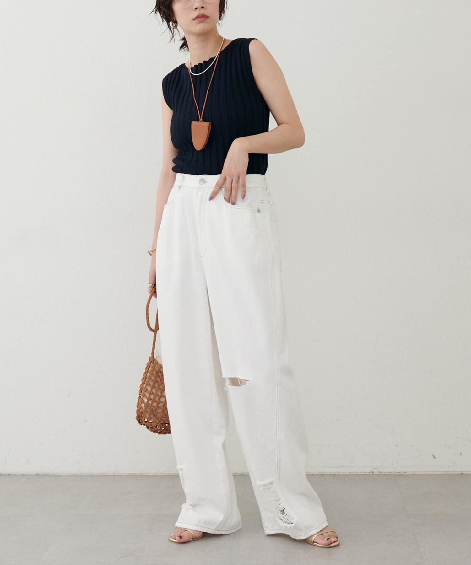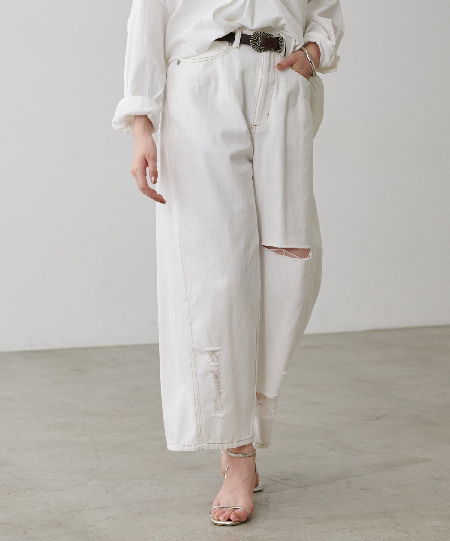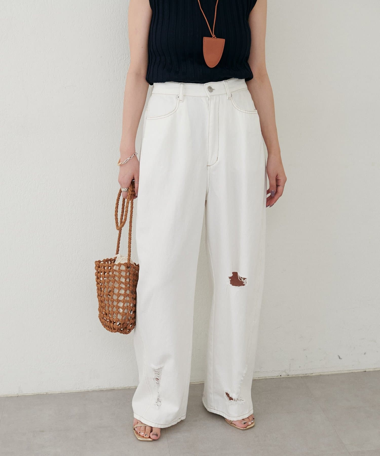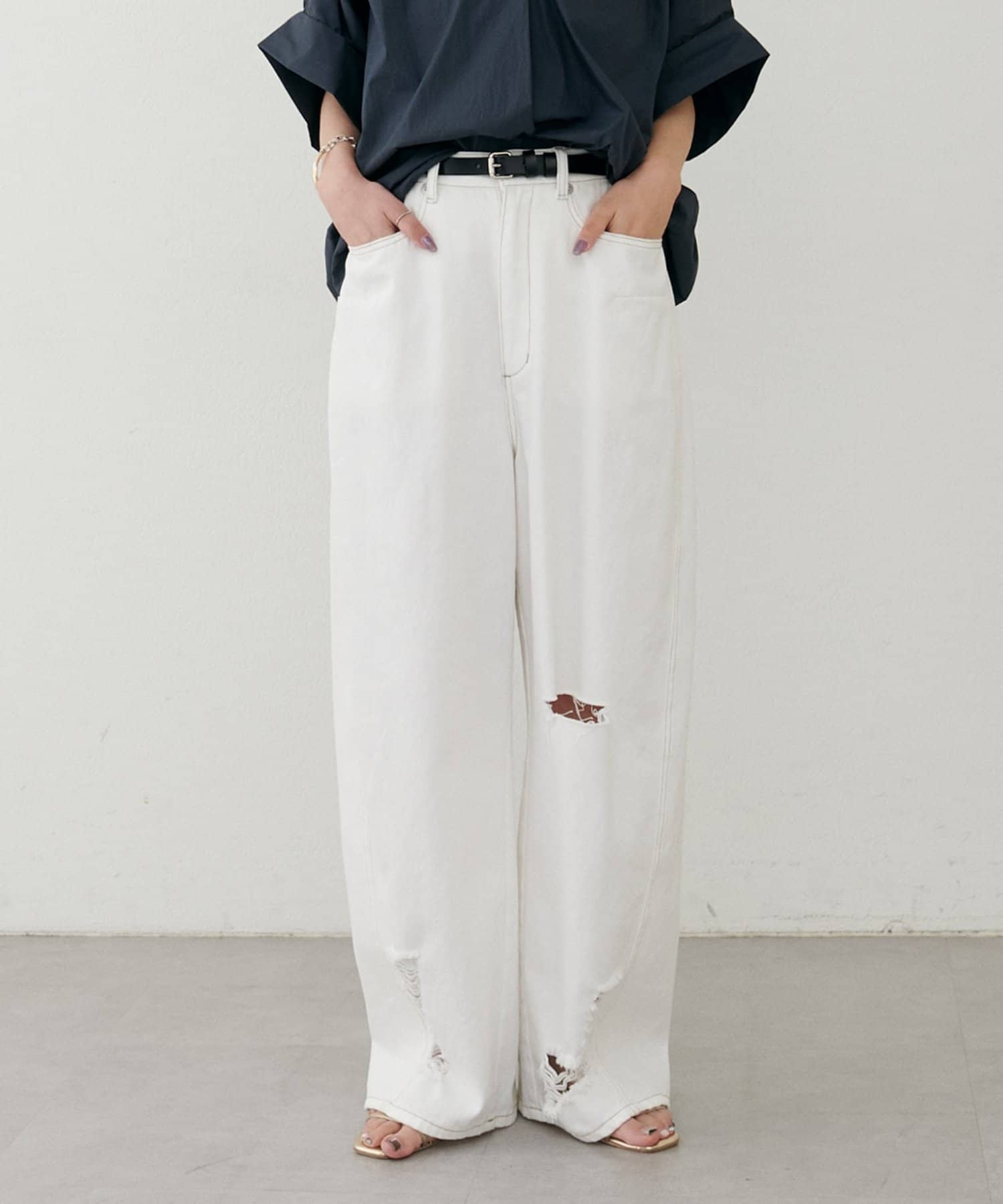 特徴的なカーブシルエットは、穿くだけでトレンド感のある着こなしに。