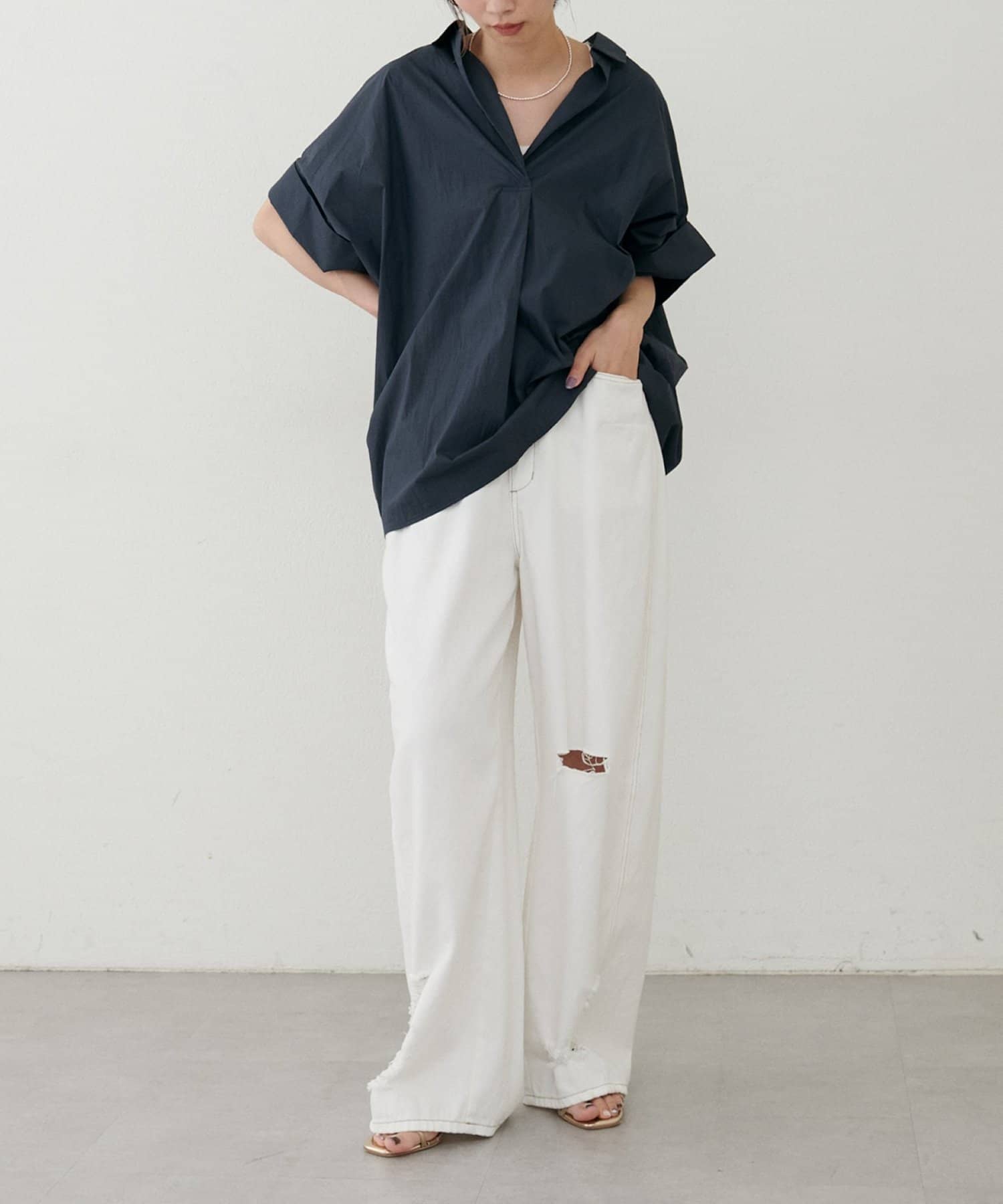 ゆったりとしたサイズ感なので、ルーズに着こなしていただくのがおすすめです。