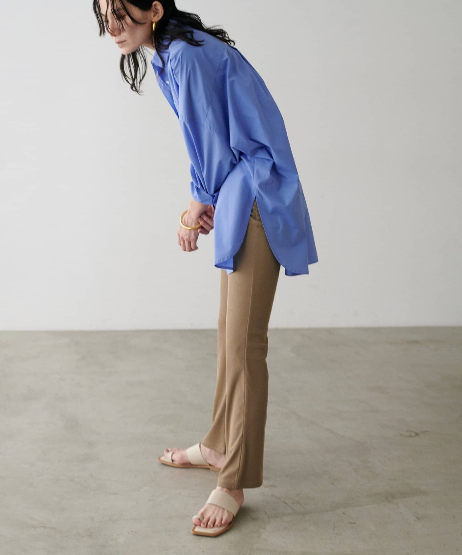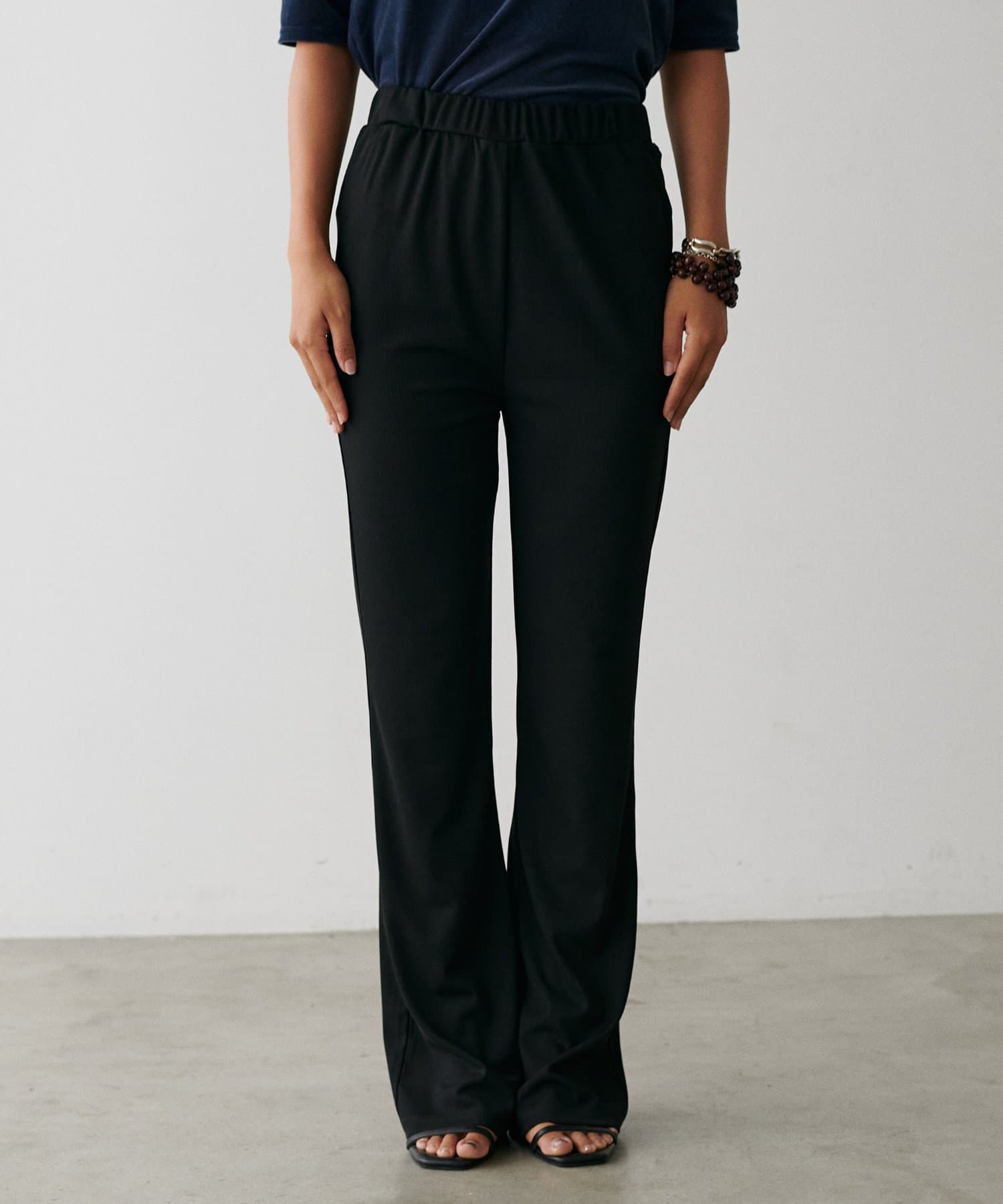 程よくフィットしながらも、脚のラインを美しく見せてくれる細身のリブパンツ。