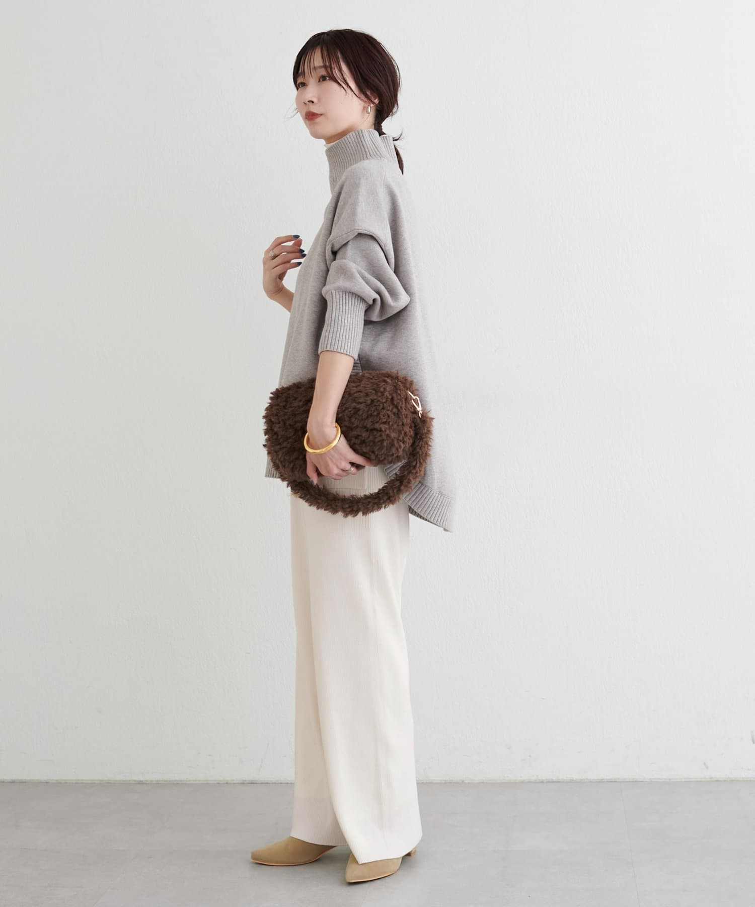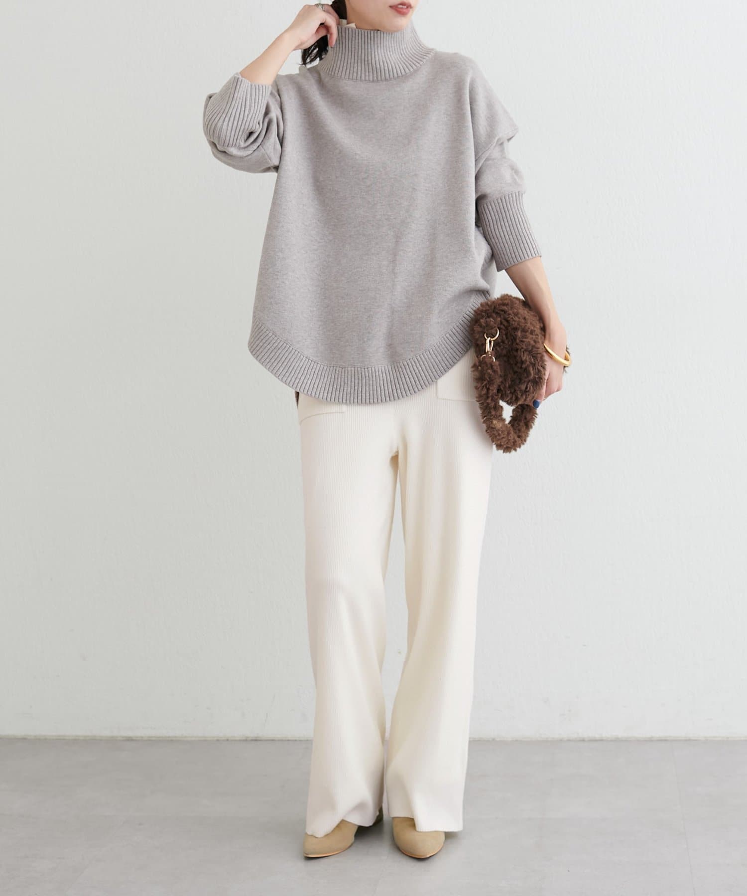 オーバーサイズシャツやボリュームのあるニット、スウェットなどと相性抜群。