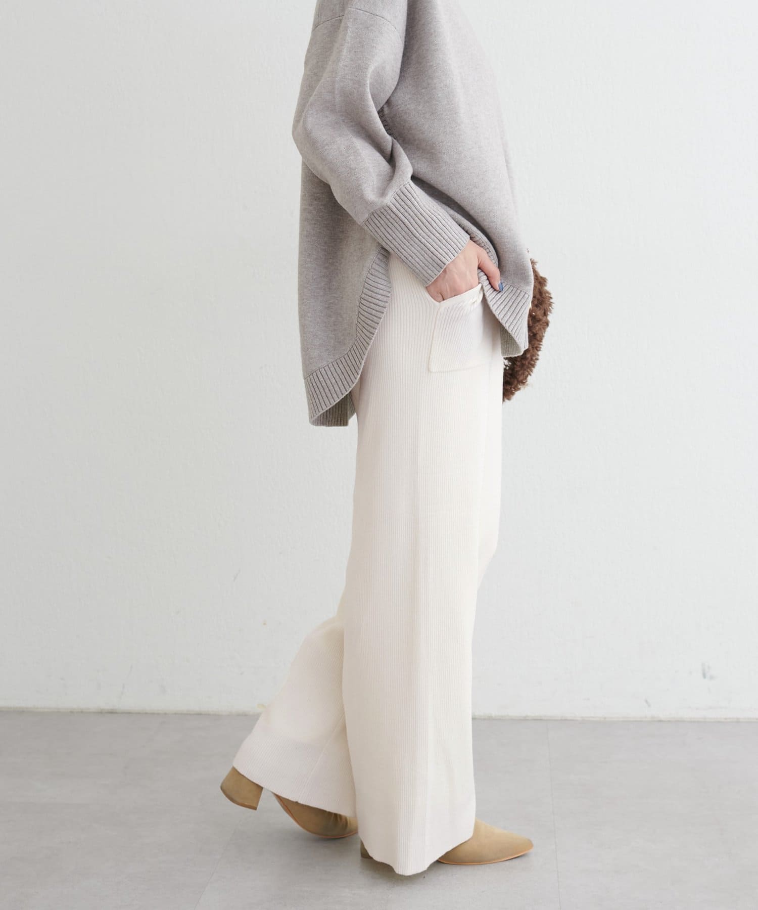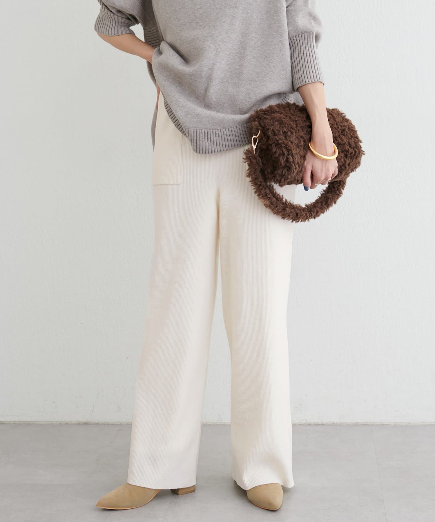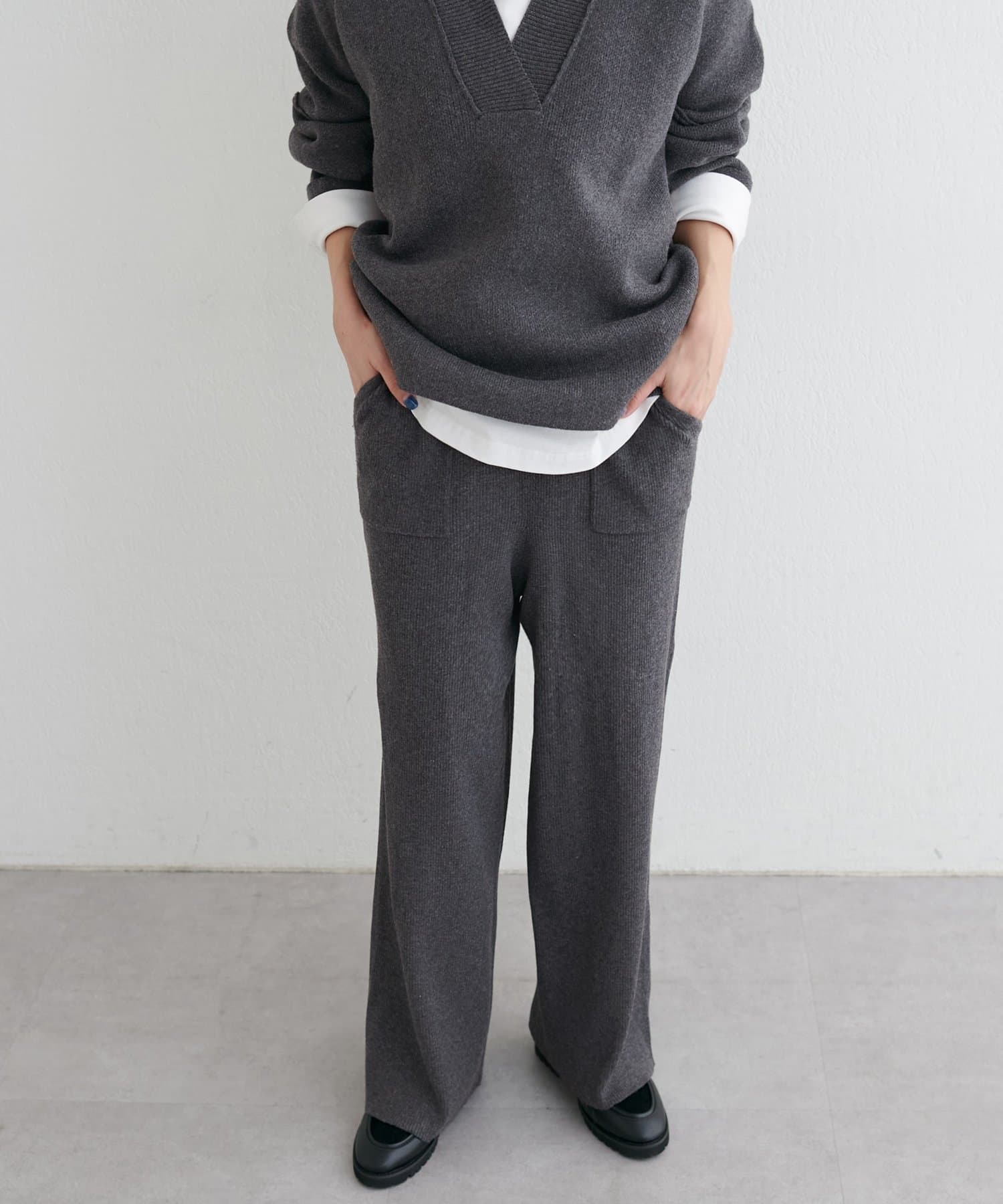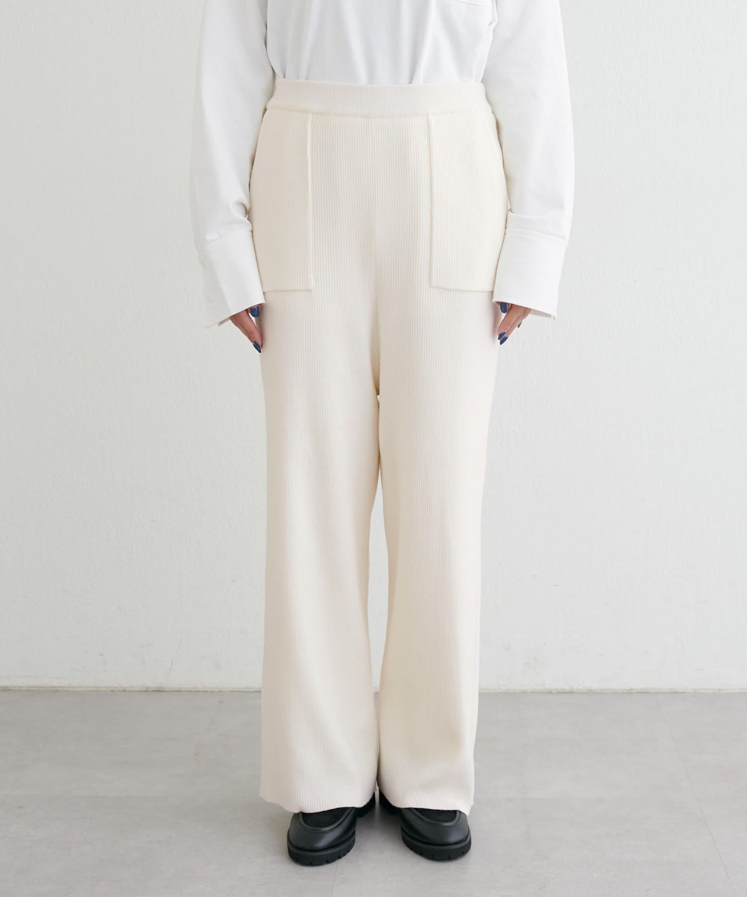ウール混リブニットパンツ