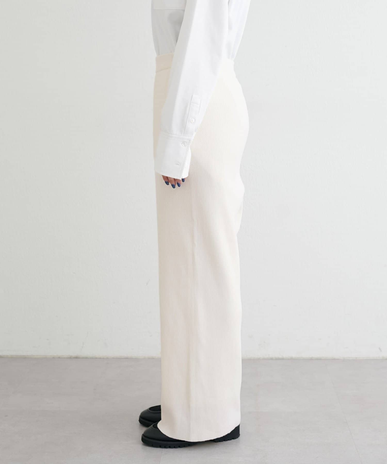 体のラインを拾いすぎることなく、脚を自然と美しく見せてくれるのがポイント。