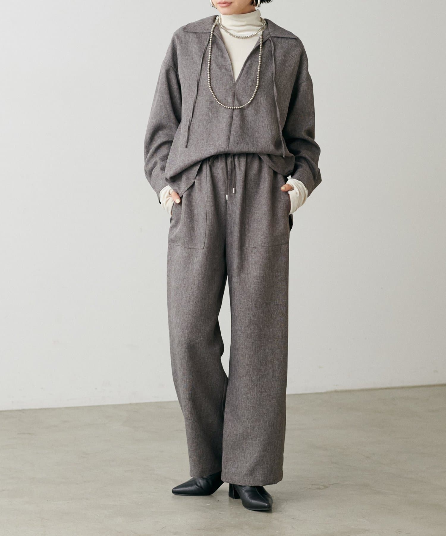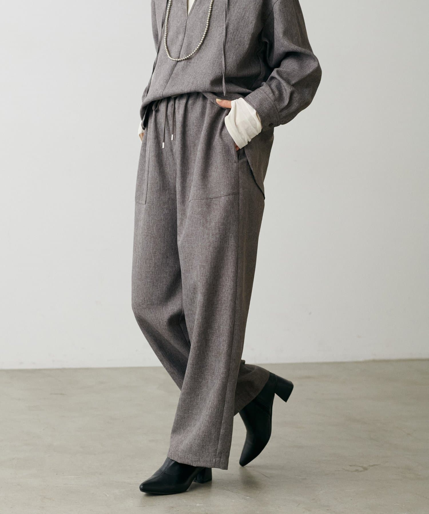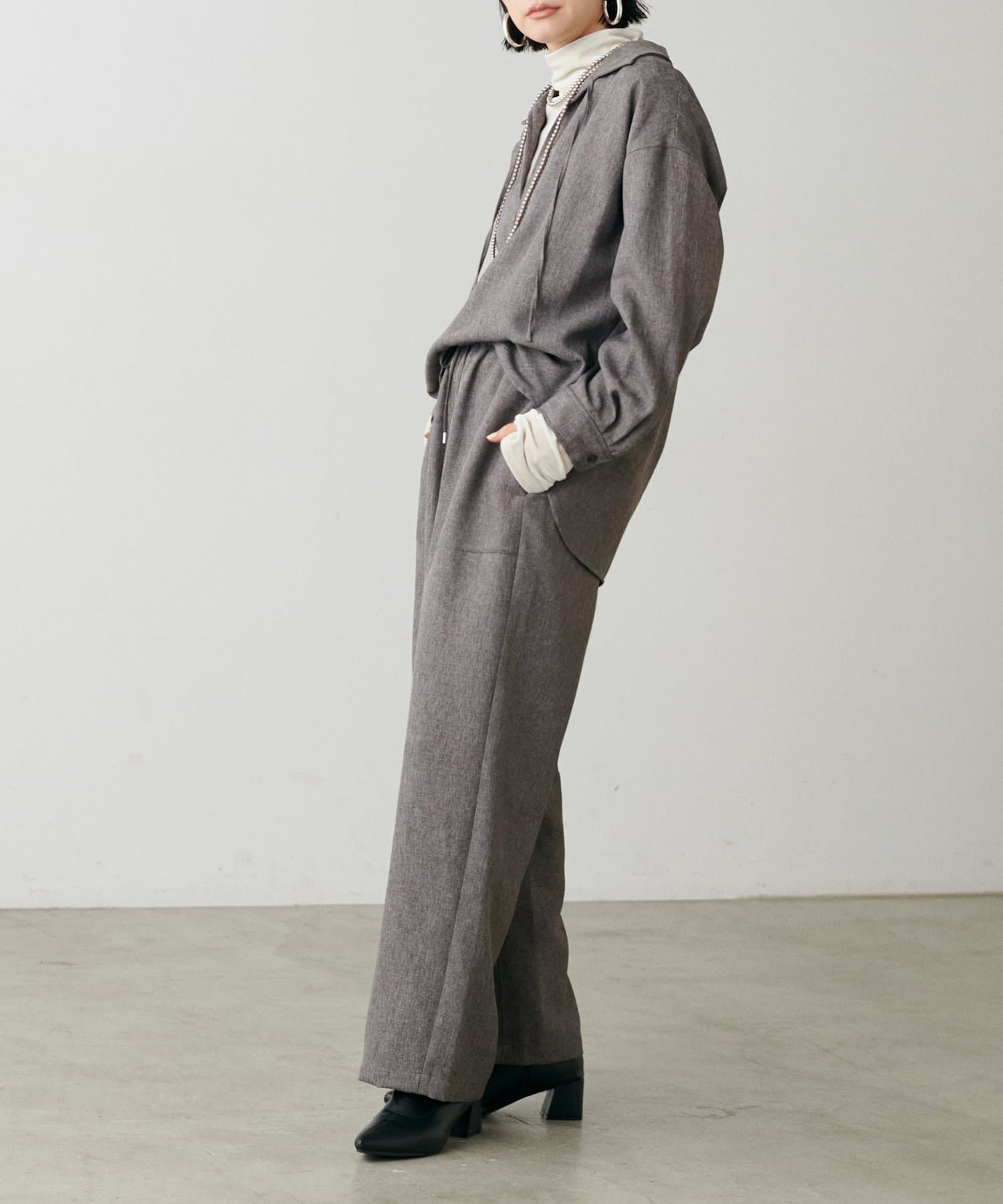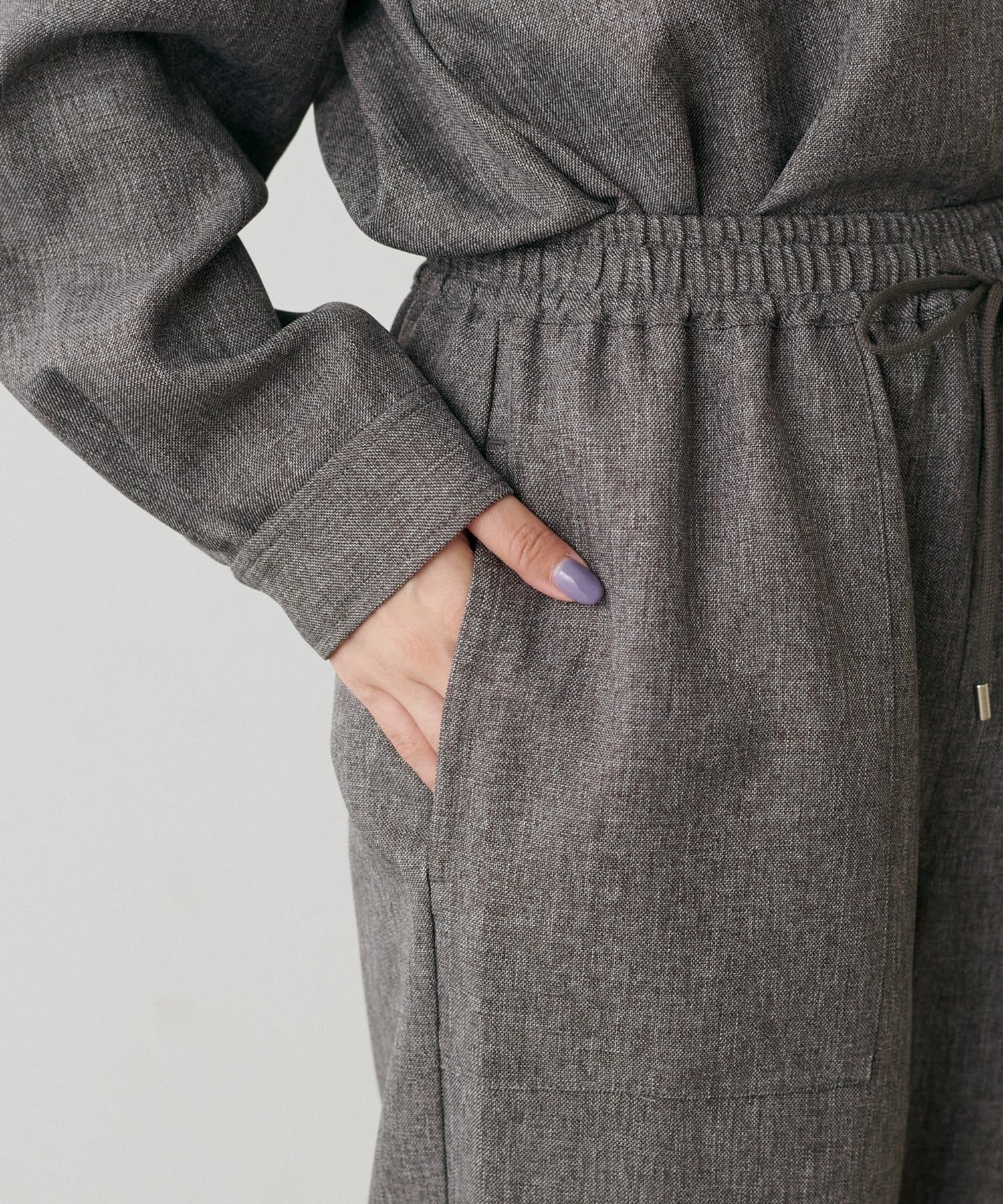 クラシカルな印象のツイード調素材を使用したイージーパンツ。