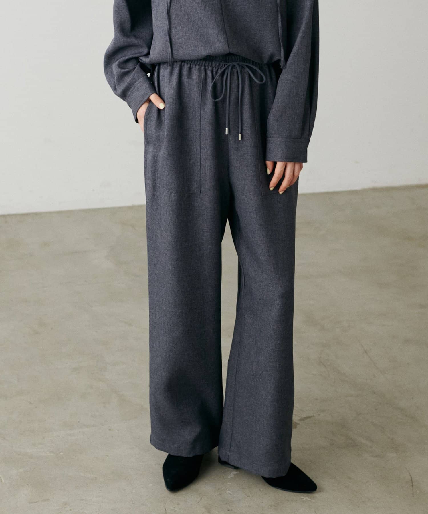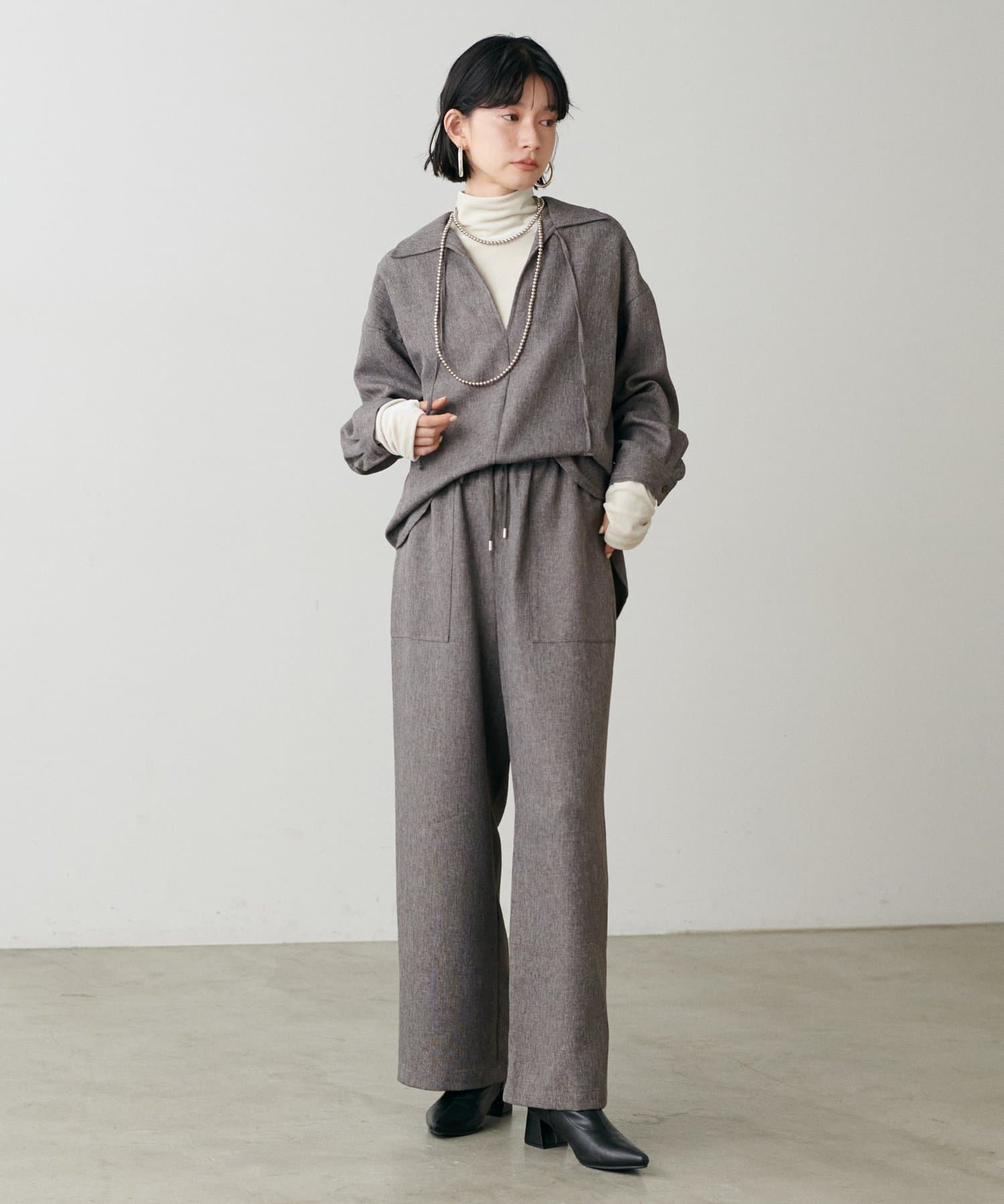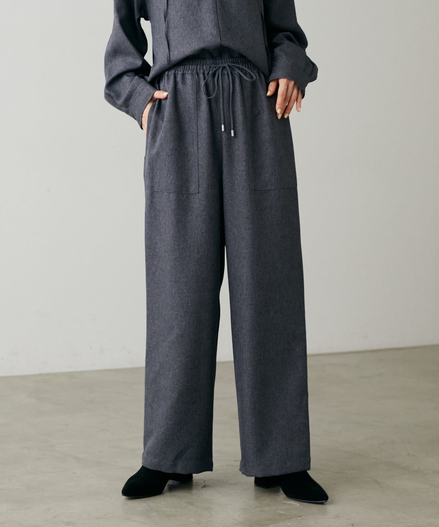クラシカルな印象のツイード調素材を使用したイージーパンツ。