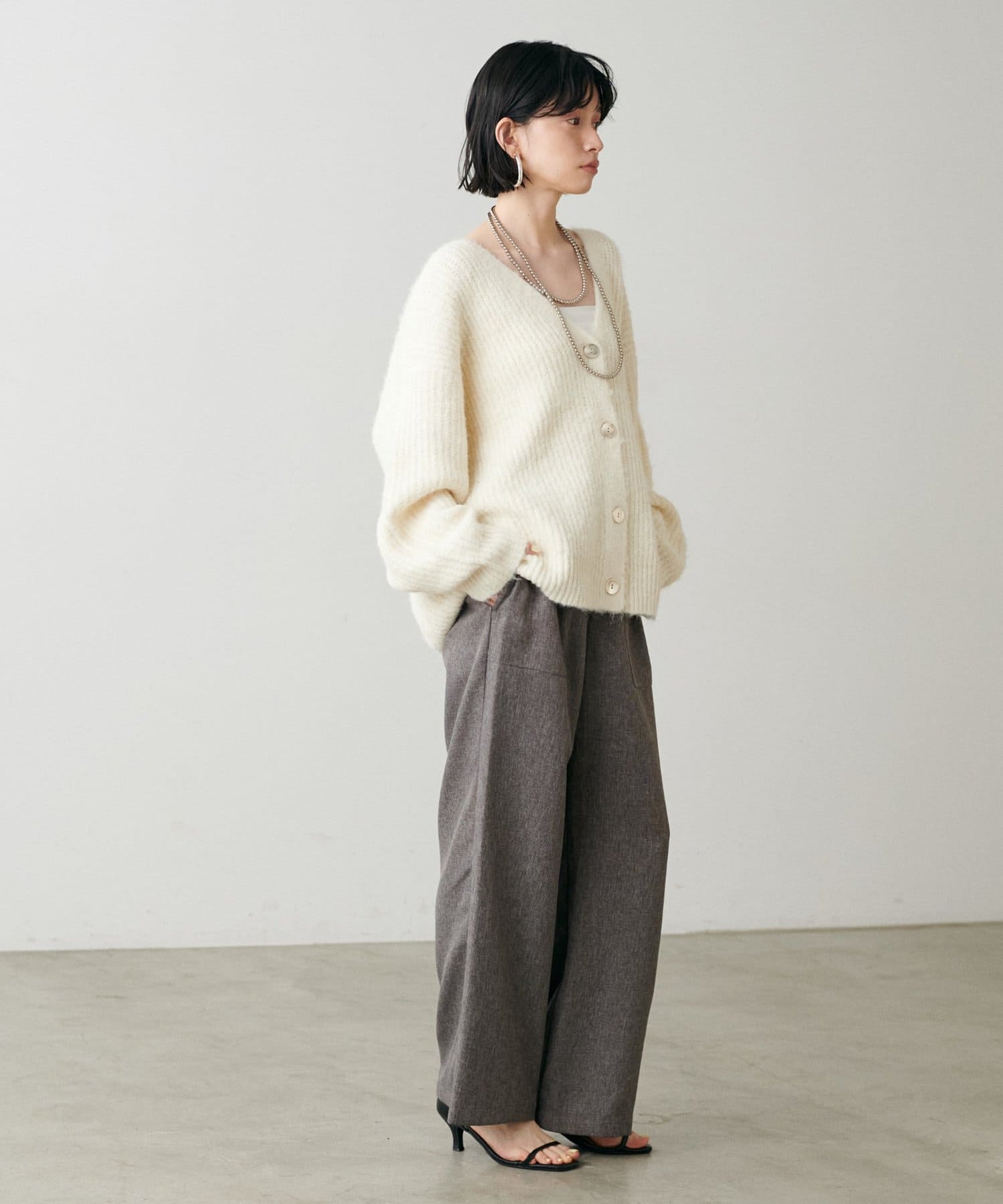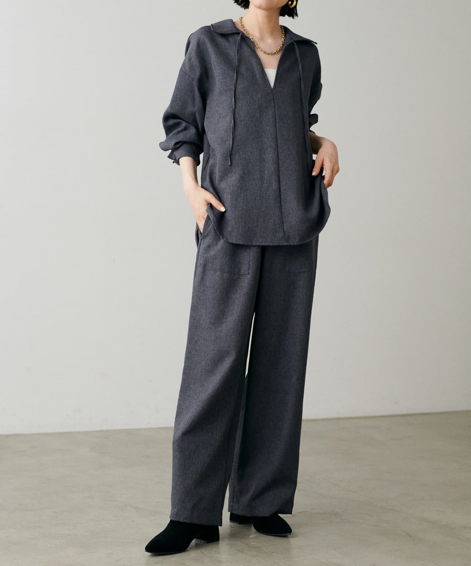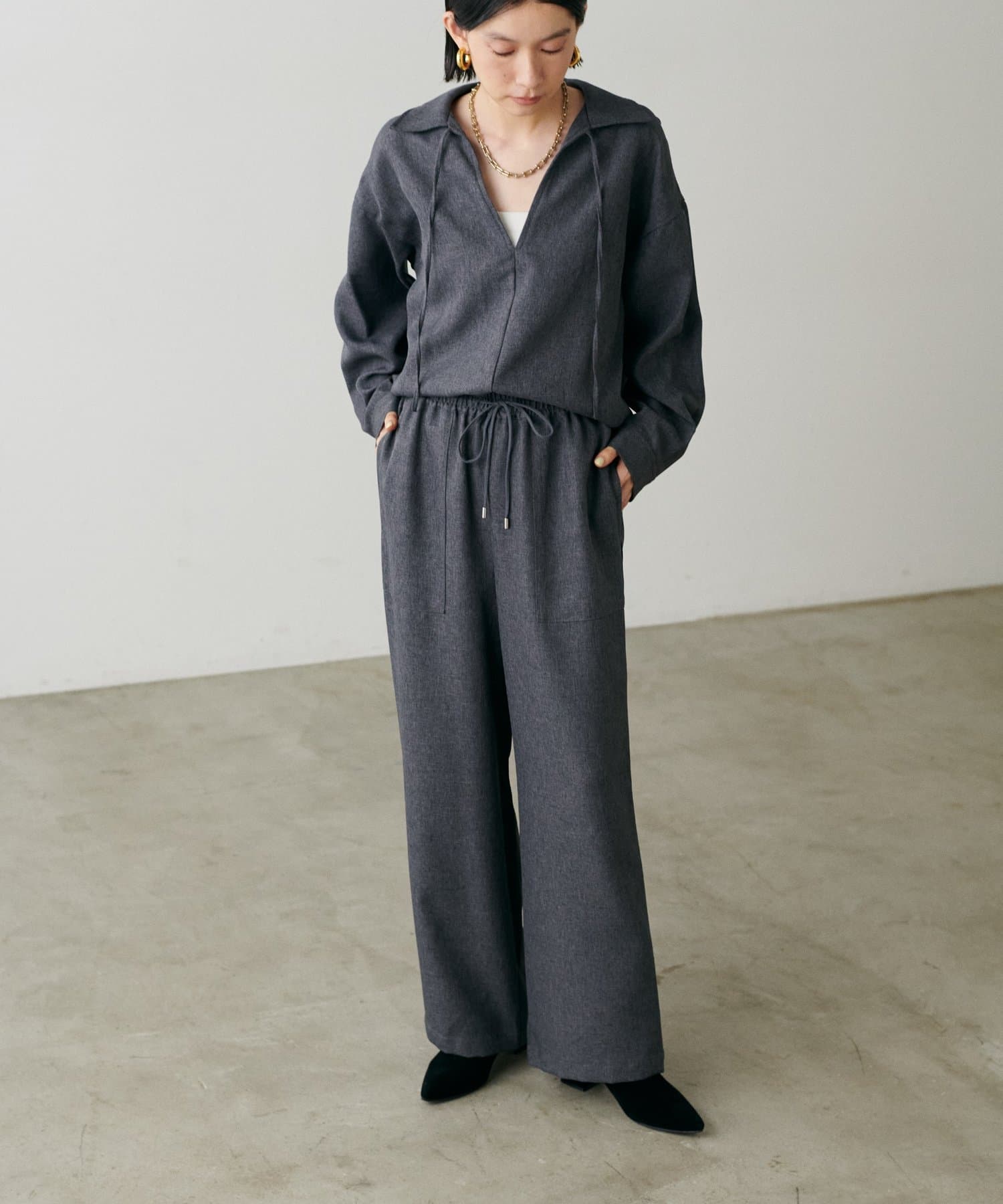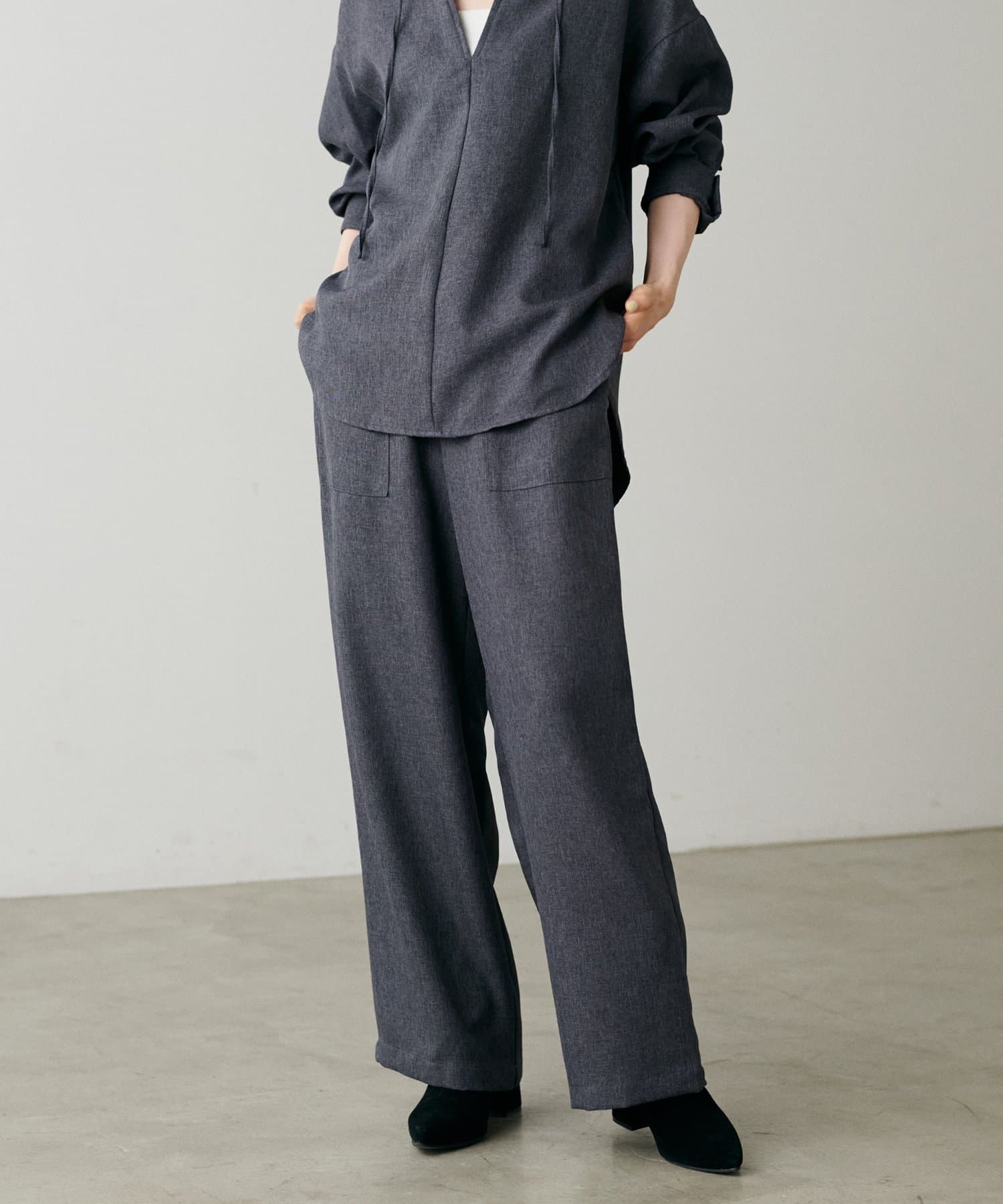 クラシカルな印象のツイード調素材を使用したイージーパンツ。