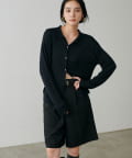 同素材のジャケットやアウターと合わせたセットアップ風コーデもおすすめ。