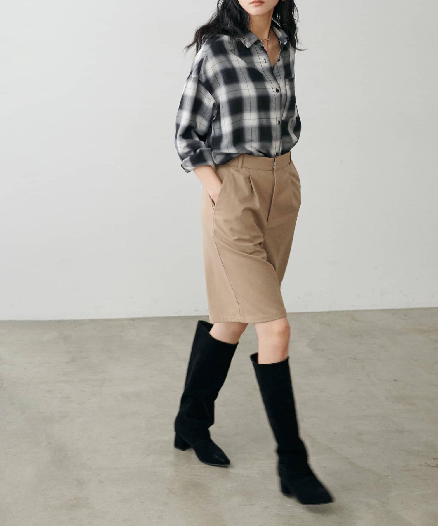 ロングブーツと合わせたトレンド感のあるスタイルはもちろん、