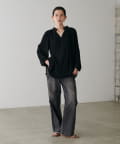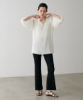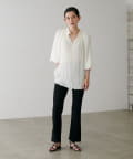 たっぷりとした袖のボリュームと、落ち感のある素材が描くドレープ感が印象的。